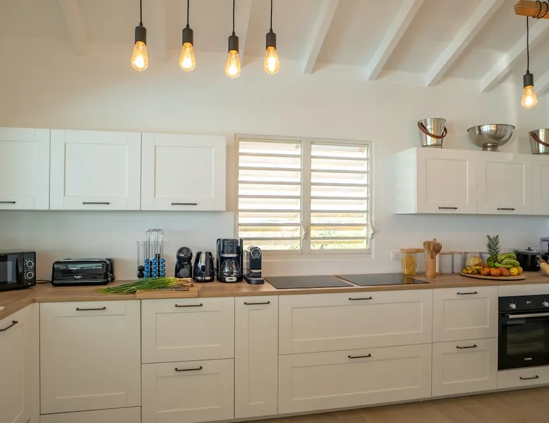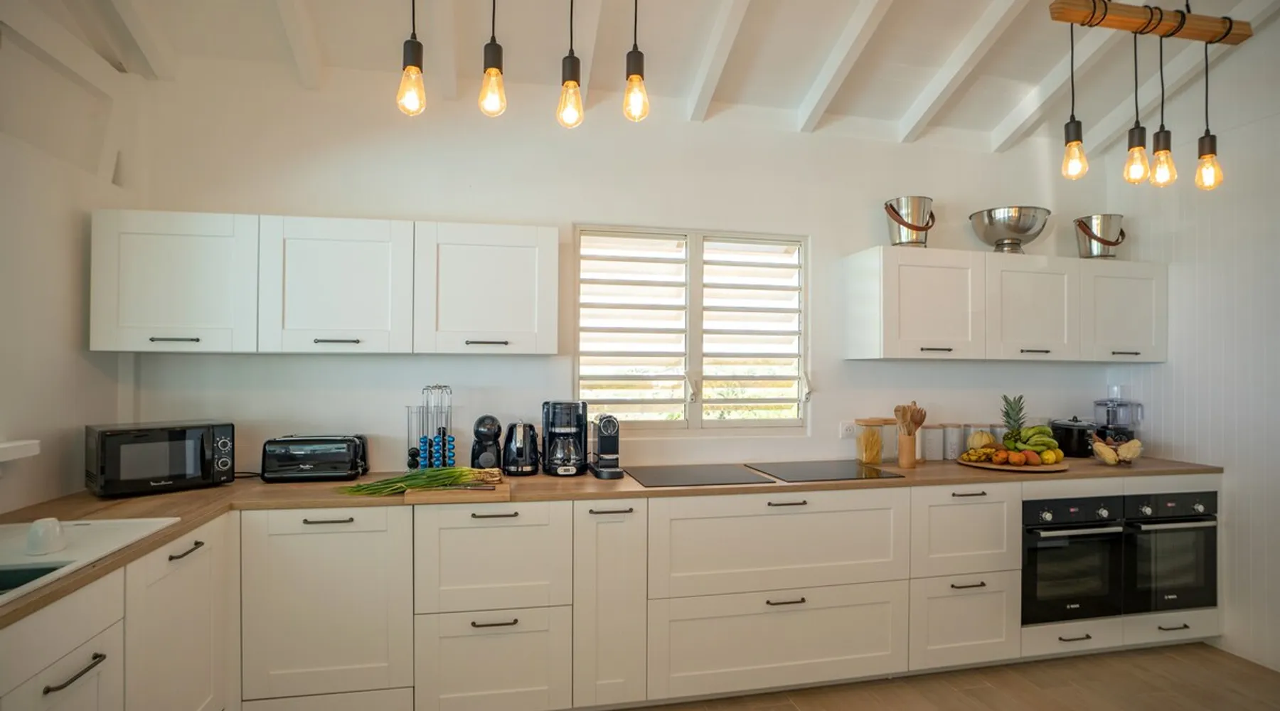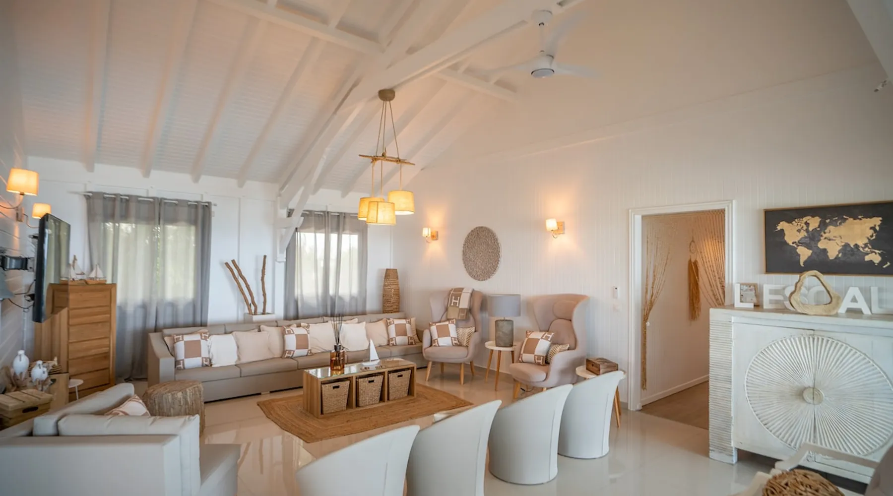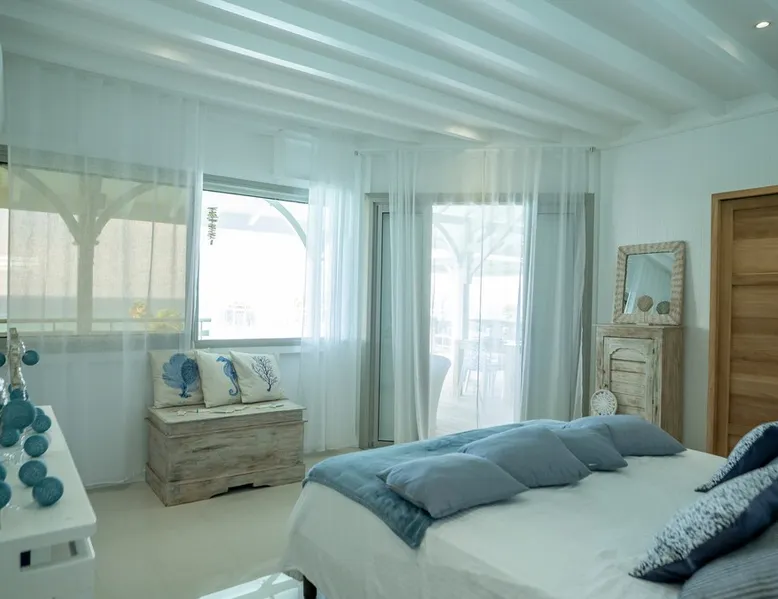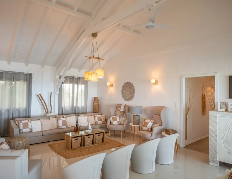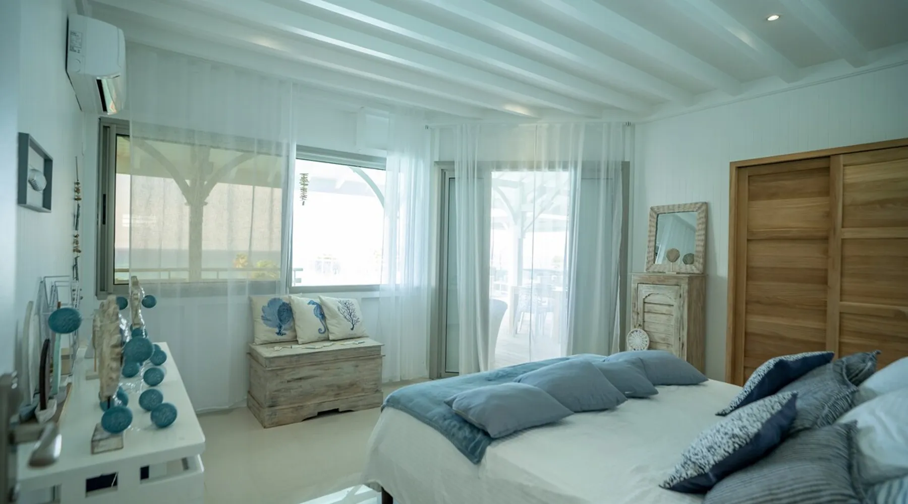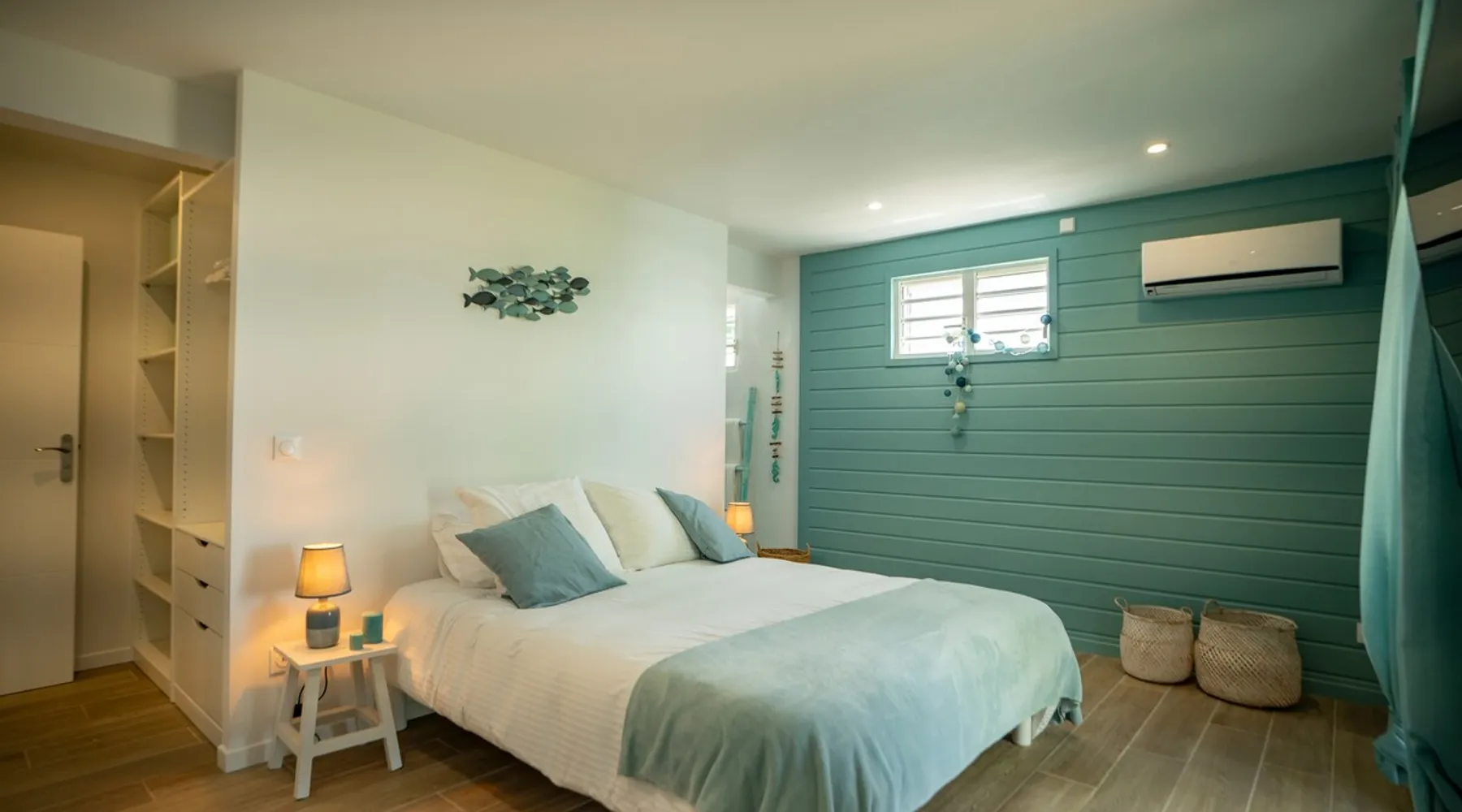 La villa compte 6 suites avec salle-de-bain ainsi qu’un dortoir enfants/adolescents avec 4 lits superposés pouvant accueillir 8 personnes. Ces lits superposés en 190x90 peuvent également accueillir des adultes. Au total l villa dispose de 20 COUCHAGES. Chaque suite peut également accueillir des lits bébé. Les terrasses ombragées mesures 300 m². La villa possède 3 piscines , un jacuzzi, panier de basket et terrain de petanque Parking 6 places MAIS SURTOUT UNE VUE MER A 180° La villa possède 3 piscines: une au 1er niveau(5mX9m), un bassin de débordement avec en contre-bas servant de piscines pour les petits et enfin une 3ème piscine au Rdc (4mx12m). La villa mesure 300m2 mais surtout comme nous sommes en Guadeloupe nous vivons a l'extérieur toute l année donc 300m2 également de terrasses ombragées et ventilées Une conciergerie gère le bien sur place. La remise des clefs ainsi qu'un tour complet de la maison sont effectués à l'arrivée des voyageurs. Une conciergerie sur place gère le logement. Vue sur mer et située à 500m d'une plage de sable Il est conseillé de louer un véhicule lors de votre arrivée sur l'île. Nous contacter pour de plus amples renseignements. La piscine est équipée d'une alarme qui permet de détecter les chutes dans l'eau. Il n'y a pas de volet de piscine. Merci d'avance.