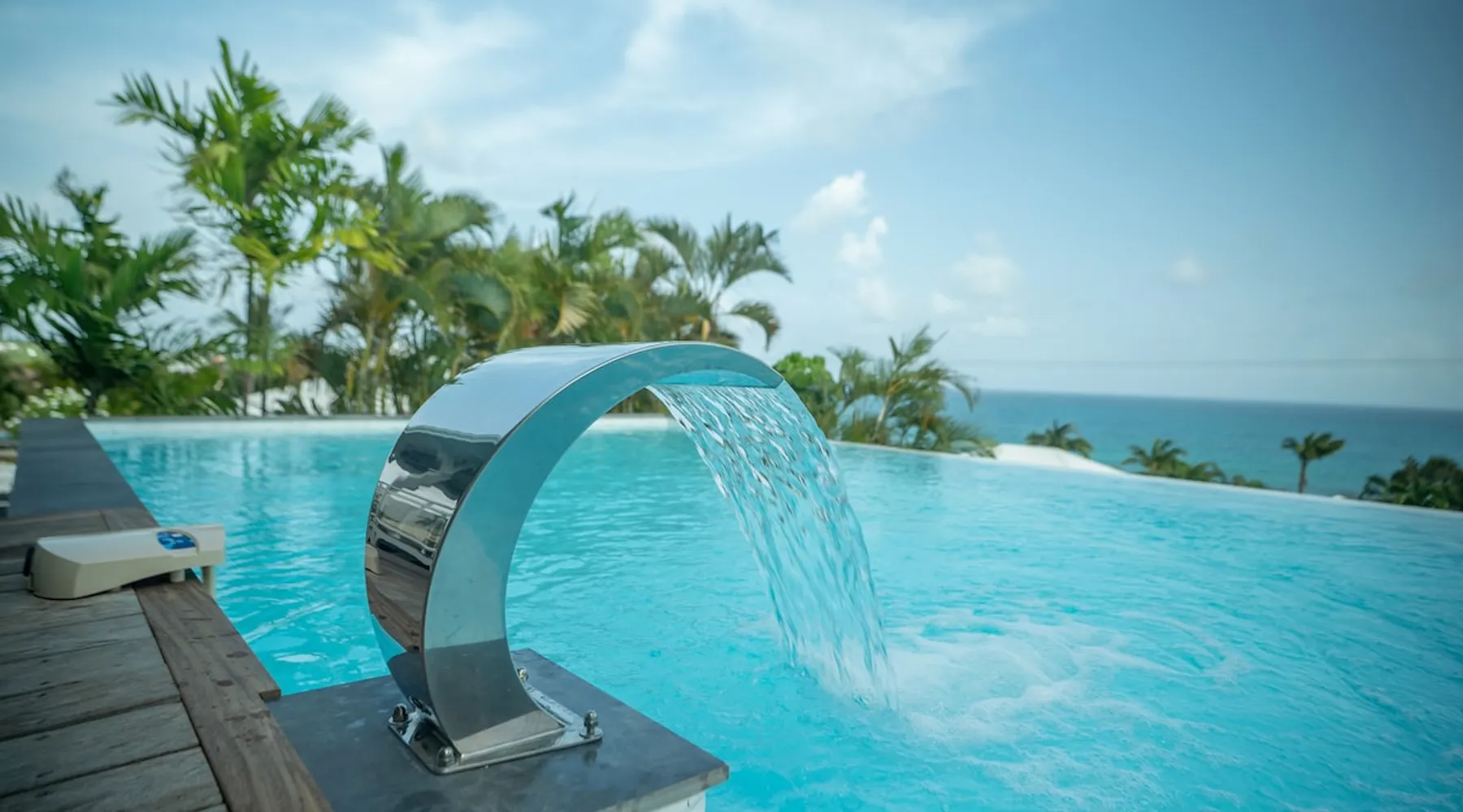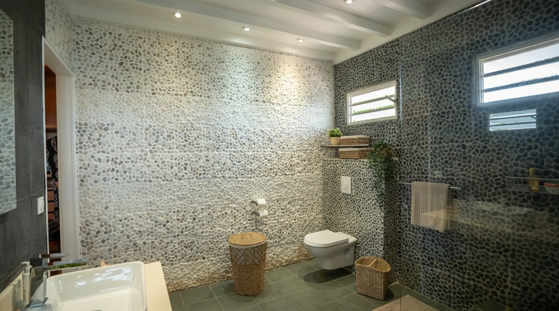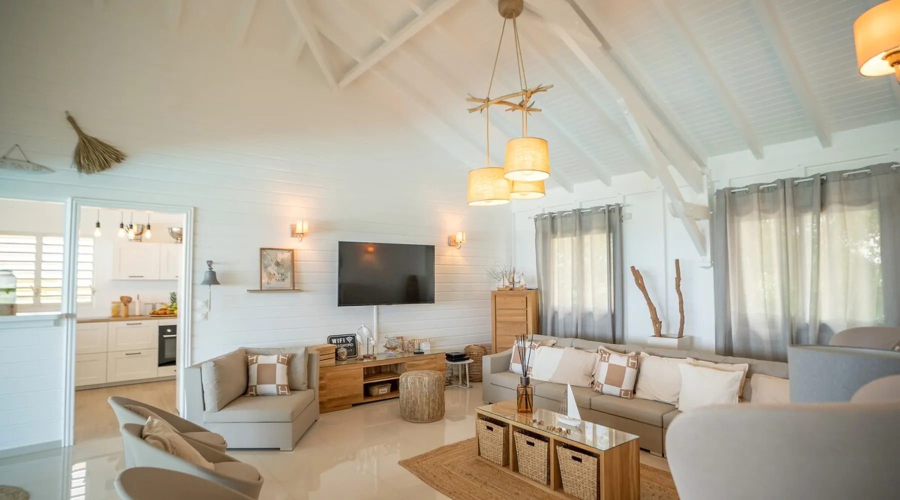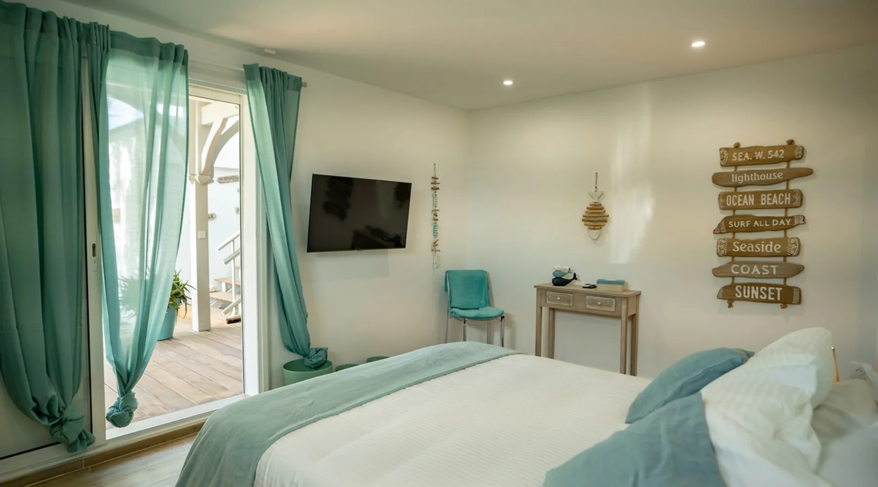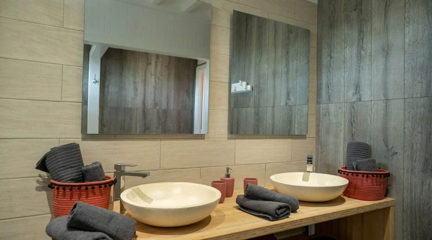 La villa compte 6 suites avec salle-de-bain ainsi qu’un dortoir enfants/adolescents avec 4 lits superposés pouvant accueillir 8 personnes. Ces lits superposés en 190x90 peuvent également accueillir des adultes. Au total l villa dispose de 20 COUCHAGES. Chaque suite peut également accueillir des lits bébé. Les terrasses ombragées mesures 300 m². La villa possède 3 piscines , un jacuzzi, panier de basket et terrain de petanque Parking 6 places MAIS SURTOUT UNE VUE MER A 180° La villa possède 3 piscines: une au 1er niveau(5mX9m), un bassin de débordement avec en contre-bas servant de piscines pour les petits et enfin une 3ème piscine au Rdc (4mx12m). La villa mesure 300m2 mais surtout comme nous sommes en Guadeloupe nous vivons a l'extérieur toute l année donc 300m2 également de terrasses ombragées et ventilées Une conciergerie gère le bien sur place. La remise des clefs ainsi qu'un tour complet de la maison sont effectués à l'arrivée des voyageurs. Une conciergerie sur place gère le logement. Vue sur mer et située à 500m d'une plage de sable Il est conseillé de louer un véhicule lors de votre arrivée sur l'île. Nous contacter pour de plus amples renseignements. La piscine est équipée d'une alarme qui permet de détecter les chutes dans l'eau. Il n'y a pas de volet de piscine. Merci d'avance.
