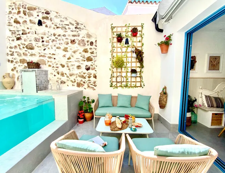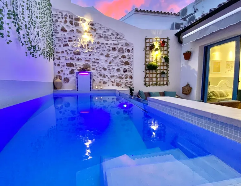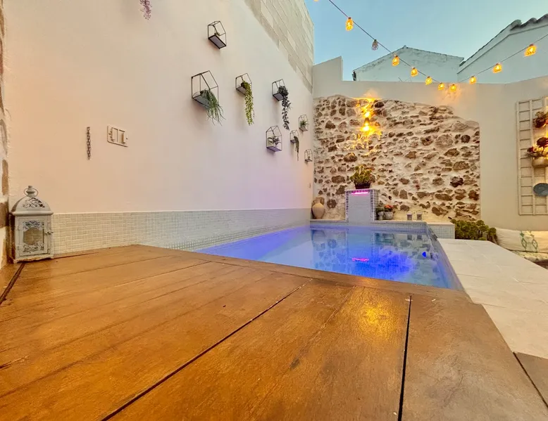 Fabulous brand new townhouse with a private pool located in one of the old streets of El Gastor, Balcony of the White Villages of the Sierra de Cádiz. A few meters from the Plaza de la Constitución and the village's typical streets, where you can take pleasant walks without having to take the car, to get to know the village, its establishments and the many natural trails in the area. The space The house has been recently renovated in its own style, preserving the architecture and materials of when it was built. You will be surprised by what its typical Pueblo Blanco house façade hides, highlighting a modern pool in the patio with an outdoor shower, a wonderful set of lights, a combination of new materials and the respectful restoration of the stone walls, the original "cane" roof and antique furniture. On the ground floor is the fully equipped kitchen, full bathroom and living-dining room with fireplace perfectly connected to the patio, through a large window to comfortably enjoy the pool and barbecue. Upstairs are two bedrooms with a balcony, full bathroom, and terrace. The house has hot and cold air conditioning, a towel warmer, Smart TV, free Wi-Fi, a hairdryer, bath towels, a swimming pool, and bed linens. Ideal for couples and families who want to alternate comfort and adventure with charm and uniqueness on their vacation. The area has parking and good vehicle access. Registration Details VTAR/CA/03337