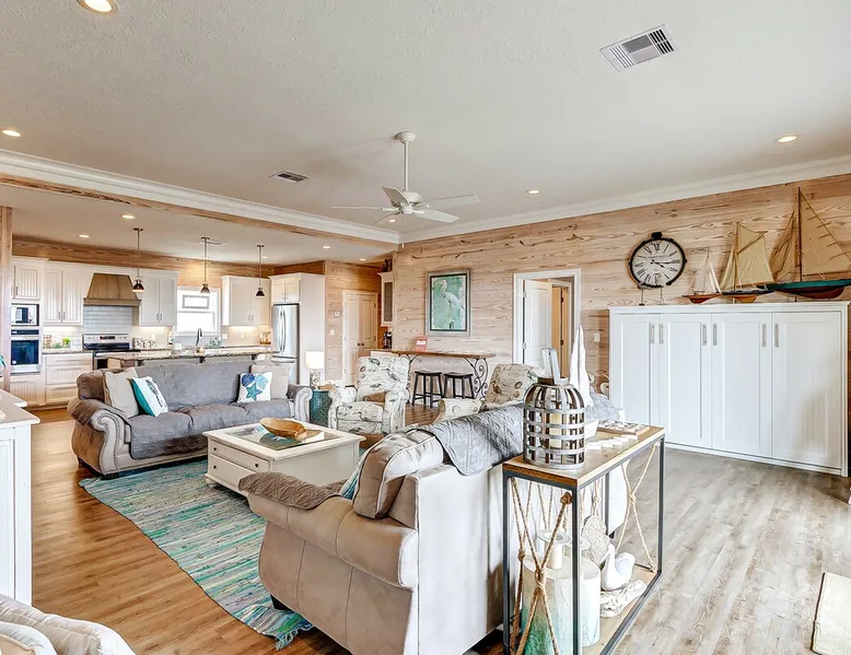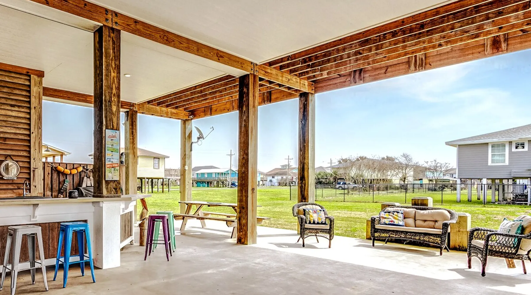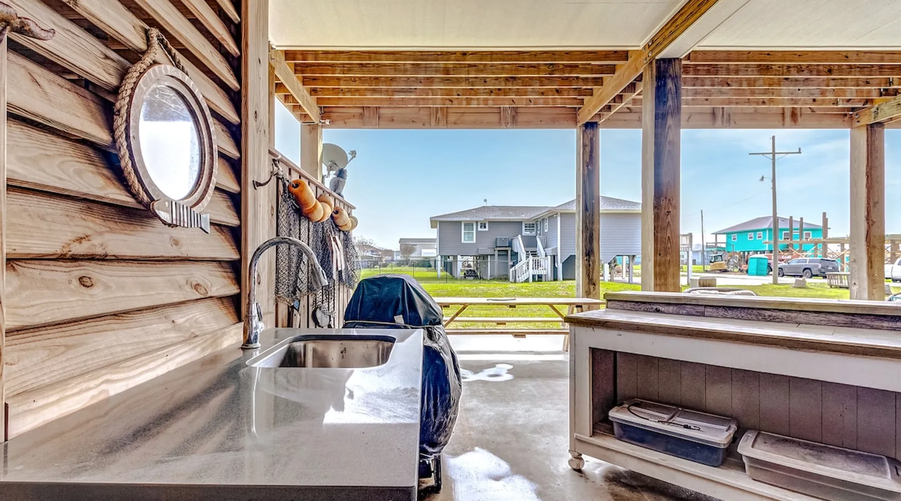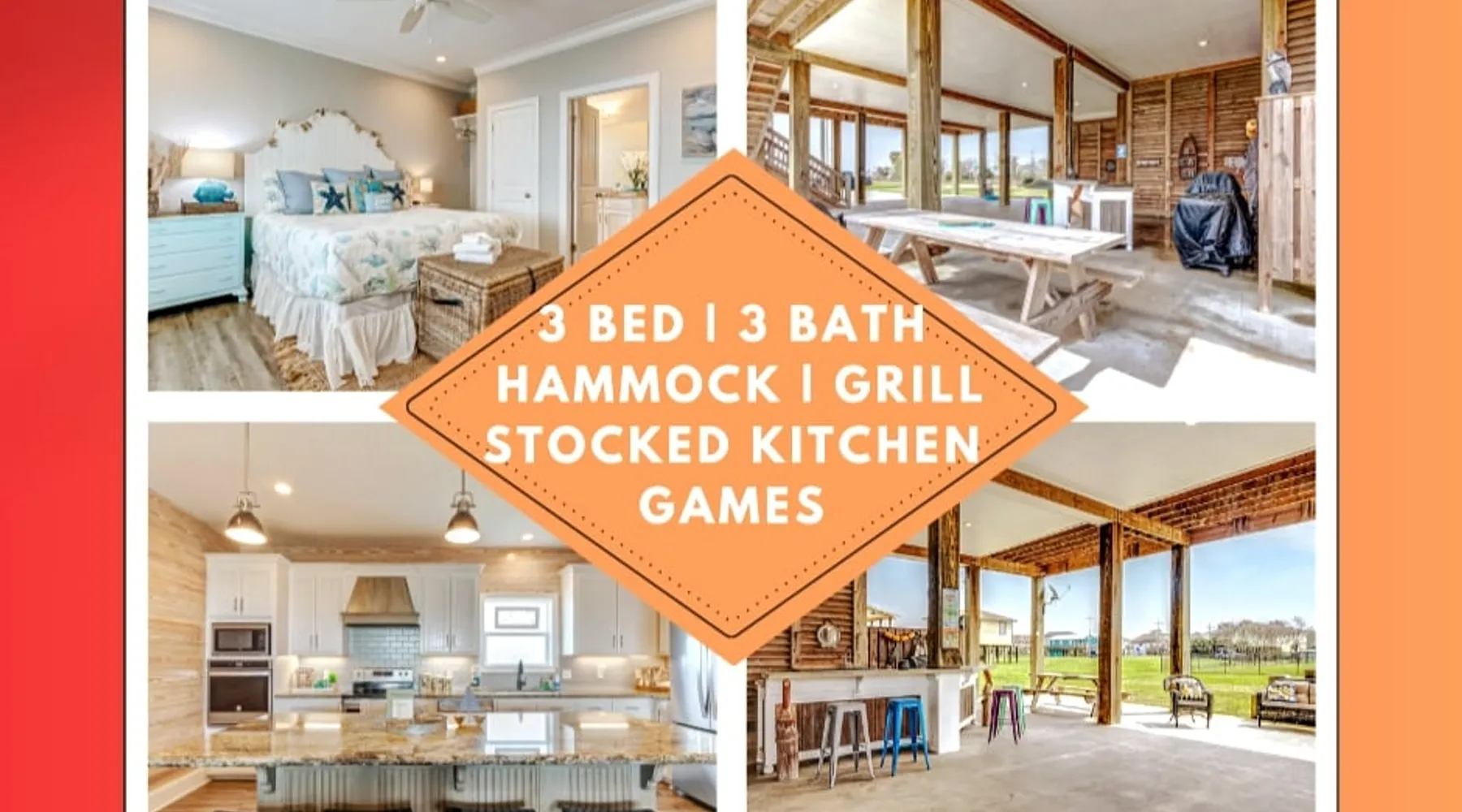 Welcome to Gone Coastal, where you can experience the ultimate charming seaside escape! The house features an open-plan living with large windows that allow plenty of natural light. The fully equipped kitchen is perfect for whipping up delicious meals, while the comfortable bedrooms provide a peaceful retreat after a day of sun, sand, and surf. Outside, you'll find a spacious deck with comfortable outdoor furniture. The deck also offers a great space for outdoor dining and entertainment. The space This inviting Crystal Beach getaway is accessible to the beach and can be accessed quicker via renting a golf cart or drive over. This adorable retreat is ready for you to make memories! The upper decks are spacious and have seating for the family to gather around, you can hear the ocean waves crashing away. During the evening, it's the perfect location to watch the candy cotton sunset. The downstairs entertainment area is designed to encourage great food with bar area, sink, and propane grill for your family chef to curate amazing food and drinks. There's also ample seating area downstairs with games for the whole family to enjoy - horseshoe, box full of kid beach toys, and a kiddie pool for the little ones to stay cool. Rinse off after a full day at the beach with the outdoor shower. Walk inside to your open-concept luxury kitchen, dining, and living spaces. The living room has several couches and a large smart TV to catch up on all your movies and shows. The kitchen is fully-equipped with everything you could possibly need to host your family or friends. The kitchen and island area seat 8 people comfortably. Our open kitchen boasts all new dishes, glassware, coffee cups, flatware, and gourmet pots & pans. Also included are cooking and baking supplies, utensils, a full set of knives, and food storage containers. The kitchen also includes a large sink, full size refrigerator, stainless steel stove, microwave, and a new dishwasher. Be your own barista in our charming coffee bar where you can create your perfect cup of coffee. Coffee machine will inspire you to compose a delightful cup of coffee or tea! Initial supply of dish washing pods, towels, washcloth, dish soap, a roll of paper towel, and two rolls of toilet paper per bathroom are available, if you need more during your stay please grab more from the Big Store. The well placed laundry room includes a full washer and dryer and detergent. Shampoo, conditioner, body wash are provided located in each full size bathroom in the home. Hand soap, a hairdryer, and ample collection of towels can be found in each full size bathroom in the house. There are 3 full size bathrooms in the main living areas. Each of the 6 beds (king size, king size, twin size, twin/full bunk bed, and full murphy bed) feature quality, comfortable sheets, pillows, and comforters. Each closet contains hangers and storage space. All smart TVs in the home are equipped for your streaming pleasure - bring your own password to enjoy all the streaming applications. WiFi is provided and we provide the best service available to us. However, with paradise, comes limitations on modern conveniences such as internet service. At times, you may find the service to be slower than what you are used to. We know this is important and will continue to provide the best service available to us; however, if you need internet service please bring your mobile hot spot. Guest access Guest will be able to access everything except the owners' closet which will be locked during your stay. Other things to note Absolutely no smoking or vaping No events or parties - quiet hours are from 10pm to 6am Please keep windows closed - the humidity ruins all of our furniture :( No eating or drinking in the bedrooms Please use the outside shower to wash off sand before coming inside Absolutely no BBQ pits on the deck