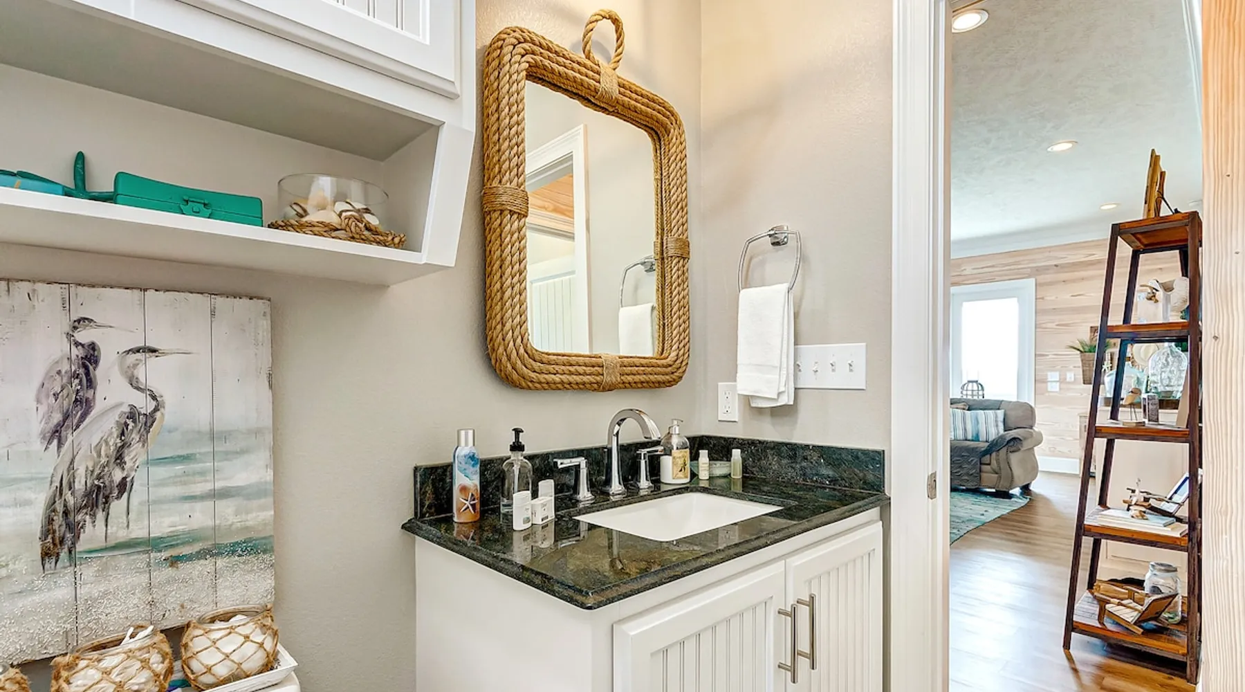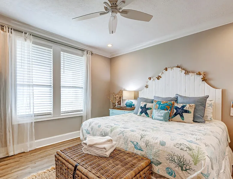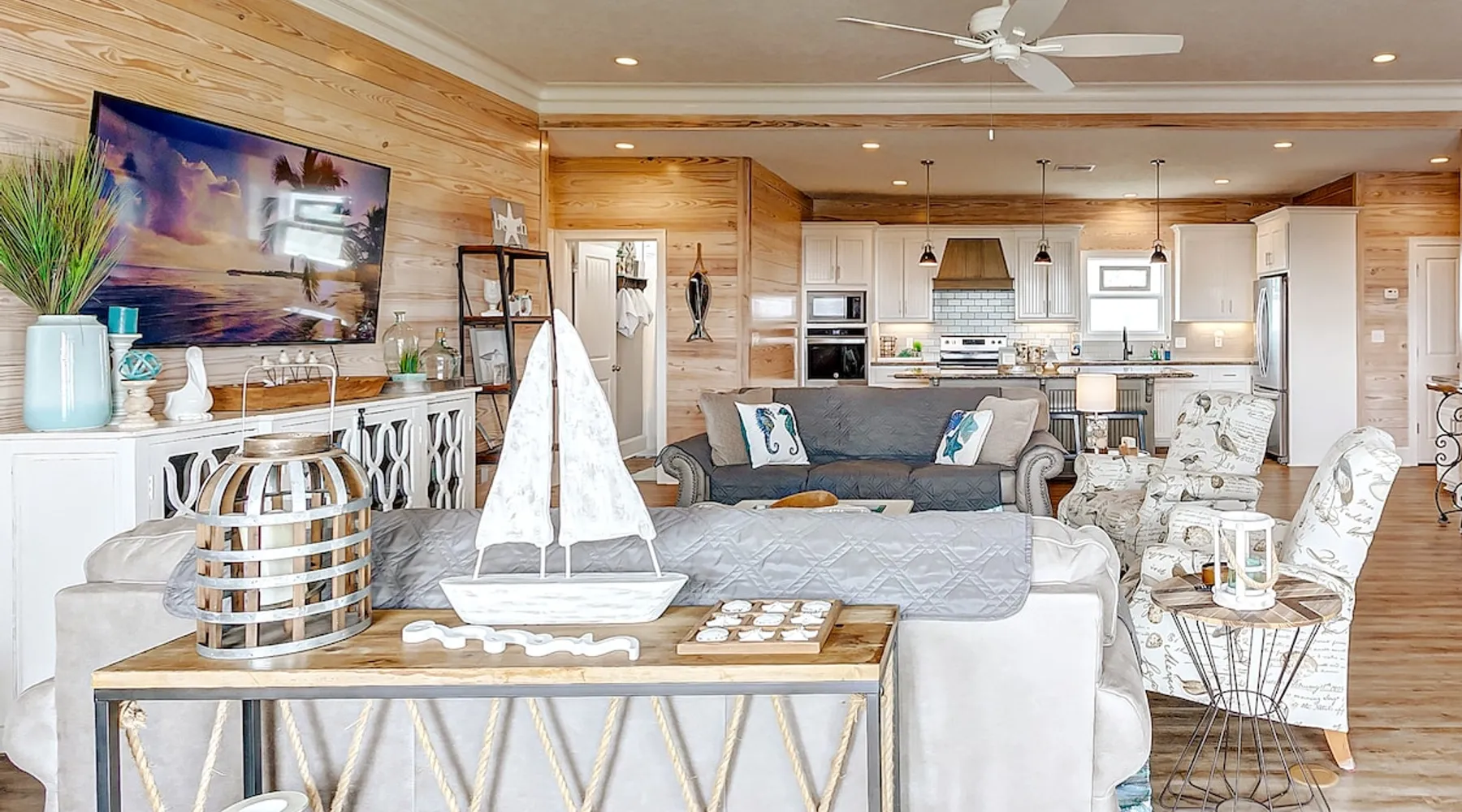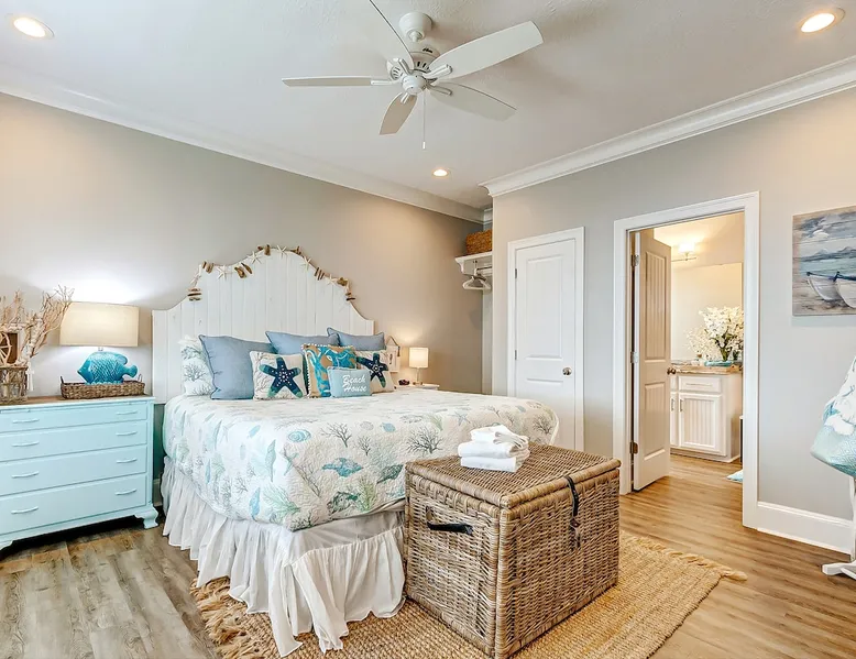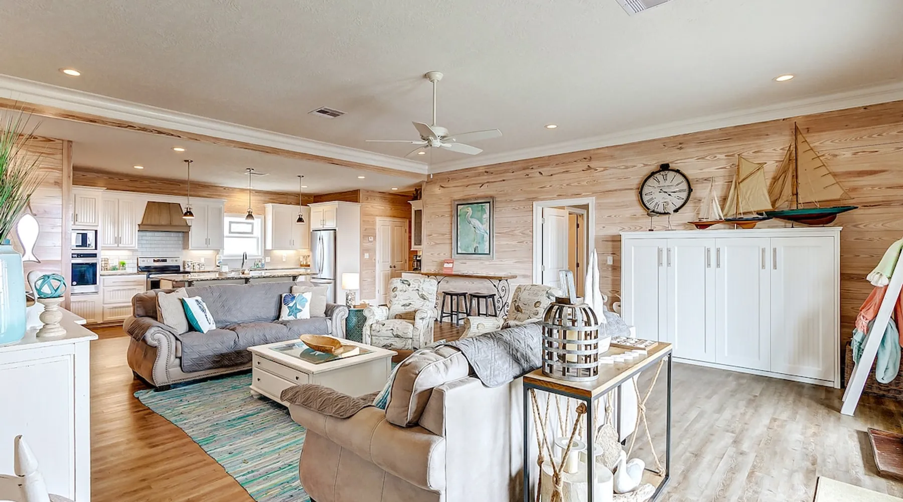 Welcome to Gone Coastal, where you can experience the ultimate charming seaside escape! The house features an open-plan living with large windows that allow plenty of natural light. The fully equipped kitchen is perfect for whipping up delicious meals, while the comfortable bedrooms provide a peaceful retreat after a day of sun, sand, and surf. Outside, you'll find a spacious deck with comfortable outdoor furniture. The deck also offers a great space for outdoor dining and entertainment. The space This inviting Crystal Beach getaway is accessible to the beach and can be accessed quicker via renting a golf cart or drive over. This adorable retreat is ready for you to make memories! The upper decks are spacious and have seating for the family to gather around, you can hear the ocean waves crashing away. During the evening, it's the perfect location to watch the candy cotton sunset. The downstairs entertainment area is designed to encourage great food with bar area, sink, and propane grill for your family chef to curate amazing food and drinks. There's also ample seating area downstairs with games for the whole family to enjoy - horseshoe, box full of kid beach toys, and a kiddie pool for the little ones to stay cool. Rinse off after a full day at the beach with the outdoor shower. Walk inside to your open-concept luxury kitchen, dining, and living spaces. The living room has several couches and a large smart TV to catch up on all your movies and shows. The kitchen is fully-equipped with everything you could possibly need to host your family or friends. The kitchen and island area seat 8 people comfortably. Our open kitchen boasts all new dishes, glassware, coffee cups, flatware, and gourmet pots & pans. Also included are cooking and baking supplies, utensils, a full set of knives, and food storage containers. The kitchen also includes a large sink, full size refrigerator, stainless steel stove, microwave, and a new dishwasher. Be your own barista in our charming coffee bar where you can create your perfect cup of coffee. Coffee machine will inspire you to compose a delightful cup of coffee or tea! Initial supply of dish washing pods, towels, washcloth, dish soap, a roll of paper towel, and two rolls of toilet paper per bathroom are available, if you need more during your stay please grab more from the Big Store. The well placed laundry room includes a full washer and dryer and detergent. Shampoo, conditioner, body wash are provided located in each full size bathroom in the home. Hand soap, a hairdryer, and ample collection of towels can be found in each full size bathroom in the house. There are 3 full size bathrooms in the main living areas. Each of the 6 beds (king size, king size, twin size, twin/full bunk bed, and full murphy bed) feature quality, comfortable sheets, pillows, and comforters. Each closet contains hangers and storage space. All smart TVs in the home are equipped for your streaming pleasure - bring your own password to enjoy all the streaming applications. WiFi is provided and we provide the best service available to us. However, with paradise, comes limitations on modern conveniences such as internet service. At times, you may find the service to be slower than what you are used to. We know this is important and will continue to provide the best service available to us; however, if you need internet service please bring your mobile hot spot. Guest access Guest will be able to access everything except the owners' closet which will be locked during your stay. Other things to note Absolutely no smoking or vaping No events or parties - quiet hours are from 10pm to 6am Please keep windows closed - the humidity ruins all of our furniture :( No eating or drinking in the bedrooms Please use the outside shower to wash off sand before coming inside Absolutely no BBQ pits on the deck