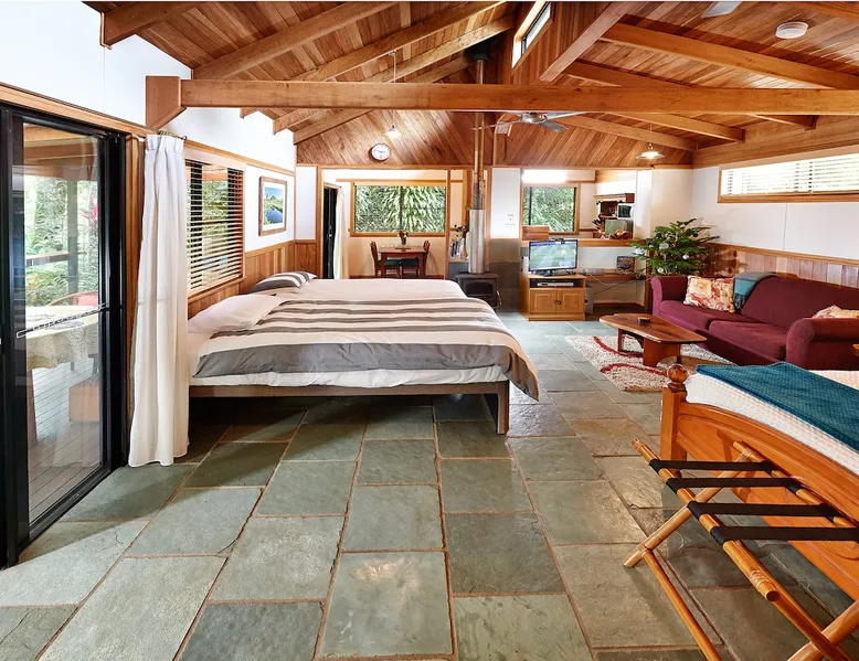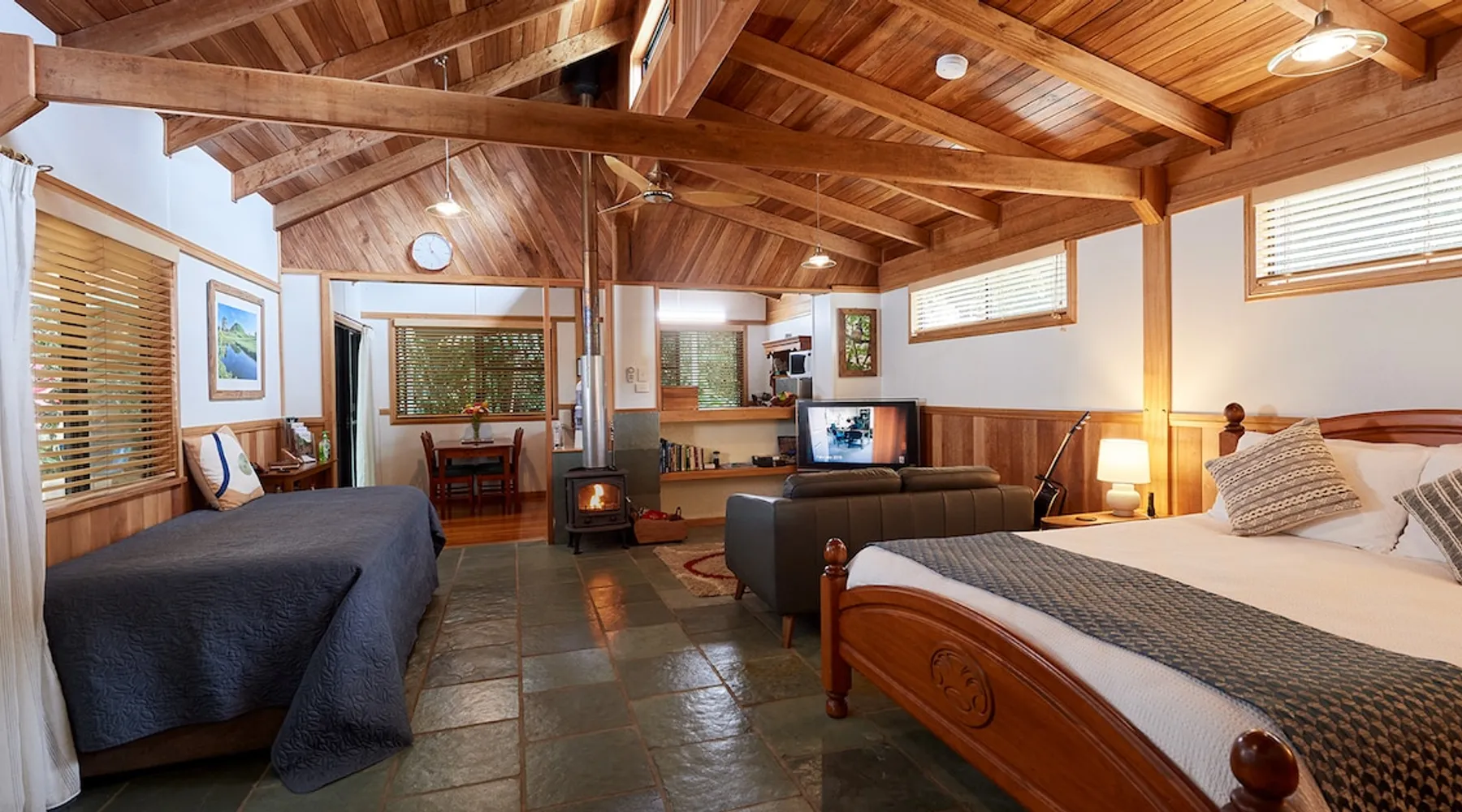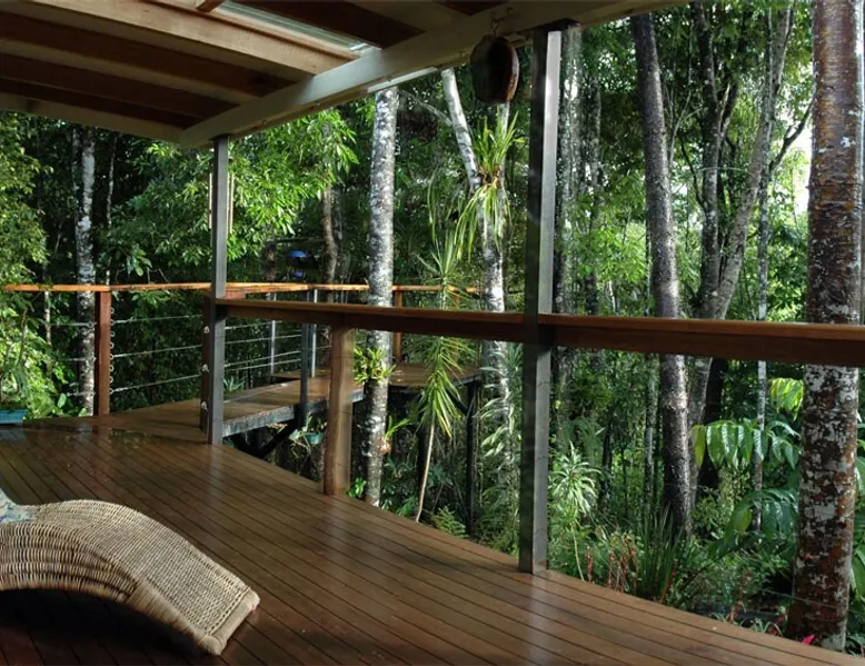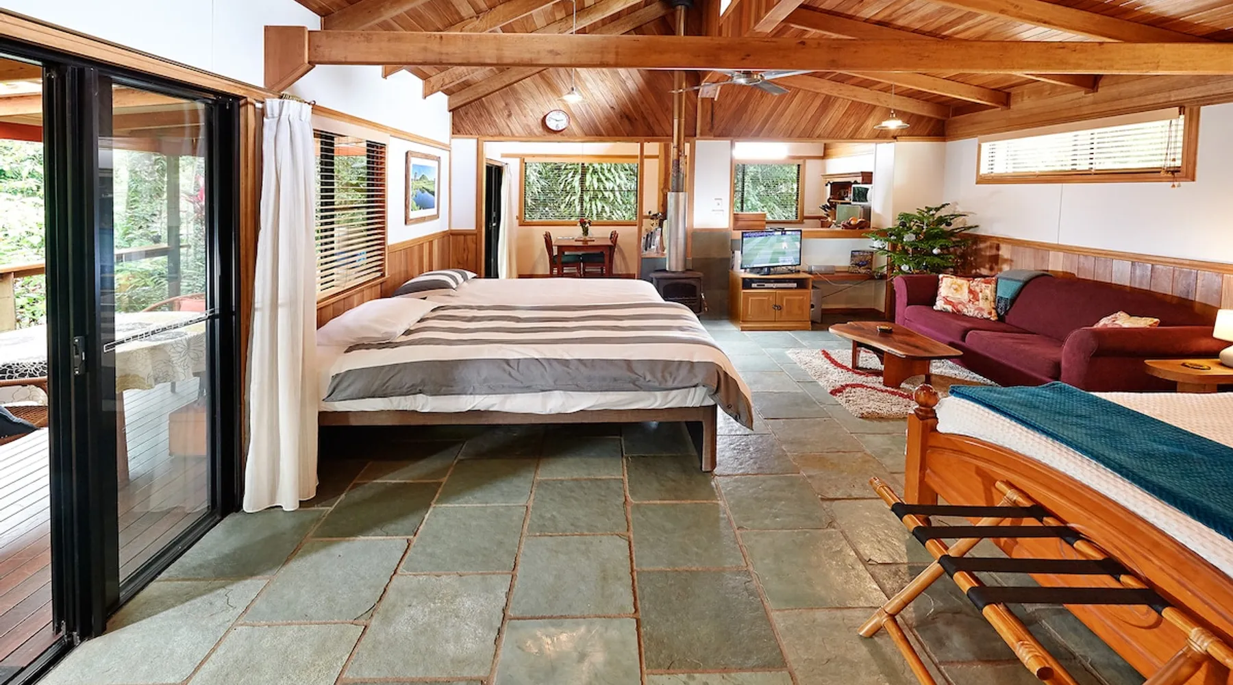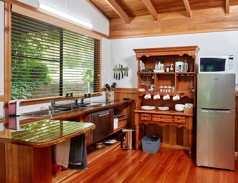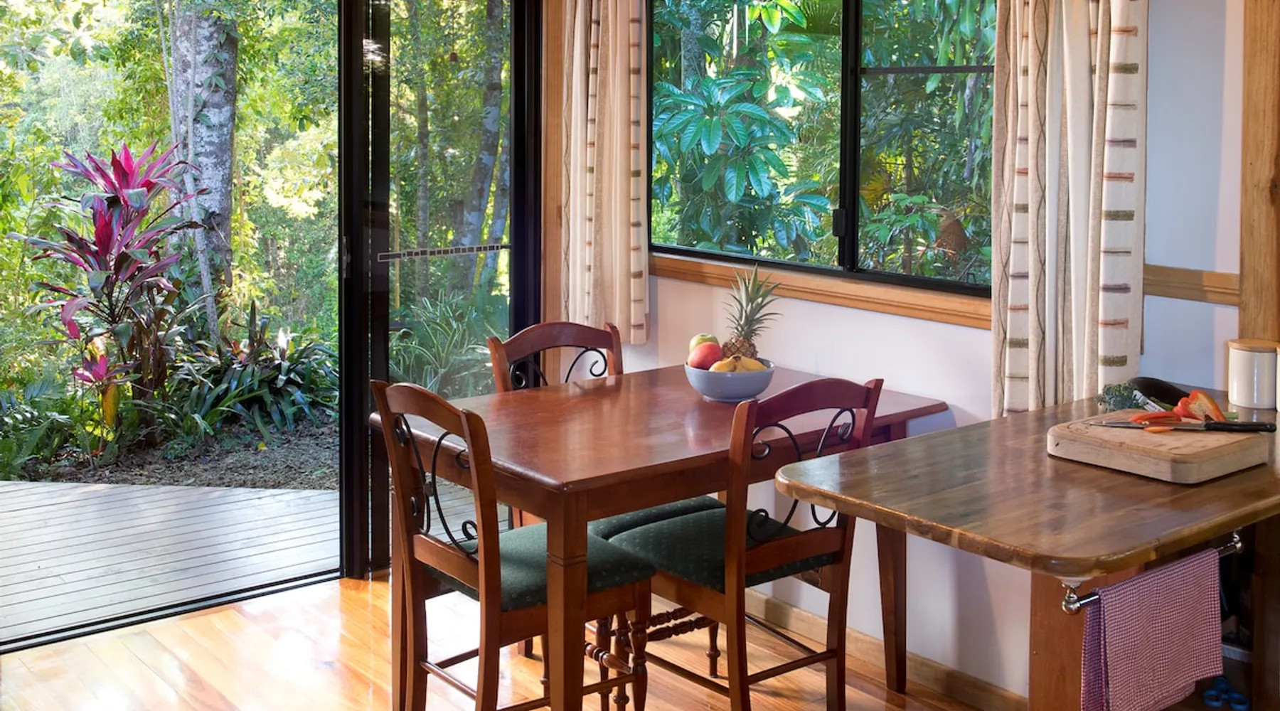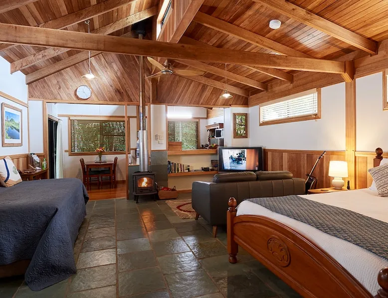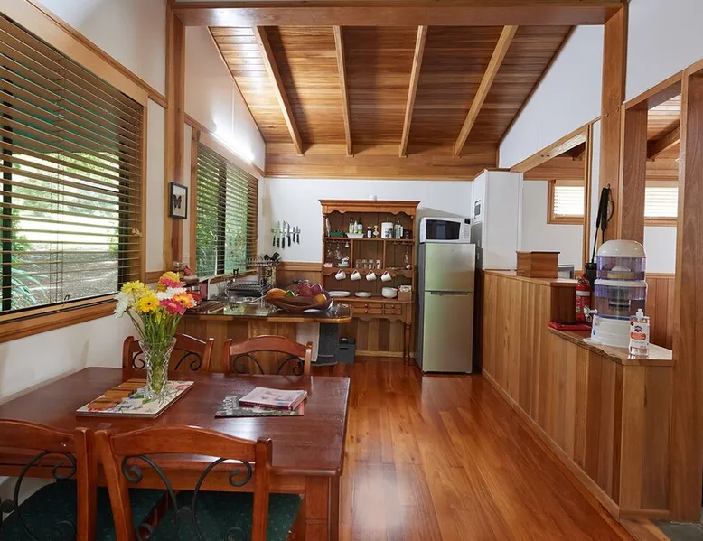 Sharlynn by the River is set on 1.5 hectares of rain-forest and gardens only 5 minutes drive from Malanda and very close to the crater lakes of Eacham and Barrine. You are only 7 minutes drive to the village of Yungaburra. Stay at Sharlynn and discover all that the Atherton Tablelands has to offer in great landscapes and many attractions. Your kitchen is stocked daily with fresh tableland local products you can use to prepare your sumptuous breakfast. The space Your boutique self-contained cabin hugs the edge of the rain-forest and overlooks the North Johnstone River. The cottage is suitable for one couple and has an additional 2 king single trundle beds. Sharlynn by the River is the best value accommodation of its type on the Atherton Tablelands Guest access Free Wi-Fi on NBN Other things to note Sharlynn by the River at Malanda is about 70 minutes drive from Cairns and the most direct route is via the Gillies Range Road. Malanda is about 750 meters above sea level and enjoy a cool moist climate in a rain-forest setting.
