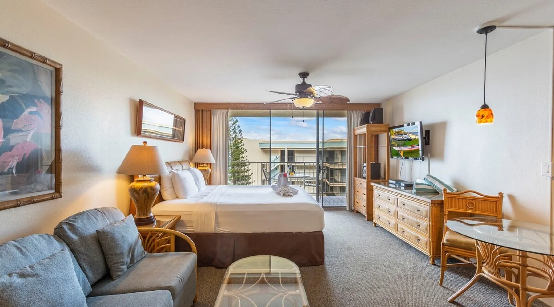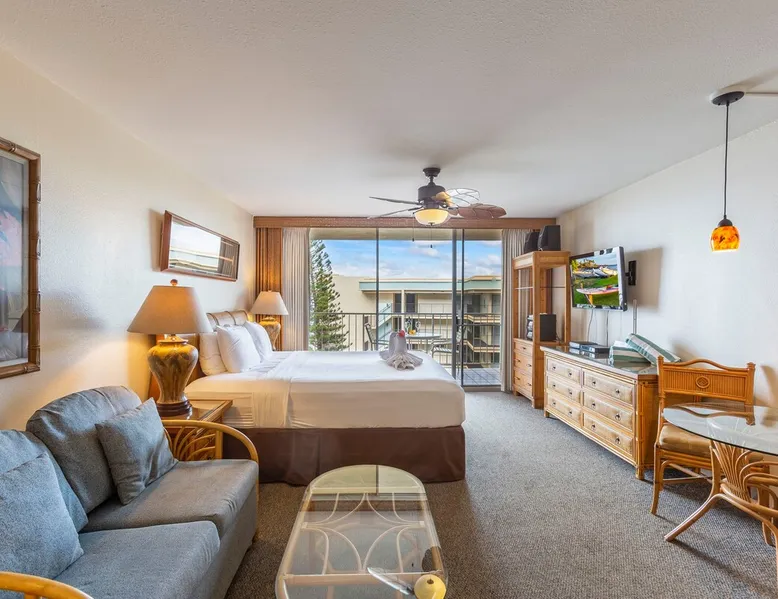 Welcome to Royal Kahana 804. This well appointed studio condo features central air conditioning, California King bed, & dining areas both inside & on the lanai. Lay in bed and admire the ocean, whales, sailboats, & the island of Molokai. You'll truly feel the essence of island time when you're inside this condo. This studio at Royal Kahana comes with everything needed for an amazing stay, including fresh linens, essentials, & beach gear. Make your Maui memories at Royal Kahana with Stay Aloha. The space 🌺 WHY YOU’LL LOVE IT 8th-floor oceanfront condo with breathtaking views of Moloka‘i and Lāna‘i Spacious 1BR / 1BA layout with California King bed and sofa sleeper (sleeps 4) Central A/C and ceiling fans throughout Fully equipped kitchen and Smart TV with cable Perfectly located near dining, shopping, and West Maui beaches 🏠 THE SPACE Bedroom: California king-size bed, dresser, 2 nightstands with USB chargers, TV with cable, ceiling fan, and sliding lanai door access. Digital safe provided. Bathroom: Accessible from bedroom or living room; features a walk-in shower, single sink vanity, fresh towels, and luxury organic bath products courtesy of Stay Aloha. Common Area: Open-concept living with a fully equipped kitchen, dining table for 4, Smart TV with cable, queen sofa sleeper, and comfortable sitting chairs. Closet with beach gear (chairs, umbrella, cooler — no snorkel gear). Lanai: Private lanai with seating for dining and relaxing while taking in panoramic ocean and sunset views. 🌴 AMENITIES Central A/C, ceiling fans, and high-speed Wi-Fi Starter supply of luxury organic bath, kitchen & laundry essentials (we supply more than most companies and do not drop extra) Aloha welcome gift on arrival Beach gear: chairs, umbrella, & cooler (no snorkel gear) Resort amenities: beachfront pool, BBQ area, fitness center, ping pong, shuffleboard, and on-site concierge 🏖 RESORT HIGHLIGHTS Beachfront pool and sun deck with BBQ grills On-site gym and activities center Walking distance to Kahana Gateway Center (Maui Brewing Co., coffee shop, markets) Short drive to Kāʻanapali, Napili Bay, and Lahaina 📍 LOCATION Oceanfront in Kahana, between Kāʻanapali and Kapalua Royal Kahana offers a beachfront pool, fitness center, shuffleboard, BBQ area, and activity concierge Across the street from Kahana Gateway Center with Maui Brewing Co., McDonalds, convenience stores, coffee, gas, and ATMs 🚗 PARKING & FEES Parking: $18/day + tax, payable directly to the front desk upon check-in Damage Insurance Fee: $100 covers up to $1,500 in accidental damage — accidents happen, we have you covered ⚠️ IMPORTANT NOTES 🚧 Construction Notice: Stucco repair work is ongoing at the resort. It does not affect the pool, fitness center, lobby, or elevators, but light noise may occur during daytime hours. 🗝️UNIT CONDITION: This condo is clean, comfortable, and well maintained in classic Hawaiian style. Please consider before booking if you prefer modern interiors. 🏨 ZONING: This property is Hotel Zoned and NOT in danger of the possible upcoming short term rental ban. 🌊 BEACH INFORMATION The beach fronting Royal Kahana experiences seasonal ocean current changes that affect its size and accessibility. During the fall and winter, sand may temporarily wash away but typically returns in spring and summer. Our HOA, the County of Maui, and the State of Hawaii continue working to restore Kahana Bay. If beach access is limited, a public beach access is located within a 5-minute walk. Photos from 1/16/23 show useable beach, but this is not guaranteed. 🦎🐓PEST CONTROL AND ROOSTERS: Due to Maui’s rural location, you may experience the occasional rooster or harmless gecko. Geckos are friendly, eat insects, and are considered good luck in Hawaii — please don’t harm them. The HOA performs regular pest control, but insects and lizards are part of island life. Our units are meticulously cleaned and inspected. Contact us if you notice excessive activity; we’ll coordinate with the HOA. ☀️CLIMATE: Hawaii’s tropical climate allows insects, rodents, and lizards to thrive. Any encounters, inside or outside, do not constitute a refund or rental adjustment. 🔕DISTURBANCES: We make no guarantee that neighboring properties will be free from disturbances (construction, traffic, other guests). These occurrences do not entitle guests to refunds or adjustments. 🤙 BOOK YOUR STAY Stay Aloha makes your vacation effortless — just arrive, relax, and enjoy island living. Reserve your dates now and make your Maui memories with us! Registration Details 430100070140, TA-057-047-2448-01