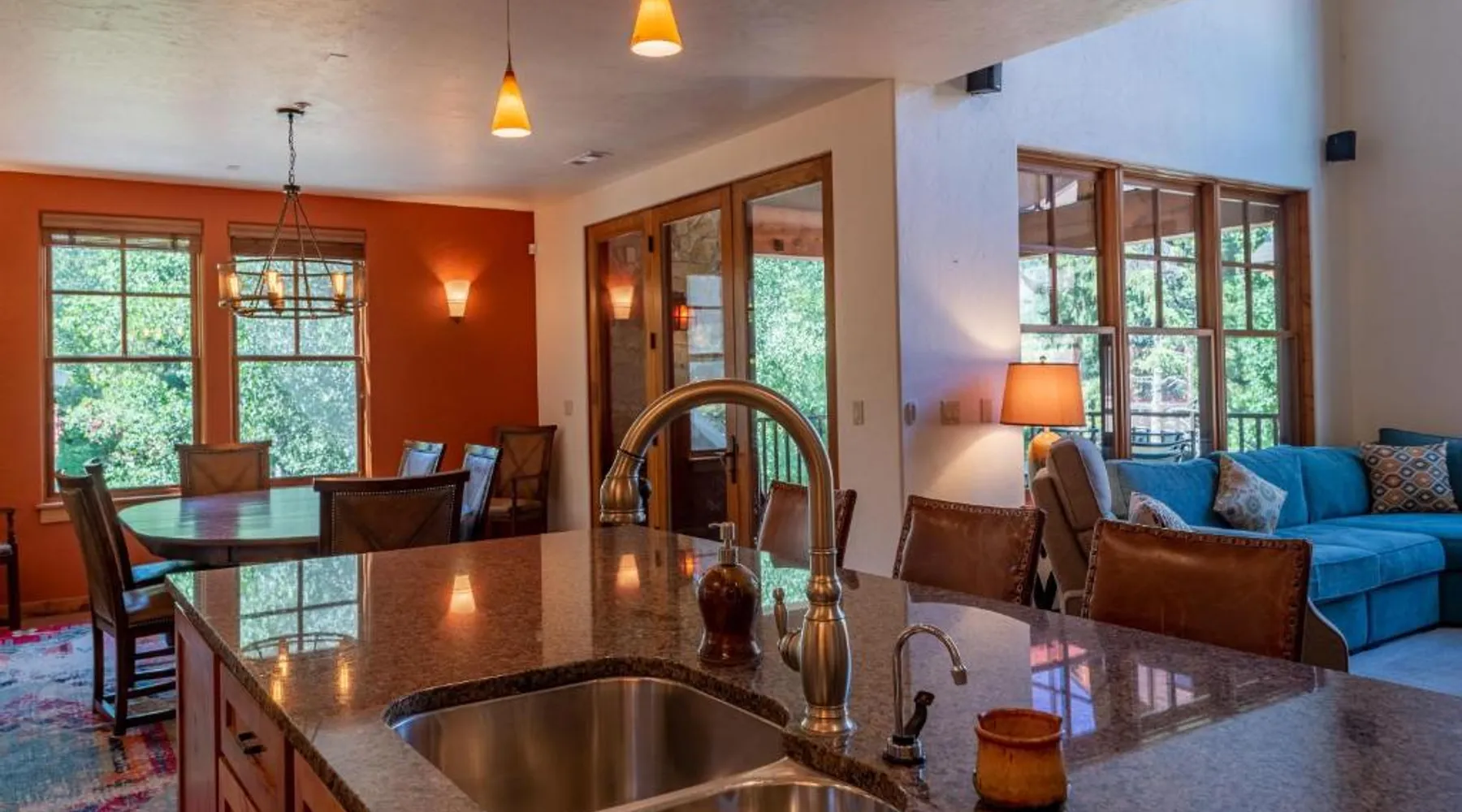 Spacious Accommodations: The Timbers O-3 Bedroom in Ketchum offers a spacious holiday home with three bedrooms and four bathrooms. The living room features a sofa bed and a dining area, providing ample space for relaxation and meals. Modern Amenities: Guests enjoy free WiFi, air-conditioning, and a balcony with mountain views. The fully equipped kitchen includes a refrigerator, microwave, dishwasher, oven, stovetop, toaster, and tea and coffee maker. Additional amenities include a washing machine, fireplace, barbecue, and TV. Convenient Location: Located 12 mi from Friedman Memorial Airport, the property is ideal for skiing enthusiasts. Reception staff speak English, ensuring a comfortable stay for all visitors. This apartment's standout feature is the fireplace. Featuring a private entrance, this air-conditioned apartment is consisted of of 1 living room, 3 separate bedrooms and 4 bathrooms with a bath and a shower. Guests will find a stovetop, a refrigerator, a dishwasher and kitchenware in the kitchen. The apartment also has a barbecue. The spacious apartment offers a washing machine, a tea and coffee maker, a dining area, a TV, as well as mountain views. The unit offers 5 beds.
