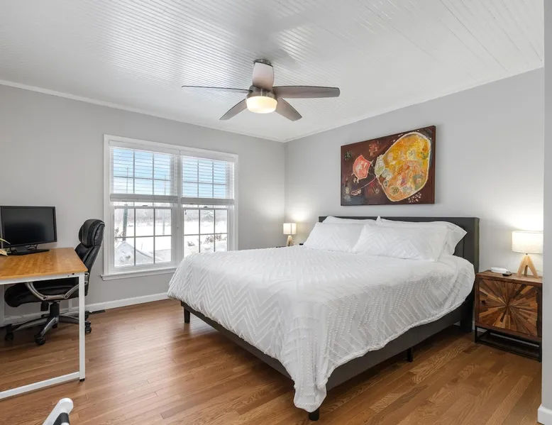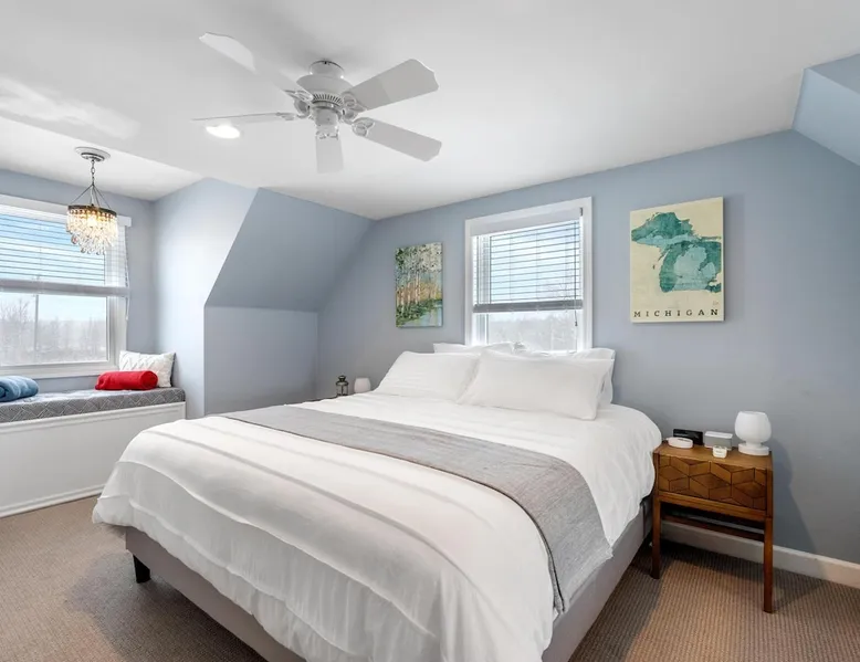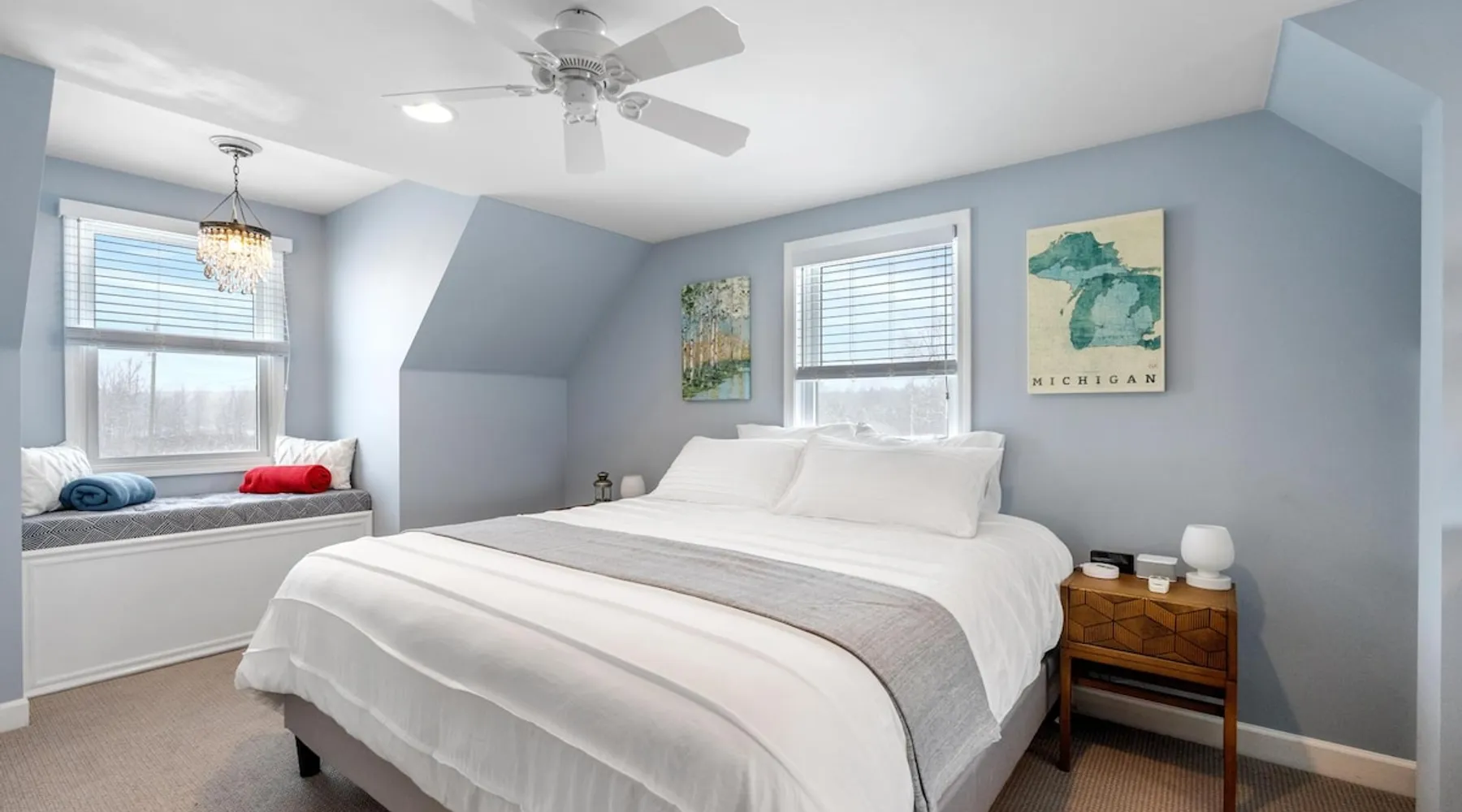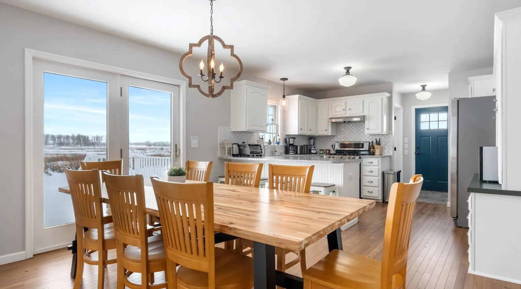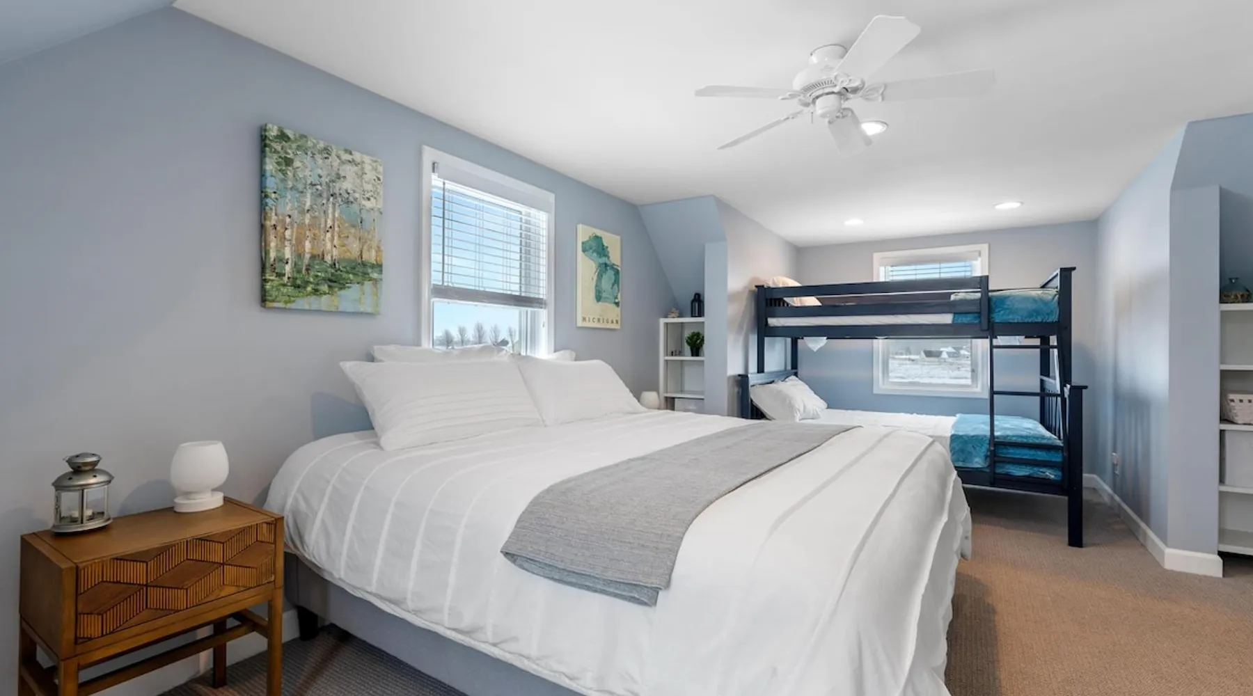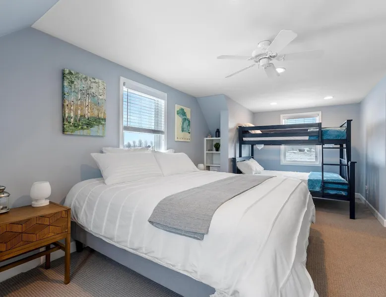 This fabulous property boasts all of the luxurious amenities you desire including spacious living areas, shared lake access to Crooked Lake, a boat launch five minutes down the road, and quick trips to all of your favorite resort towns: Petoskey, Harbor Springs, Boyne City, Mackinac City/Island, and more. Plenty of space to grill out, play yard games, and enjoy your friends and family! The space You will be welcomed through the front door with new hardwood flooring and a neutral palette. A nice size kitchen with granite counter tops - perfect for cooking instead of always going out to eat. Enjoy your meals at the dining table that seats eight or continue the summer and fall nights at the outside dining. The main level of the home also offers a half bath and the spacious primary suite, complete with heated bathroom floors and a large walk-in shower. Heading up the stairs, you will find a nice landing area to sit and read or for kids to play games. There are two large bedrooms and one full bath on this level as well. If the landing area is not enough for kids to relax, they can also enjoy the second "living" arrangement in the bedroom to watch TV. This home offers the perfect blend of seclusion and convenience! THE FOLLOWING IS A LAYOUT OF THE HOME Main Level Living Area, Kitchen, Bedroom One/King w/ensuite (shower), Half Bathroom Upper Level Bedroom Two/King & Bunkbed (Twin/Full), Bedroom Three/King & Sofa Sleeper (Full), Full Bathroom (combo tub/shower) NEARBY DESTINATIONS Downtown Harbor Springs: 14.2 miles The Highlands/Nub's Nob: 11.6 miles Dairy Queen (ice cream): 2.7 miles Windjammer Marina (boat rentals): 5.6 miles Ryde Marine (boat rentals) 3.8 miles Downtown Petoskey: 13.1 miles Mackinaw City (to catch a ferry to Mackinac Island): 26.9 miles Pellston Regional Airport: 11.4 miles Petoskey State Park (Lake Michigan): 10.5 miles ABOUT US Vacation Properties of Northern Michigan is a rental management company located in downtown Petoskey. We have been operating for 15 years and we understand the importance of vacation and the anticipation leading up to it. We care about our travelers and take pride in our portfolio of rental properties. We encourage you to look us up online and reach out if you have any questions or concerns about the property. Our goal is to provide you with the best vacation possible with clean/well-kept places, great communication, and fun environments so that you keep coming back. Northern Michigan has our hearts, and we want it to have yours, too! Other things to note After booking on this platform, you must enter into a rental agreement with Vacation Properties of Northern Michigan to confirm your booking fully. Access codes and other important rental details will be sent via text seven days before your arrival. This number is how you will reach us if you need assistance during your stay. We are a local rental management company, and our texting software provides the quickest way to answer questions on all our booking platforms.