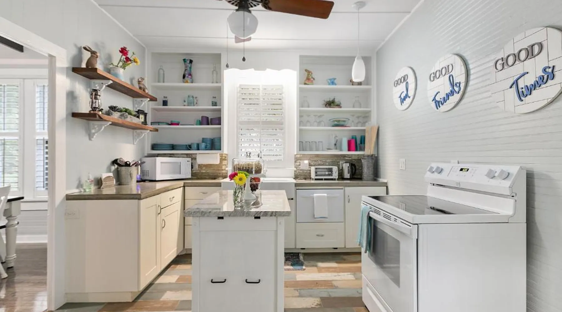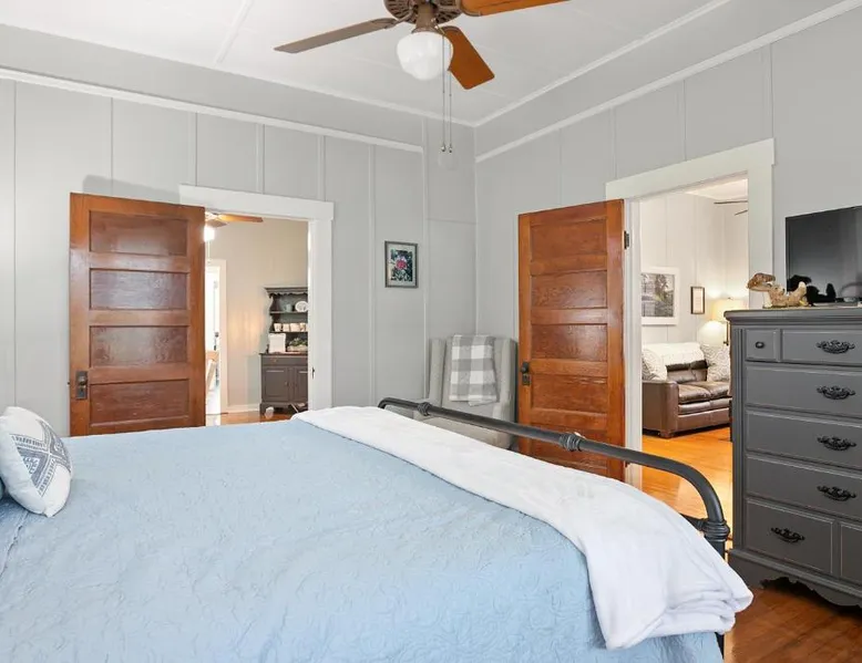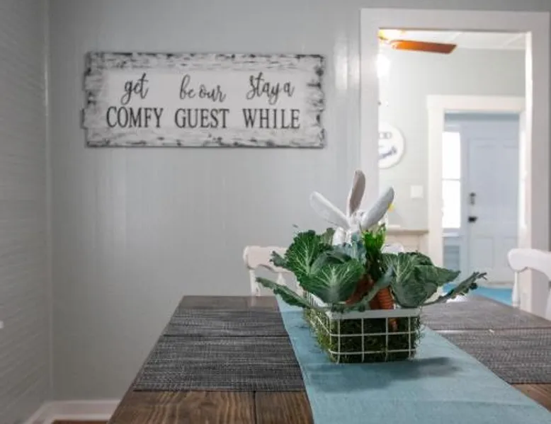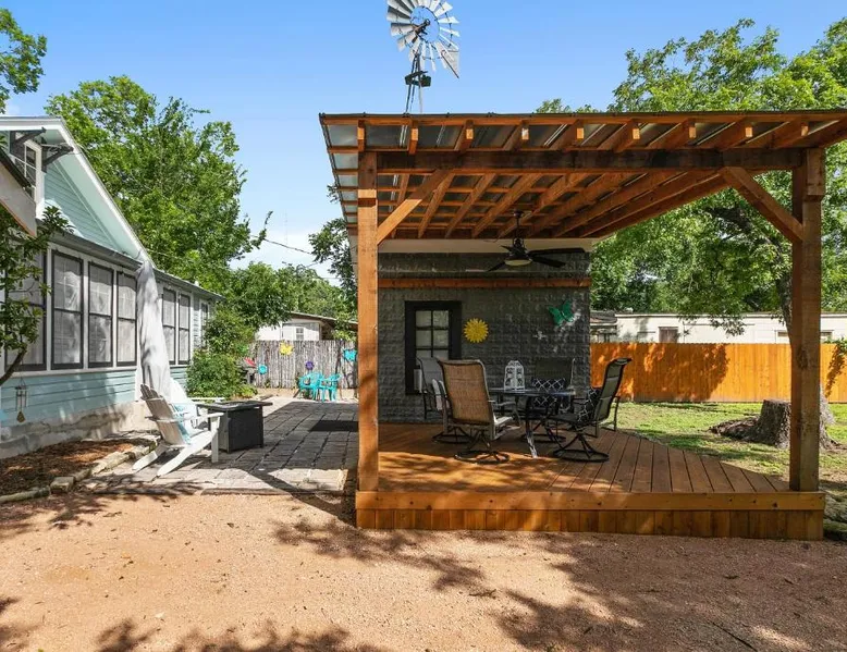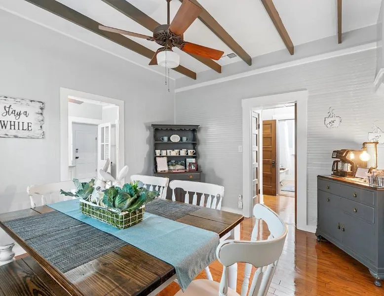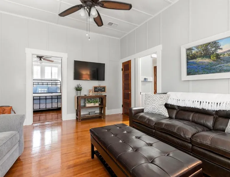 Spacious Accommodations: Ms Bunnys Bungalow in Fredericksburg offers a spacious holiday home with two bedrooms and two bathrooms. The property features a dining area and a fully equipped kitchen with modern appliances. Essential Amenities: Guests enjoy free WiFi and free on-site parking. The home includes air-conditioning, a TV, and a dishwasher for added comfort. Local Attractions: Enchanted Rock State Natural Area is located 17 mi away, providing scenic views and outdoor activities. San Antonio International Airport is 69 mi from the property. Guests can make meals in the kitchen that features a refrigerator, a dishwasher, a microwave and a toaster. The spacious holiday home features air conditioning, a tea and coffee maker, a dining area, as well as a TV with cable channels. The unit has 2 beds.
