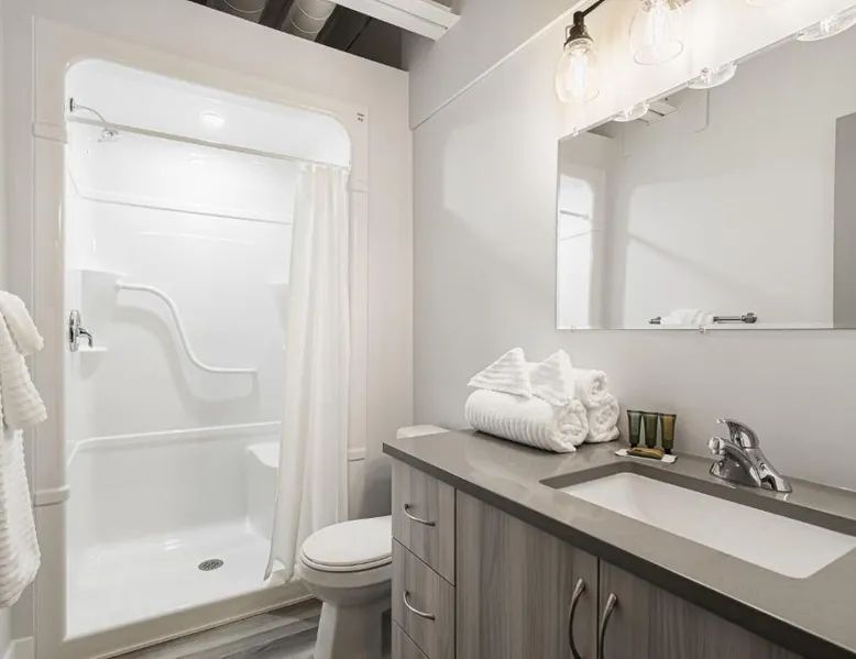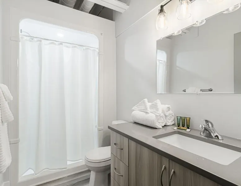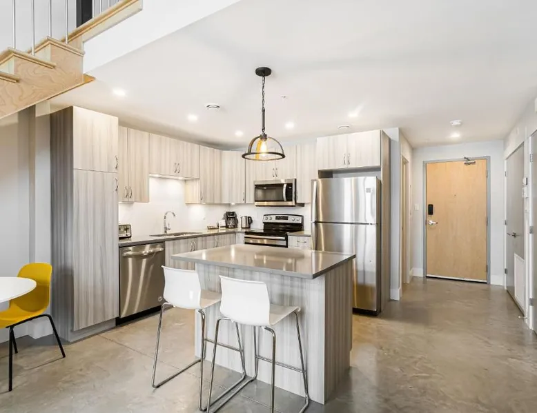 Comfortable Accommodations: Station 1 by Terra Hospitality in Moncton offers aparthotel-style accommodations with free WiFi, air-conditioning, and private bathrooms. Each unit includes a fully equipped kitchen, washing machine, and dining area. Convenient Facilities: Guests benefit from private check-in and check-out services, a 24-hour front desk, and free on-site parking. Additional amenities include a work desk, sofa bed, and soundproofing. Prime Location: Located 4.3 mi from Greater Moncton Roméo LeBlanc International Airport, the aparthotel is a short walk from Moncton Stadium and near attractions such as Capitol Theater and Moncton Golf & Country Club. Featuring a private entrance, this air-conditioned suite consists of 1 living room, 1 separate bedroom and 2 bathrooms with a bath and a shower. Meals can be prepared in the well-fitted kitchen, which is equipped with a stovetop, a refrigerator, a dishwasher and kitchenware. The spacious suite provides a washing machine, soundproof walls, a tea and coffee maker, a seating area and a flat-screen TV with cable channels. The unit offers 2 beds.