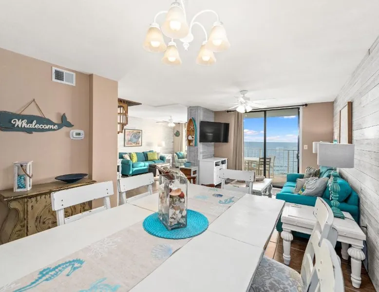 Spacious Accommodations: Sunswept 806 Condo in Orange Beach offers a spacious apartment with three bedrooms and three bathrooms. The living room provides ample space for relaxation. Outdoor Amenities: Guests can enjoy an outdoor swimming pool and a fitness room. Free WiFi is available throughout the property, ensuring connectivity. Modern Facilities: The apartment includes air-conditioning, a heated pool, washing machine, and a fully equipped kitchen with a barbecue. Additional amenities include a TV, dishwasher, and microwave. Nearby Attractions: Orange Beach is a 2-minute walk away, while Gulf State Park Fishing Pier is 5.6 mi distant. Pensacola International Airport is 30 mi from the property. This spacious apartment consists of 1 living room, 3 separate bedrooms and 3 bathrooms with a shower. The well-equipped kitchen features a refrigerator, a dishwasher, kitchenware and a microwave. The apartment provides air conditioning, a washing machine, a tea and coffee maker, a barbecue and a TV. The unit offers 4 beds.