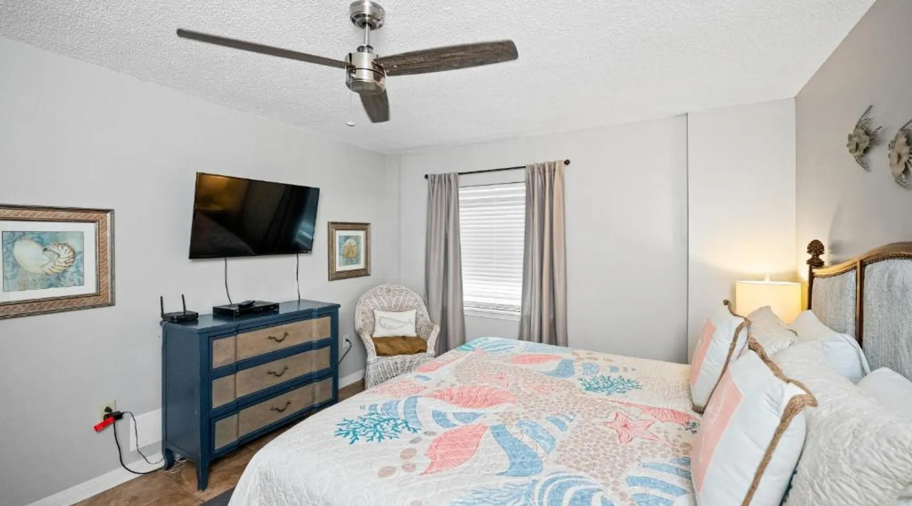 Comfortable Accommodations: Seaside 5414 Condo in Orange Beach offers three bedrooms and two bathrooms. The apartment includes air-conditioning, a heated pool, and free WiFi. Modern Amenities: Guests can enjoy a fitness room, washing machine, fully equipped kitchen with a refrigerator, microwave, dishwasher, and toaster. Additional amenities include a barbecue, tea and coffee maker, and a TV. Convenient Location: Located a 5-minute walk from Orange Beach, the property is 32 mi from Pensacola International Airport. Nearby attractions include Gulf State Park Fishing Pier (5 mi), Alabama Gulf Coast Zoo (11 mi), and The Park at OWA (13 mi). The air-conditioned apartment features 3 bedrooms, 2 bathrooms with a shower and a kitchen. Guests will find a refrigerator, a dishwasher, kitchenware and a microwave in the fully equipped kitchen. The apartment also provides guests with a barbecue. This apartment has a washing machine, a tea and coffee maker and a TV. The unit offers 3 beds.