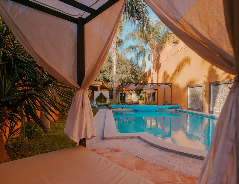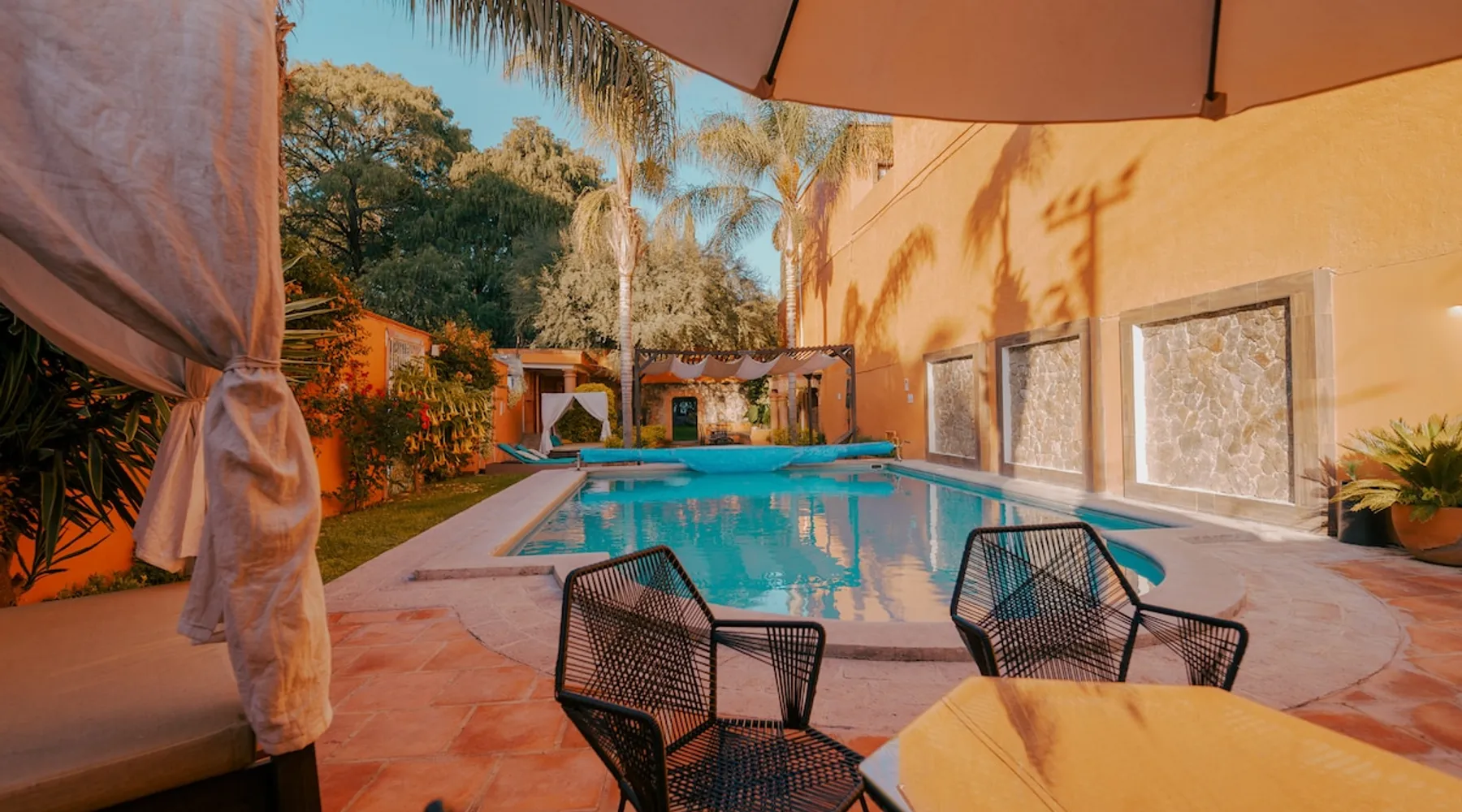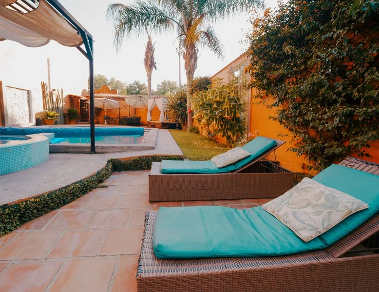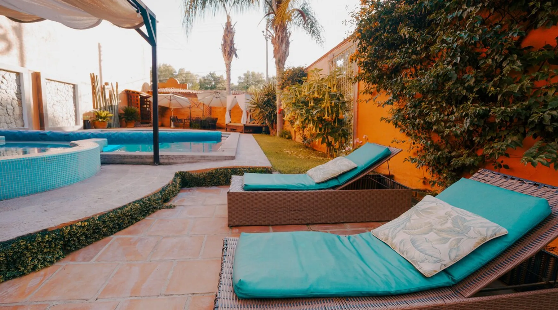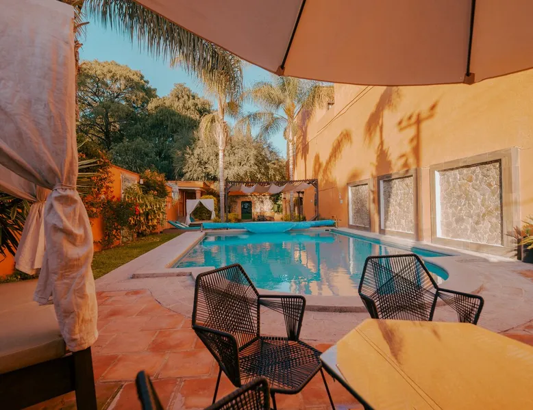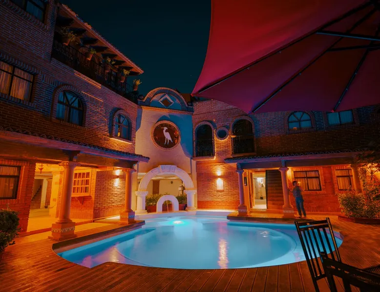 Villa type room, it is a large room ideal for 2 people or a small family, the room is distributed over 2 floors, the room is distributed on 2 floors, it has 1 bunk bed, 2 full bathrooms, kitchenette, dining room table and private pool service ( The temperature the pool is warm) The space The hotel is 2 blocks from the center in front of the park la pila, we are a very picturesque hotel in Tequisquiapan for our construction, location and tranquility. Fast access to roads and 24hrs security. The architecture of the hotel and the rooms reflects a very welcoming atmosphere. Guest access We have free parking ( covered and uncovered) we have parking lots (covered and uncovered), 2 Albercas; Main pool with room temperature; The pool and the back jacuzzi have a heated system. Other things to note We have electronic proximity keys for greater security and easy access. We have 2 pools,: - 1 pool and heated jacuzzi with solar system. (We are totally dependent on the weather.) - 1 pool with room temperature (No heating) The pool fills with warm water. Parking lots and 24hs service.