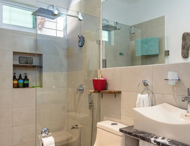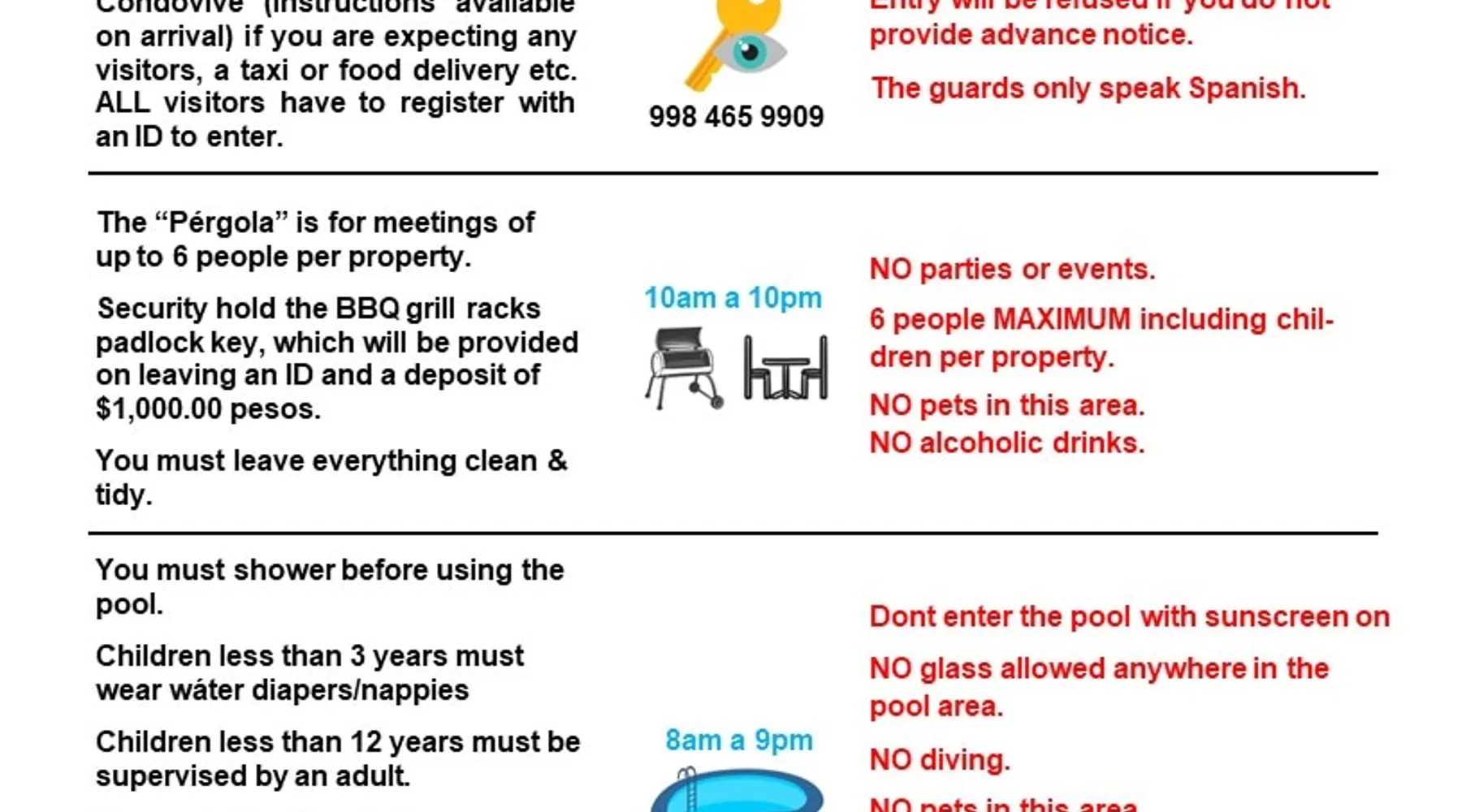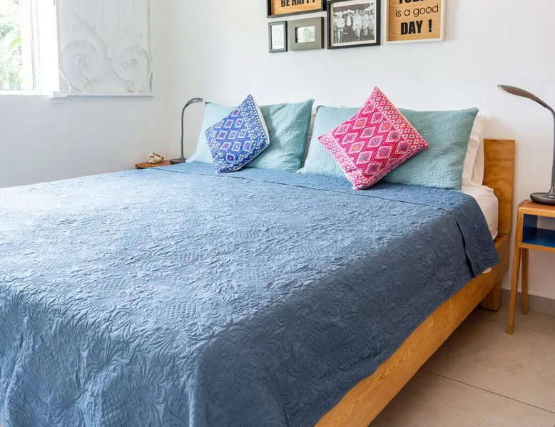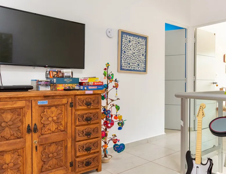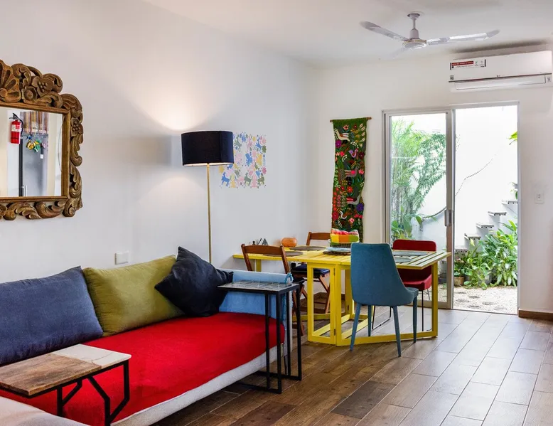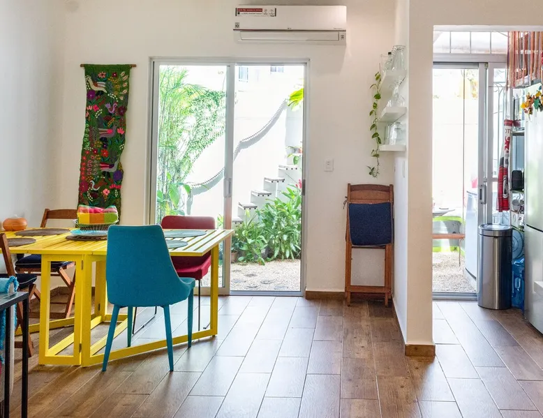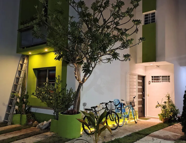** Maximum 6 guests including children & infants. The house benefits from the condo 24hr security, pool, kids play area, BBQ area and basketball court. The house itself has a terrace, balcony & private patio, 80MB fiberoptic internet (upload and download) - up to 350MB on request, 55" & 46" TVs, dishwasher, coffee makers, full oven & washer/dryer. The bedrooms & living area have powerful ACs. The bathrooms have rain showers w/pressure pump. 2 bikes provided. Lots of amenities for families The space The house has colourful mexican design throughout and mexican arts and crafts. The palapa terrace is a lovely shaded airy space to chill in the hammock or on the beanbag. The patio has 2 acapulco chairs for relaxing and a table with bench, stools and wooden swing, for the family to sit around. The house and its outside private spaces cover 130m2 (1400feet2). The house and condominium are a very secure environment, with 24/7 security guard, access is restricted and only with ID, theres an electric fence, and CCTV around the perimeter (not for any other reason than prevention and peace of mind!) Lots of home comfort touches & things for your convience, like cotton sheets and towels, hotel grade matresses (firm), more than the bathroom essentials, ceiling fans, USB sockets in every bedside lamp, USB charger cables, travel adapters, beach essentials (beach towels, beach umberella, 2 beach chairs, snorkelling gear, cool bag, beach mat), umberellas, hairdryer, hoover, first aid kit. KITCHEN In addition to the kitchen amenities mentioned above, theres also a Nespresso Vertuo machine and frother, an electric coffee maker, and espresso coffee pot, 4 slice toaster, electric citrus press, blender, kettle and microwave. The hob is a larger 5 ring gas stove. Salt, pepper, some herbs & spices, sugar, olive oil, vegetable oil, teas and ground filter coffee are all provided as a starter pack for you. Big glasses, small glasses, wine glasses, ice cream sundae glasses, mugs, tupperware, oven dishes, bowls, a pizza cutter, ice cream scoop, potato masher, garlic press ... just like home! ENTERTAINMENT Theres a small range of books, PS3 with Rockband, Singstar, ten pin bowling and several other games, family board games & playing cards & more. Subscriptions to Netflix HD, Amazon Prime TV, Disney+ and Claro Video. You can play music on 1 Smart Mini speaker or the living room TV soundbar. FAMILIES & KIDS Family amenities include the travel cot/playpen/changing table, highchair, baby bath, baby monitor, electrical socket safety covers and baby/toddler gates at the top and bottom of the stairs and in the palapa. 2 kids seats are available for the bikes on request. The condominium kids play area has a great play structure with swings, slide, climbing ropes etc. The shallow area of the pool is great for them (and for adults to lie back in). For older kids (and adults!), theres the basketball court. Ive left a few childrens books and some coloured pencils and paper for an extra distraction for the younger ones. DIGITAL NOMADS/REMOTE WORKERS There are various options for where to locate the desk, depending on your group size and how many bedrooms you need to use: either in the upstairs TV area (this area doesn't have AC), in the master bedroom, or in the twin bedroom. There are routers and ethernet connections both upstairs and downstairs. For one-off/occasional printing needs you are welcome to send documents to me to print Guest access The entire house, terrace, balcony, & patio are private and for your exclusive use. A cupboard under the stairs will be kept locked. Only the condominium amenities are shared: pool, kids play area, BBQ/picnic area, outdoor exercise equipment and basketball court.