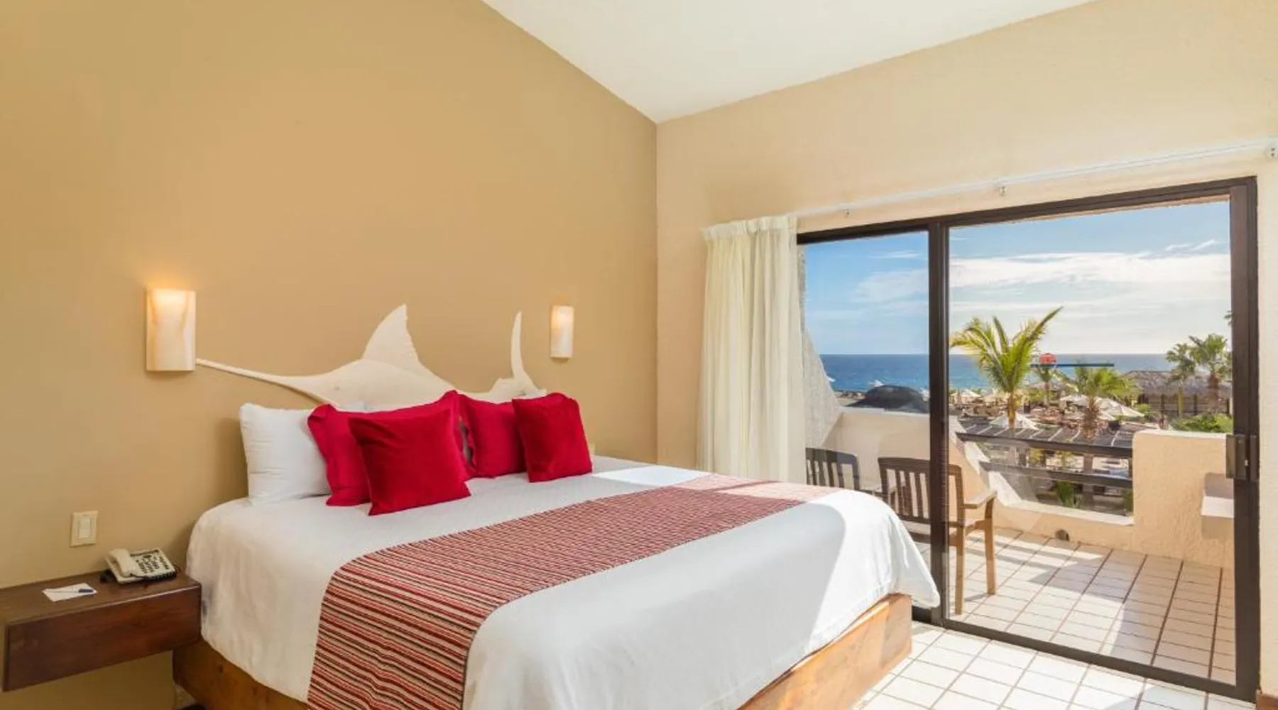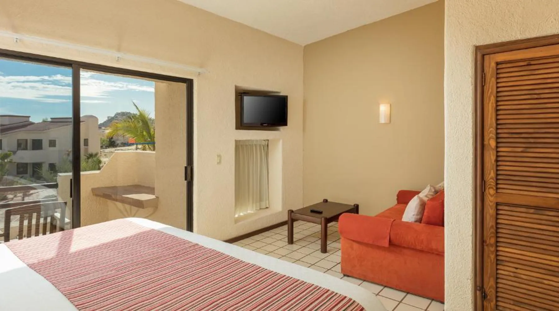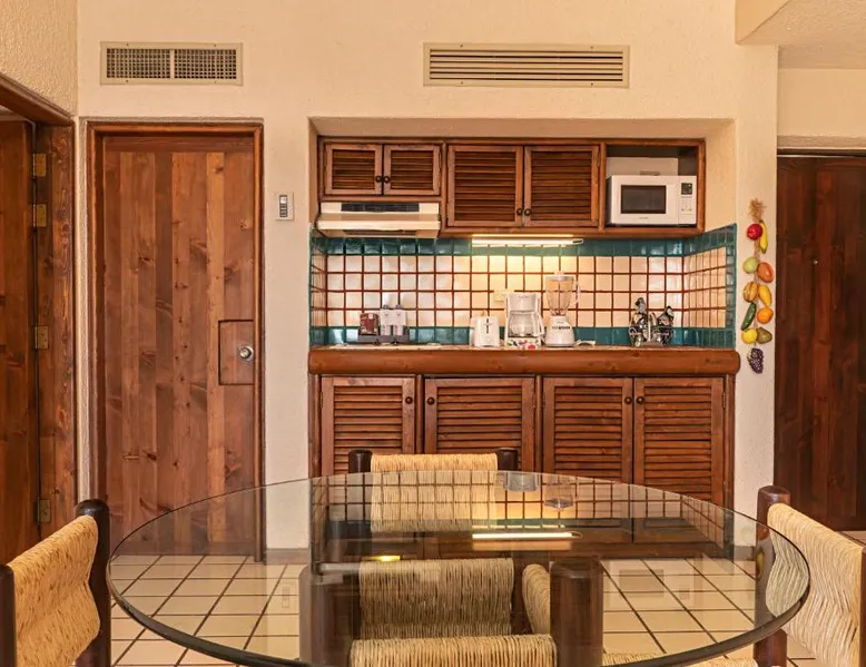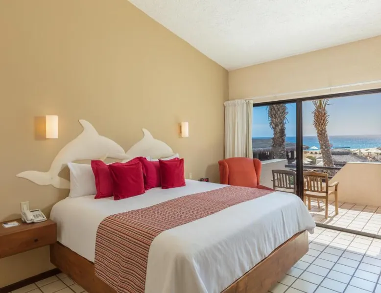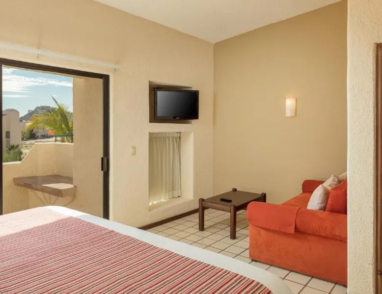 The Solmar Resort of Cabo San Lucas is located on the Pacific Ocean, hidden behind granite cliffs. This resort features a spa located in cabins, an outdoor pool and suites with a private balcony. The suites at the Resort Solmar are furnished with cable TV, air conditioning and a coffee maker. There is also a fridge in every suite. There are 3 restaurants serving international food, sushi and local dishes. They also offer themed nights and a range of social activities. Guests can organize sportsfishing adventures with the resort. Cabo San Lucas is a popular destination for whale watching. You can walk to Cabo San Lucas' shops, bars and restaurants in just 5 minutes from the hotel. The Solmar Resort in Cabo San Lucas is less than one mile from Land’s End and Plaza Bonita. Cabo Dolphins and The Point are also within one mile of the resort. This air-conditioned studio features a private balcony, a sofa bed and a king-size bed. It also has a satellite TV, fridge and 2 bathrooms.