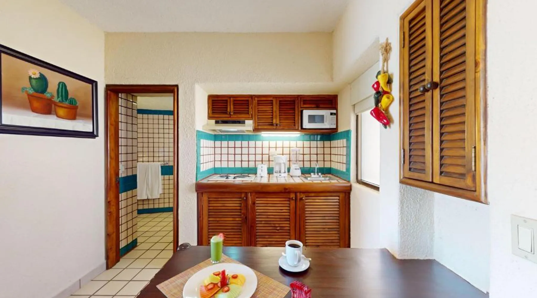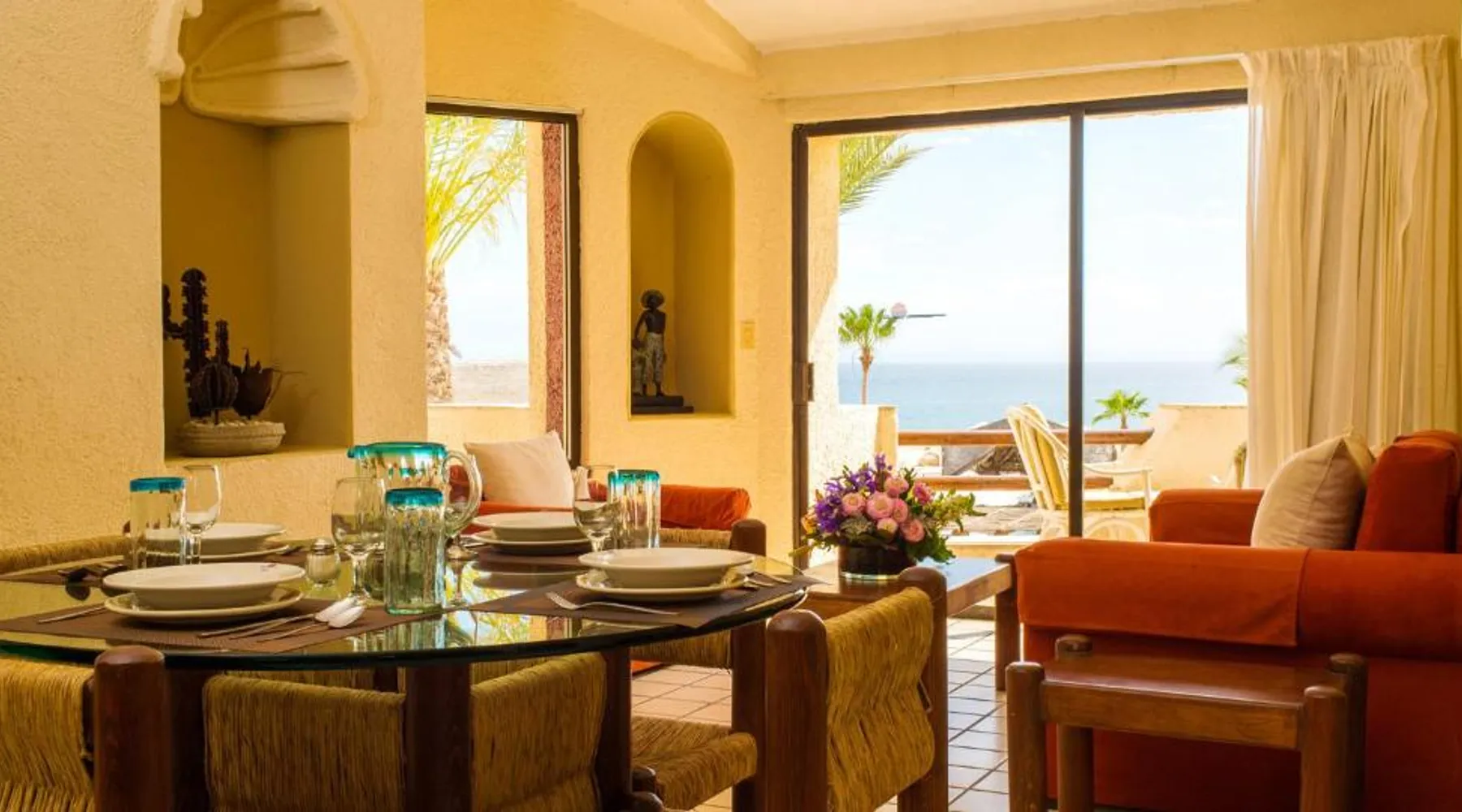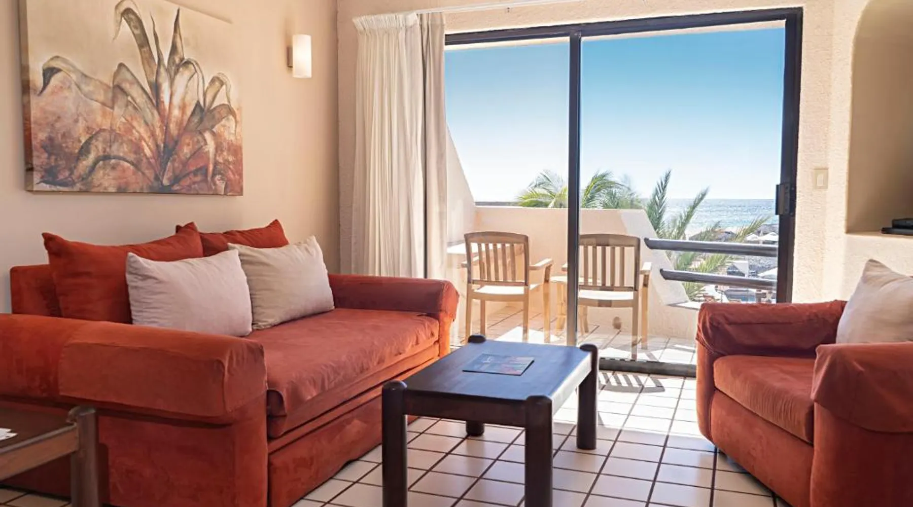 The Solmar Resort of Cabo San Lucas is located on the Pacific Ocean, hidden behind granite cliffs. This resort features a spa located in cabins, an outdoor pool and suites with a private balcony. The suites at the Resort Solmar are furnished with cable TV, air conditioning and a coffee maker. There is also a fridge in every suite. There are 3 restaurants serving international food, sushi and local dishes. They also offer themed nights and a range of social activities. Guests can organize sportsfishing adventures with the resort. Cabo San Lucas is a popular destination for whale watching. You can walk to Cabo San Lucas' shops, bars and restaurants in just 5 minutes from the hotel. The Solmar Resort in Cabo San Lucas is less than one mile from Land’s End and Plaza Bonita. Cabo Dolphins and The Point are also within one mile of the resort. This air-conditioned studio features a private balcony, a sofa bed and a king-size bed. It also has a satellite TV, fridge and 2 bathrooms.
