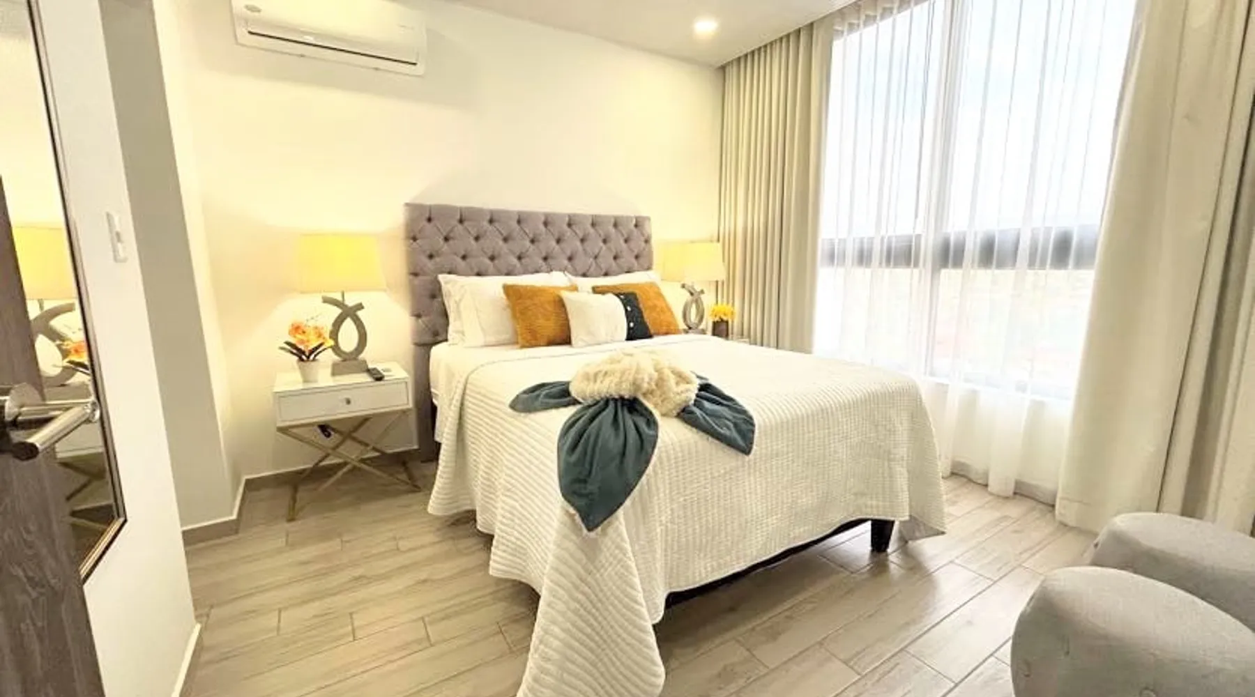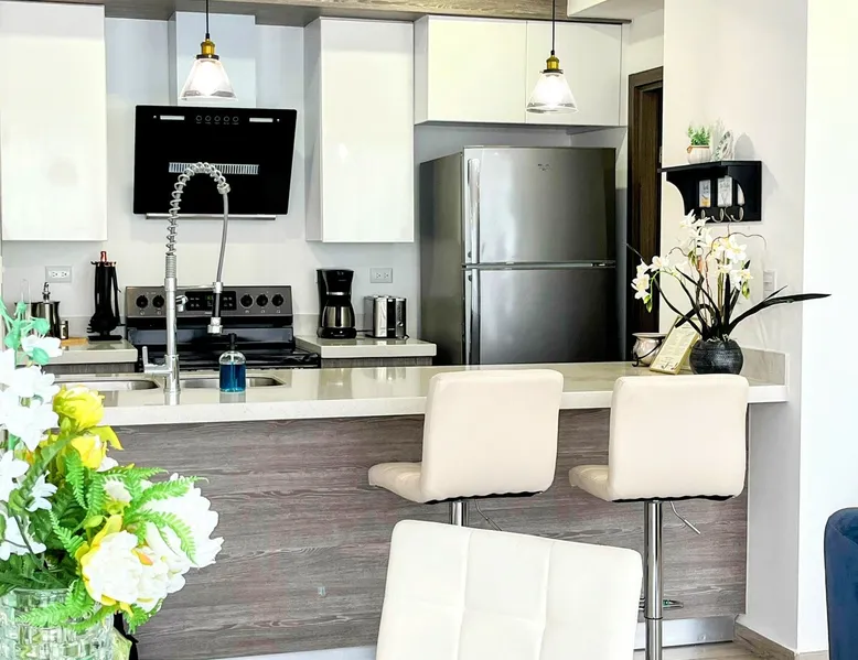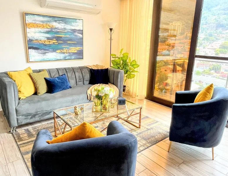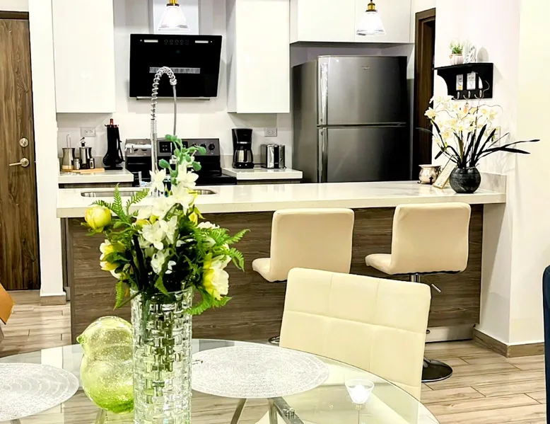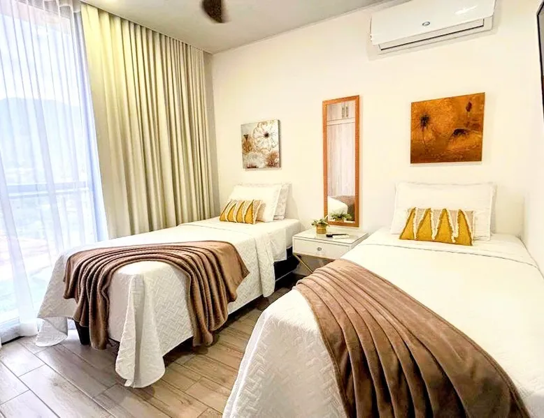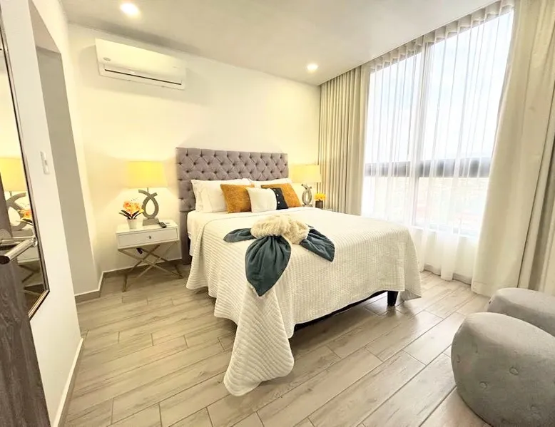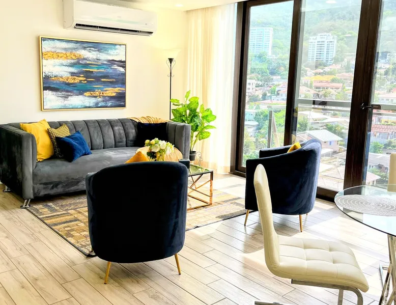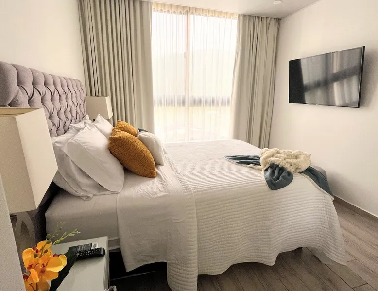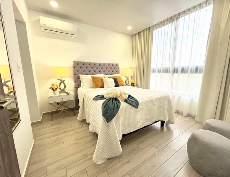 Luxurious, modern and cozy condominium located in an exclusive area of San Pedro Sula, on the 11th floor with spectacular views of the city, 24/7 security and two private parking spaces. Less than 500 meters from banks, restaurants, and cafes. The building has all the amenities (swimming pool, gym, business center, lounge area) for you to enjoy your stay whether with your family or on business. The space Decorated with fine and elegant touches with your comfort in mind, making your stay a favorite place for business or pleasure trips. Fully equipped, it has all the comforts and amenities to make your stay a pleasant experience. Guest access It has private parking for 2 cars. Access to the complex's shared areas: swimming pool, gym, and social area It has a Business Center area, with a reservation and an additional cost directly with the building's administration Other things to note It should be noted that in front of the building there is a mini market and a café, a few meters away there are beauty salons and a variety of restaurants and dry cleaning.