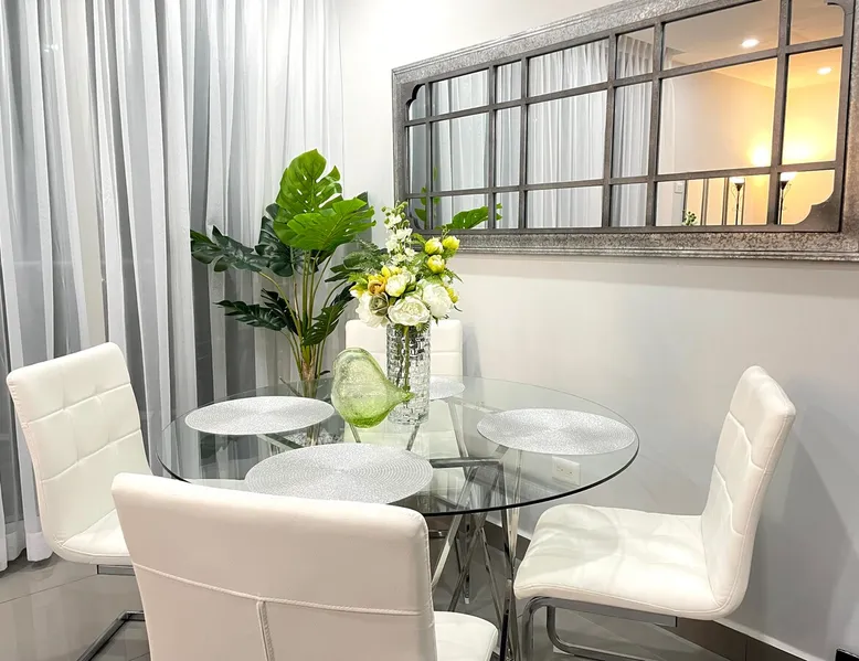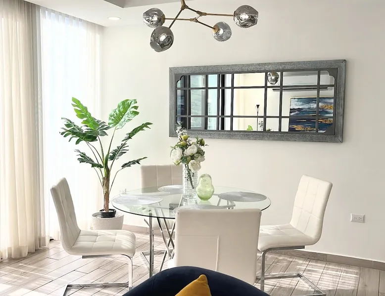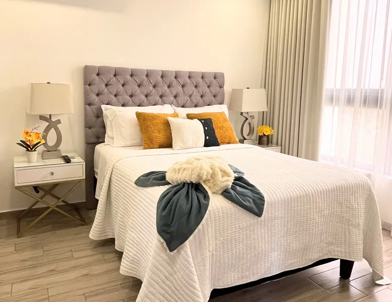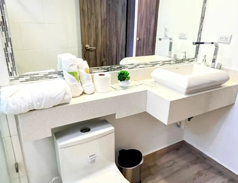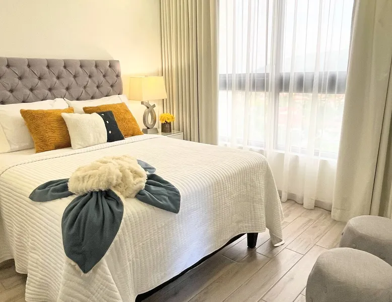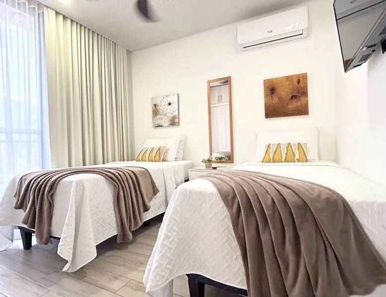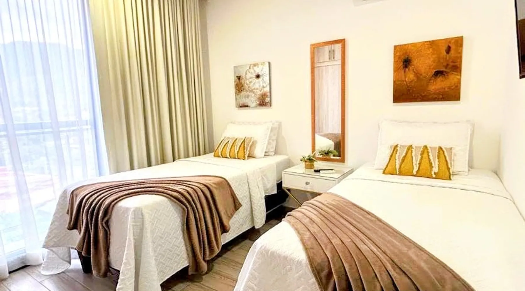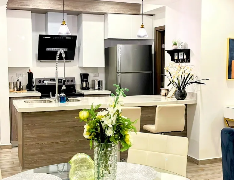 Luxurious, modern and cozy condominium located in an exclusive area of San Pedro Sula, on the 11th floor with spectacular views of the city, 24/7 security and two private parking spaces. Less than 500 meters from banks, restaurants, and cafes. The building has all the amenities (swimming pool, gym, business center, lounge area) for you to enjoy your stay whether with your family or on business. The space Decorated with fine and elegant touches with your comfort in mind, making your stay a favorite place for business or pleasure trips. Fully equipped, it has all the comforts and amenities to make your stay a pleasant experience. Guest access It has private parking for 2 cars. Access to the complex's shared areas: swimming pool, gym, and social area It has a Business Center area, with a reservation and an additional cost directly with the building's administration Other things to note It should be noted that in front of the building there is a mini market and a café, a few meters away there are beauty salons and a variety of restaurants and dry cleaning.
