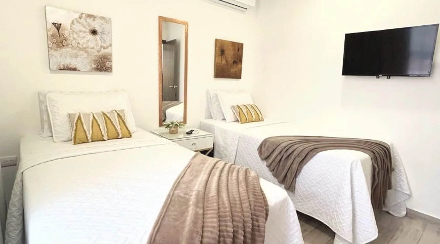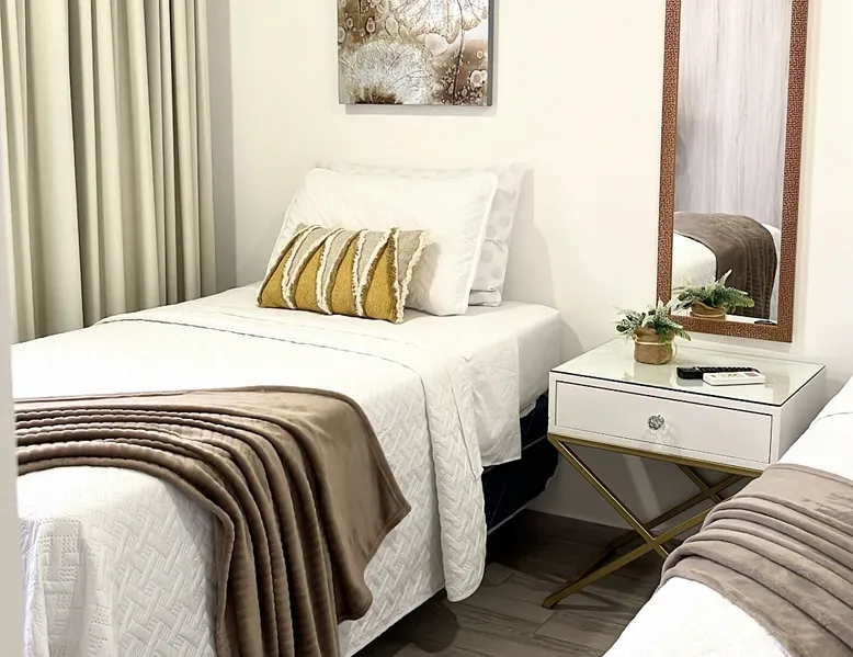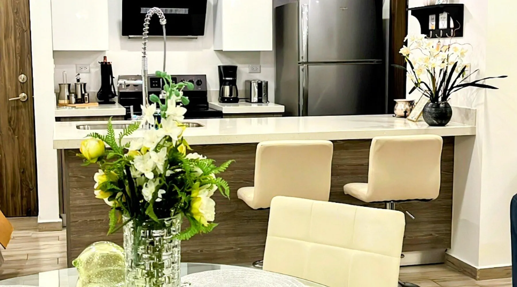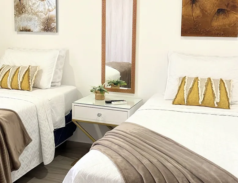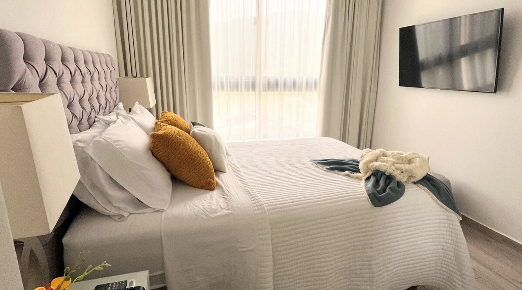 Luxurious, modern and cozy condominium located in an exclusive area of San Pedro Sula, on the 11th floor with spectacular views of the city, 24/7 security and two private parking spaces. Less than 500 meters from banks, restaurants, and cafes. The building has all the amenities (swimming pool, gym, business center, lounge area) for you to enjoy your stay whether with your family or on business. The space Decorated with fine and elegant touches with your comfort in mind, making your stay a favorite place for business or pleasure trips. Fully equipped, it has all the comforts and amenities to make your stay a pleasant experience. Guest access It has private parking for 2 cars. Access to the complex's shared areas: swimming pool, gym, and social area It has a Business Center area, with a reservation and an additional cost directly with the building's administration Other things to note It should be noted that in front of the building there is a mini market and a café, a few meters away there are beauty salons and a variety of restaurants and dry cleaning.