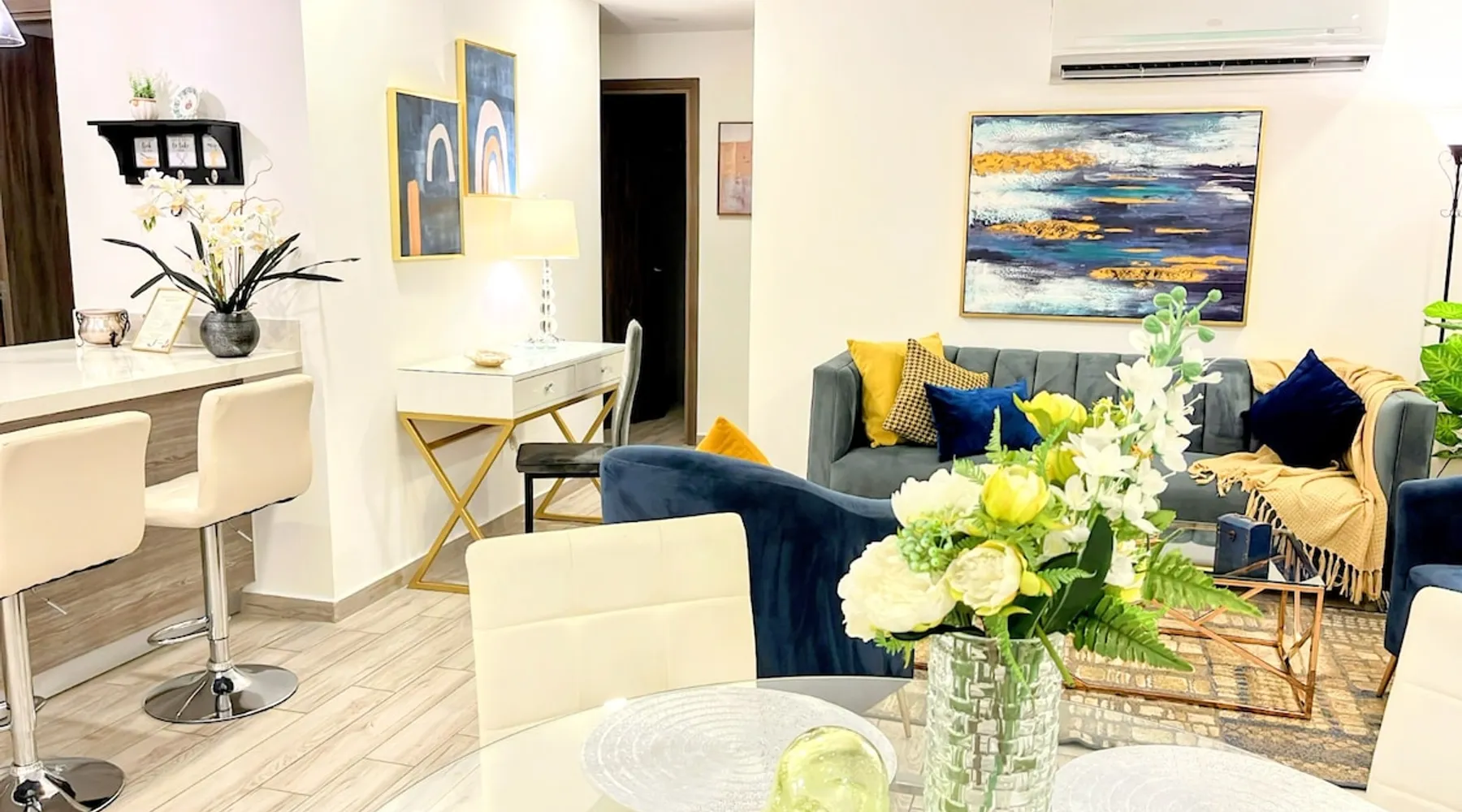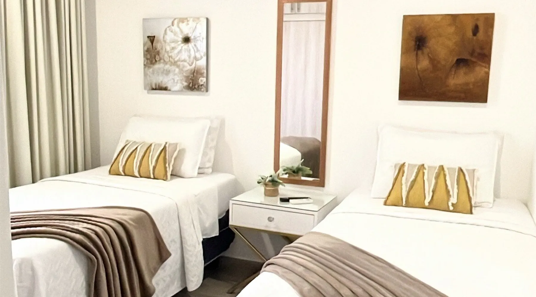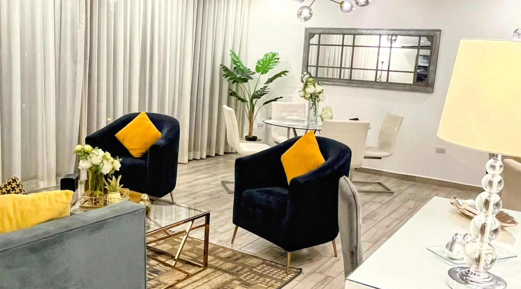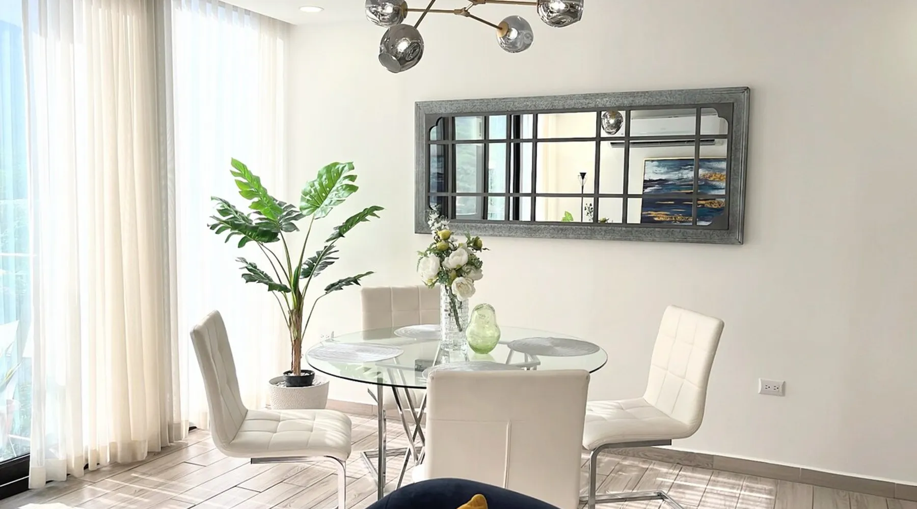 Luxurious, modern and cozy condominium located in an exclusive area of San Pedro Sula, on the 11th floor with spectacular views of the city, 24/7 security and two private parking spaces. Less than 500 meters from banks, restaurants, and cafes. The building has all the amenities (swimming pool, gym, business center, lounge area) for you to enjoy your stay whether with your family or on business. The space Decorated with fine and elegant touches with your comfort in mind, making your stay a favorite place for business or pleasure trips. Fully equipped, it has all the comforts and amenities to make your stay a pleasant experience. Guest access It has private parking for 2 cars. Access to the complex's shared areas: swimming pool, gym, and social area It has a Business Center area, with a reservation and an additional cost directly with the building's administration Other things to note It should be noted that in front of the building there is a mini market and a café, a few meters away there are beauty salons and a variety of restaurants and dry cleaning.