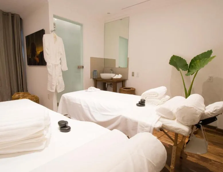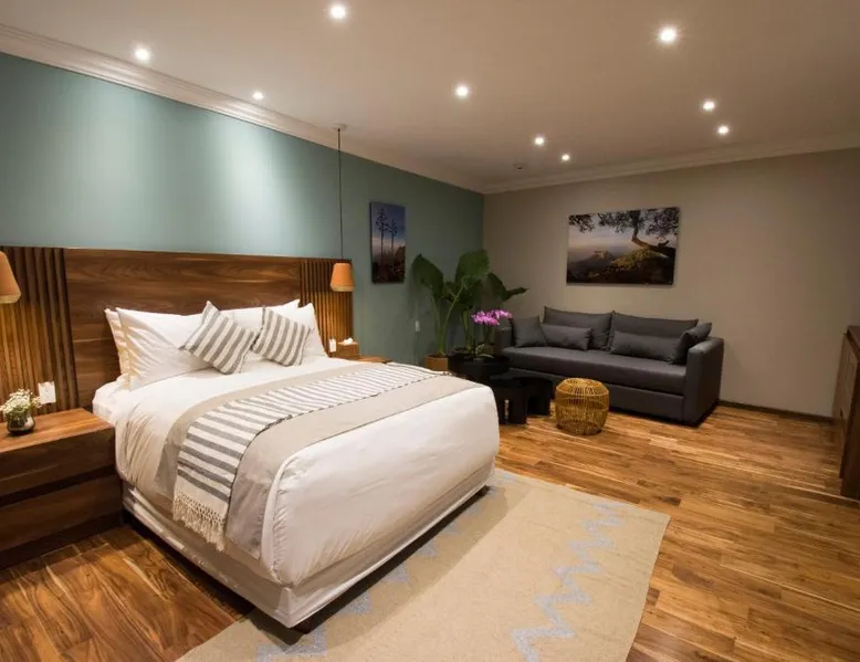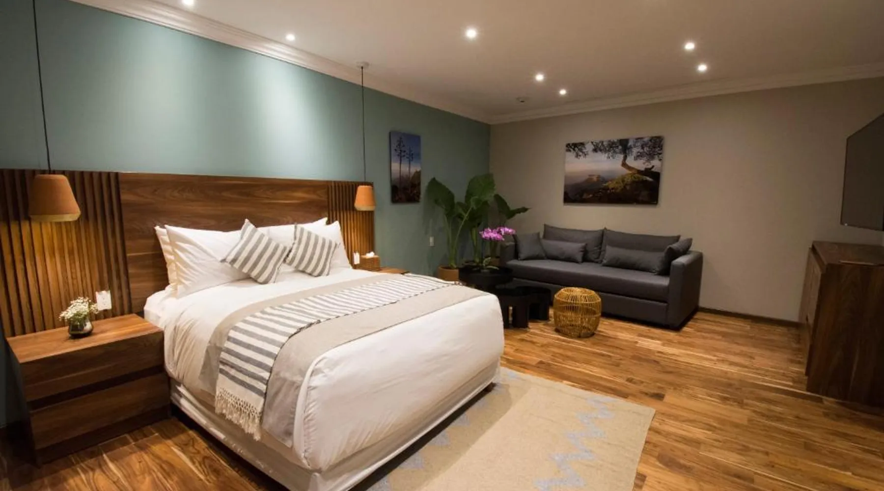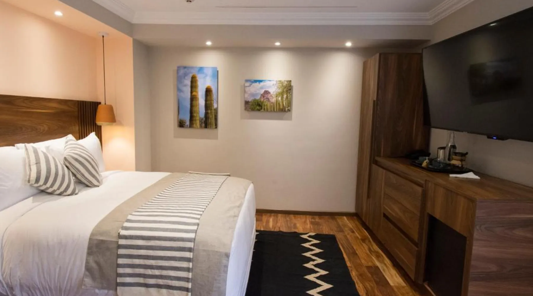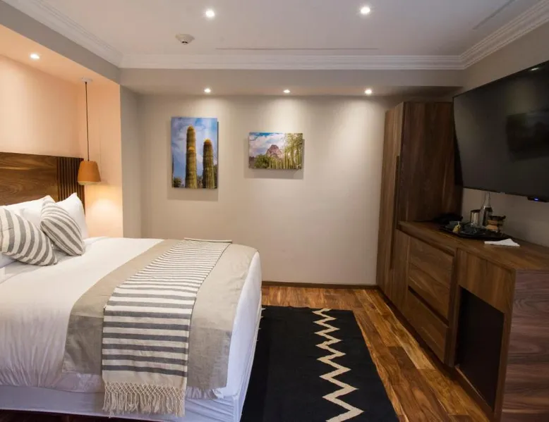 Elegant Accommodations: Casa Santiago Hotel Boutique in Querétaro offers luxurious rooms with air-conditioning, private bathrooms, and modern amenities. Each room includes a work desk, sofa bed, and streaming services. Exceptional Facilities: Guests enjoy a sun terrace, restaurant, bar, and free WiFi. Additional facilities include a elevator, 24-hour front desk, concierge service, and live music. Dining Experience: The family-friendly restaurant serves Mexican cuisine with vegetarian and vegan options. Breakfast includes local specialties and fruits. Dining options include brunch, lunch, dinner, and cocktails. Prime Location: Located 14 mi from Querétaro International Airport, the hotel is a short walk from San Francisco Temple and near attractions such as Josefa Ortiz de Dominguez Auditorium. Highly rated for its convenient location and excellent service. The suite provides a safe deposit box, a sofa, as well as a private bathroom boasting a shower and a hairdryer. The air-conditioned suite offers a flat-screen TV with streaming services, a tea and coffee maker, a seating area and a wardrobe. The unit has 1 bed.