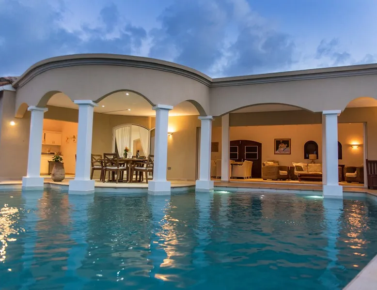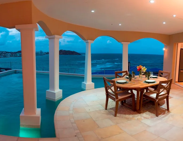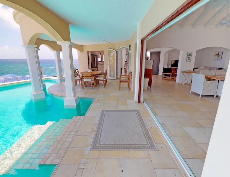Villa, 4 bedrooms, 4. 5 bathrooms, (2-8 people) At Villa Suzanne you can start your day with a breathtaking sunrise, which you can enjoy from the inviting terrace with panoramic views of the crystal clear sea, Dawn Beach and Saint Barths island. During the day you can refresh yourself in the large pool or visit one of the many beautiful beaches of the island.