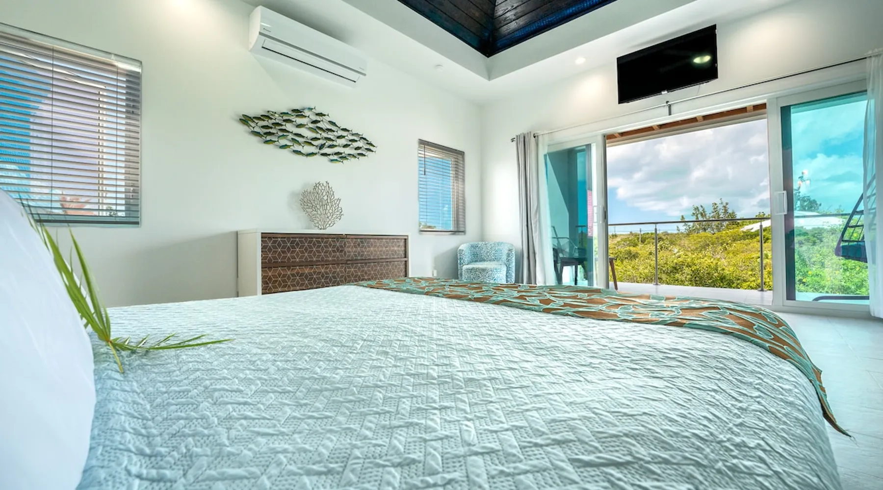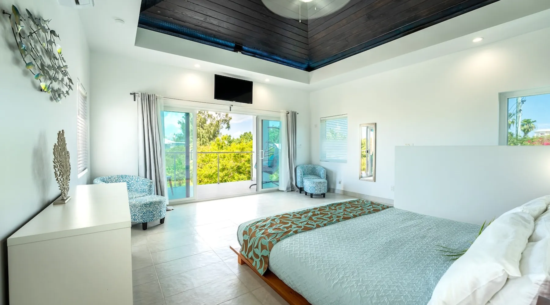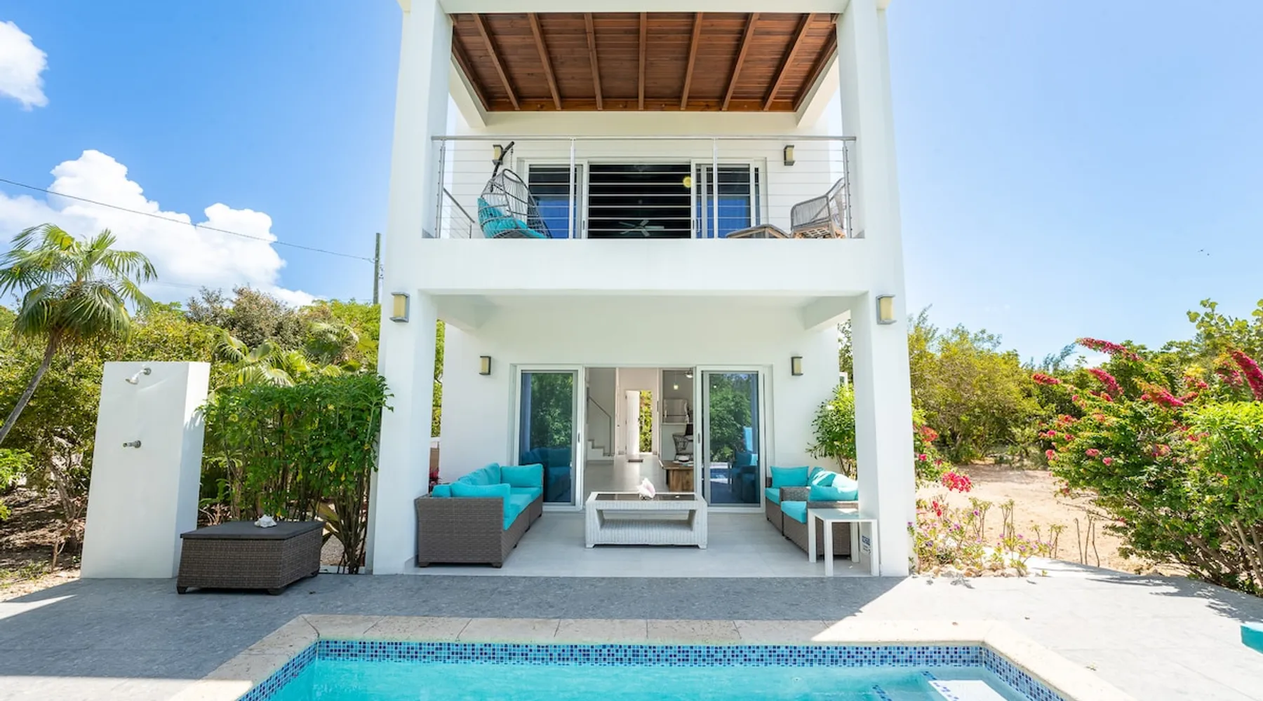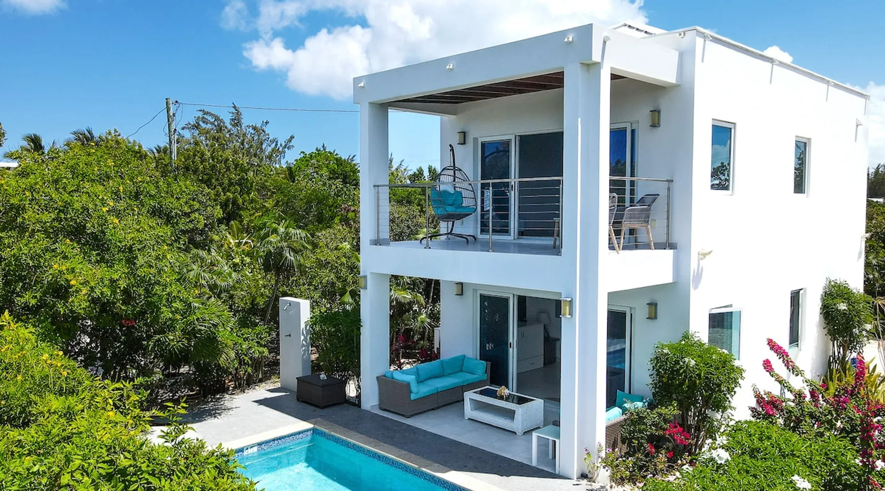 A modern beach villa with its own private pool. Sleeps up to 4 adults in separate rooms. Just 250 steps from the azure blue waters and soft white corals sands of Grace Bay beach. In a quiet off-street location. Perfect for a romantic getaway. With its quiet secluded garden and pool area, many of our guests come to celebrate birthdays, anniversaries, and honeymoons in full privacy. Walk to coral reef snorkeling in 3 mins plus several restaurants. Large grocery supermarket & shops are nearby. The space Gracehaven Villa is a two storey building with covered balconies on both levels. It has a huge main bedroom with king bed. 12-foot sliding doors lead to the spacious covered balcony overlooking the pool. A large bathroom area is complete with open shower and double vanity. Walk-in closet for hanging clothes and storage for ample storage. A full kitchen with range, microwave, dishwasher and fridge freezer is fringed by a breakfast bar and stools. A storage area has the washer / dryer and ironing board and iron is provided in the walk-in closet. The living room features a large sofa and coffee table facing the 60 inch smart TV with access to Netflix and You tube. and more. Sleeping for up to four people is possible with the full size queen Murphy bed in the common area downstairs. 12 foot sliding blue tinted glass doors lead to the covered porch seating areas with a new propane BBQ grill. The pool deck is beyond with four sun loungers for the sun-lovers in your party. A parking area is next to the house with room for several vehicles. Amenties include: FIRST FLOOR LIVING AREA Air conditioning Cooking range Microwave Refridgerator with freezer section Dishwasher Breakfast bar Sofa Cable TV Washer / Dryer Nespresso Coffee maker Kettle Dining table & chairs Queen Murphy bed for additional sleeping – 2 adults Security alarm with motion sensors Inflatable paddleboards available for guest use. BEDROOM & BATHROOM Bedroom 1 – Master suite King size platform bed Twin nightstands En suite bathroom with walk-in shower Double quartz top vanity unit 32 ” Smart TV with Netflix, YouTube etc Private balcony with outdoor furniture Walk-in closet Additional storage closet Washroom. Security alarm with motion sensors FEATURES & AMENITIES Fully equipped kitchen (with breakfast bar) 60″ Smart TV with Netflix etc Cable Television Broadband Wi-Fi Split air conditioning on both levels Ceiling fans Safe OUTDOOR FEATURES Quiet garden area Pool Alfresco dining with seating for 6 Barbecue Terrace with lounge area Sun loungers 2 covered outdoors lounge areas Ample parking for several cars Exclusive private location No passing traffic BEACH GEAR Beach Chairs Sun umbrella Beach bags We have two inflatable stand-up paddleboards which are freely available for guests to use. Guest access All areas, both inside and outside, are exclusively yours to enjoy. Our villa is very private with no overlooking nearby properties. The pool and patio area are surrounded by gardens and natural island plants and trees making it the perfect spot to relax in peace. Parking is available on the lots Other things to note ADDED BENEFITS We have two stand-up paddleboards for guests' use with lifejackets included. Note these are shared between our two villas. You can arrange to use them with our villa concierge. Unlike many other properties, we have a villa concierge who will greet you on arrival and provide a full induction tour so that you can quickly familiarize yourself with how everything works and can get your vacation off to a fast, smooth start. The concierge is always on hand to call on for anything you may need during your stay such as grocery delivery, advice on places of interest to visit, tours, excursions and activities. We are highly commited to ensuring you have the most successful vacation we can provide. To keep your fully informed, our pricing is fully transparent so you can see exactly what you are paying for. No other fees are added other than the mandatory Turks and Caicos government Tourism Tax This is shown as a separate line item that AirBNB displays as 'Occupancy taxes and fees'. This full amount is the tax due to the government tourism department and is an essential part of the islands economy. The listing price shown in the search results includes this amount and the price breakdown shows the specific amount of the tax that we are required to collect. Some listings do not show this separately but we prefer our guests to know the details of the costs. We also show the cleaning cost separately for you. STAFF & SERVICES –Extra cost – (advance notice required) Pre-stock villa with provisions and other pre-ordered items Transfer from airport VIP airport pass to avoid lines Ask us about arranging activities and excursions Location information: Beach Access 250 yards walk to Grace Bay Beach 275 yards to the Coral Gardens Coral Reef 300 yards to Somewhere Restaurant Points of Interest Situated within the Princess Alexandra National Park 1.96 miles to Grace Bay shopping center 4 milesto Turks and Caicos Islands Tennis Club 1.6 miles km to Turtle Cove Marina and restaurants 1.24 miles to the Thursday Fish Fry ( new location) 4.6 miles to Leeward Community 7.6 miles to Sapodilla Bay beach Airport 5.3 miles ( 12 minutes) to Providenciales International Airport (PLS) Not renting a vehicle? Call us to arrange and airport pickup