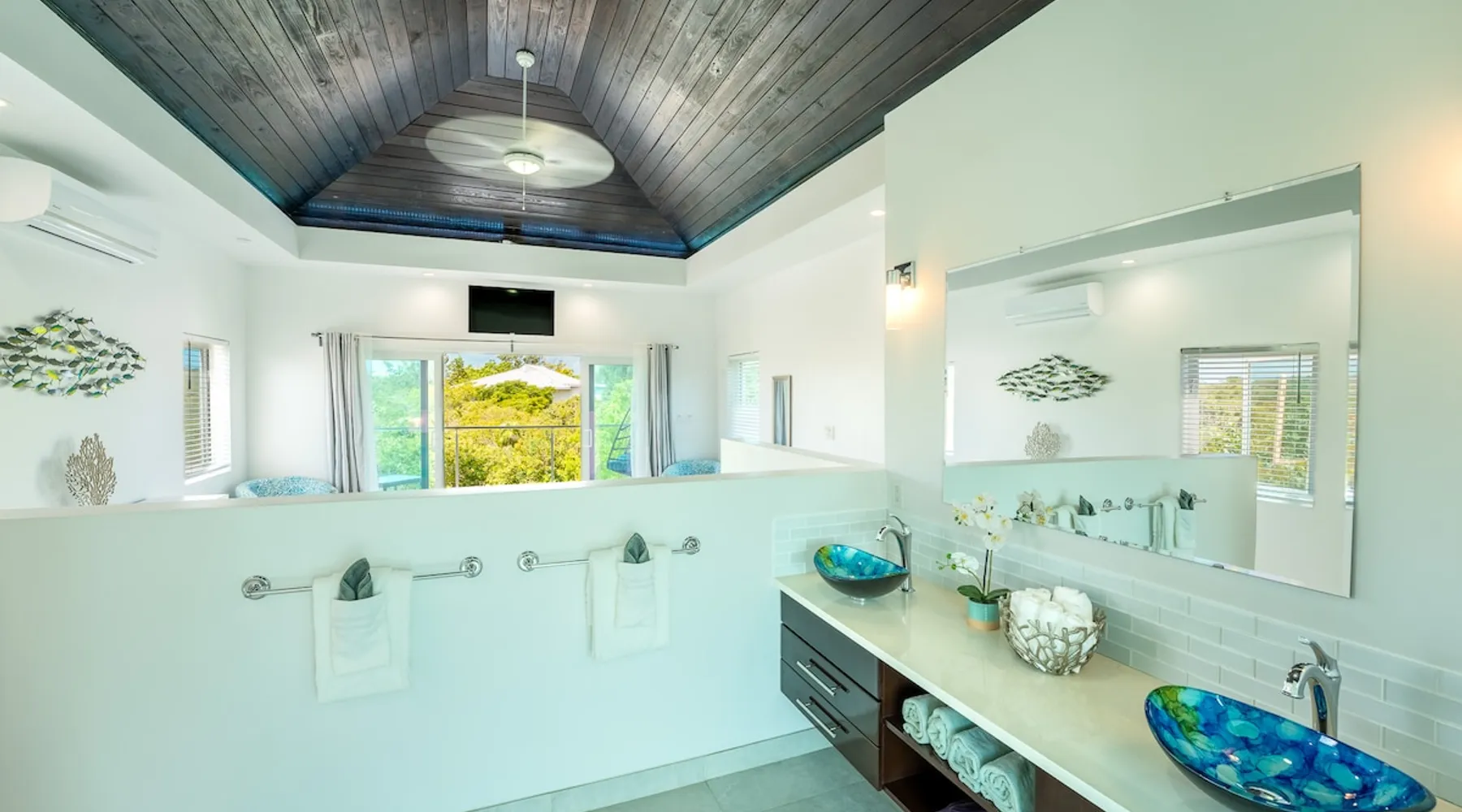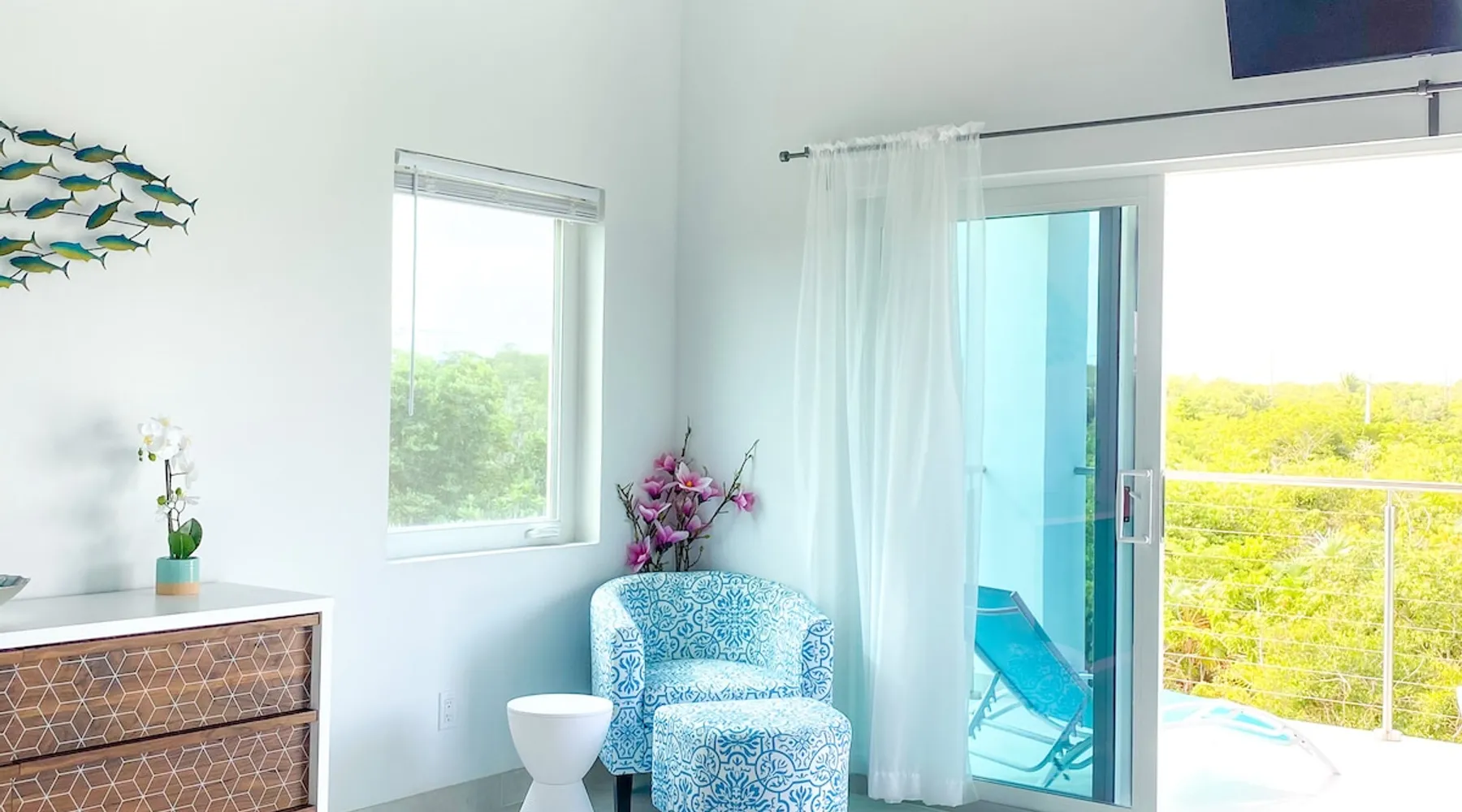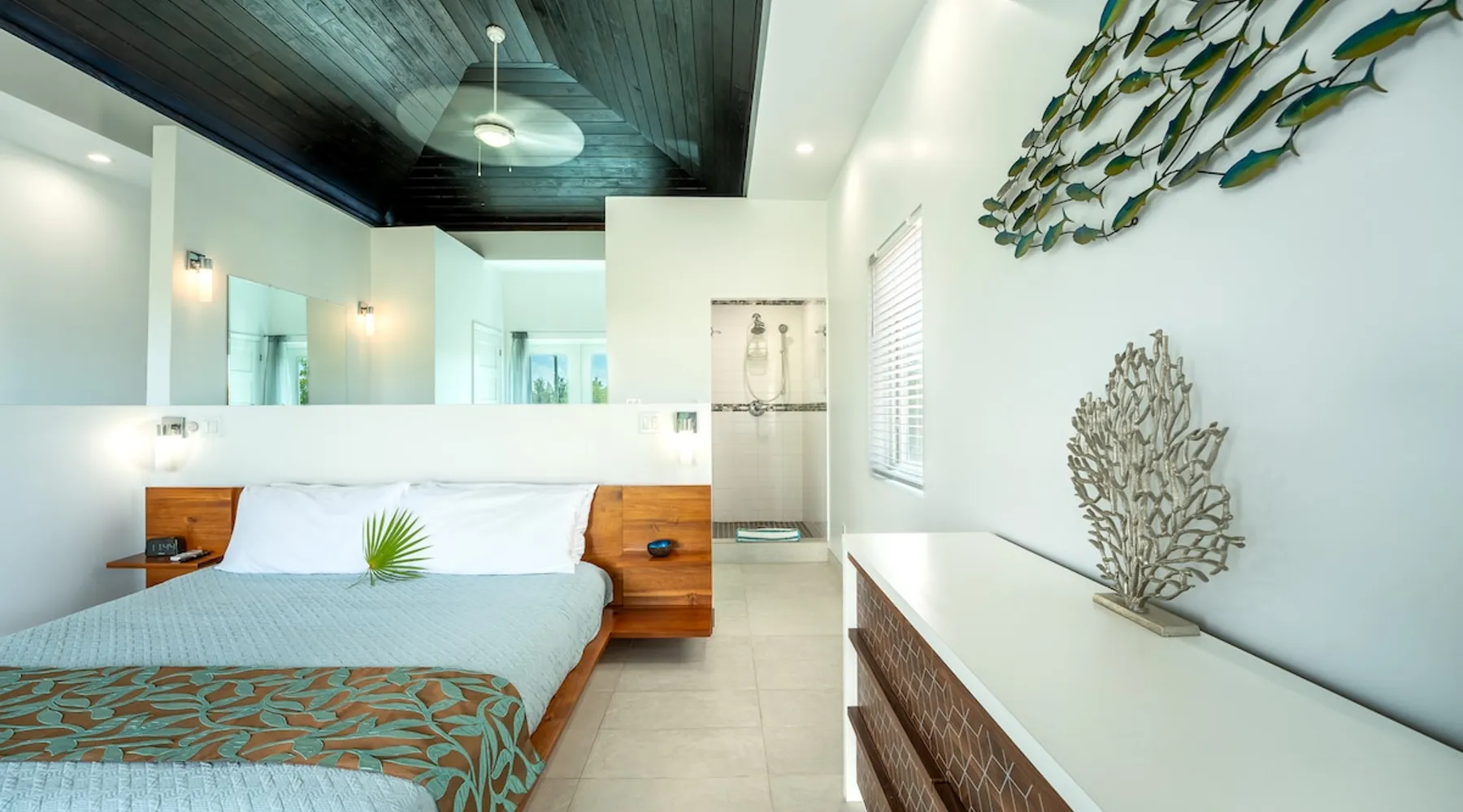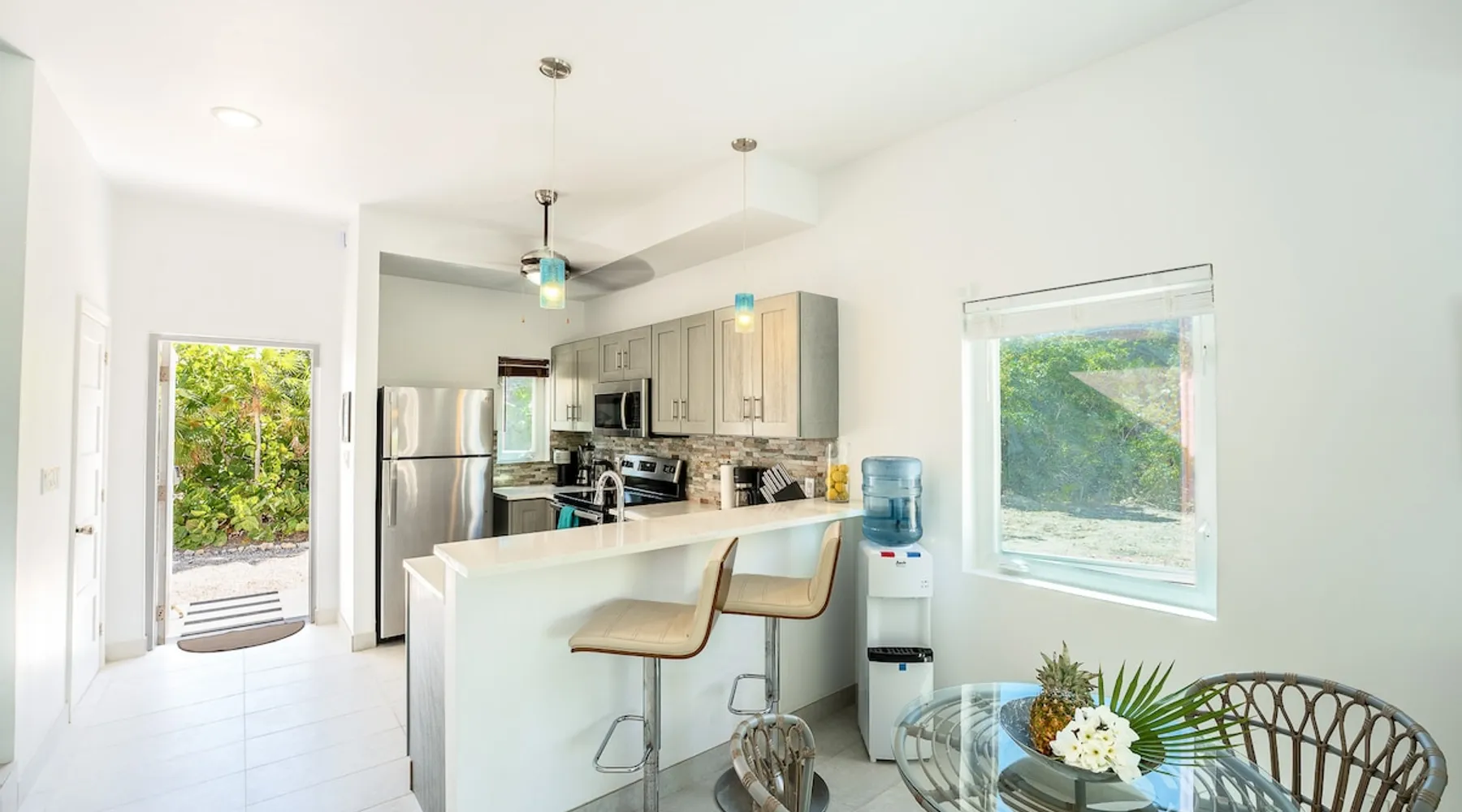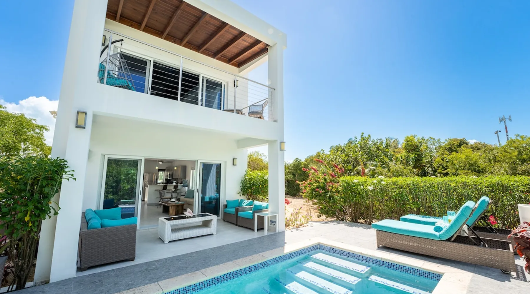 A modern beach villa with its own private pool. Sleeps up to 4 adults in separate rooms. Just 250 steps from the azure blue waters and soft white corals sands of Grace Bay beach. In a quiet off-street location. Perfect for a romantic getaway. With its quiet secluded garden and pool area, many of our guests come to celebrate birthdays, anniversaries, and honeymoons in full privacy. Walk to coral reef snorkeling in 3 mins plus several restaurants. Large grocery supermarket & shops are nearby. The space Gracehaven Villa is a two storey building with covered balconies on both levels. It has a huge main bedroom with king bed. 12-foot sliding doors lead to the spacious covered balcony overlooking the pool. A large bathroom area is complete with open shower and double vanity. Walk-in closet for hanging clothes and storage for ample storage. A full kitchen with range, microwave, dishwasher and fridge freezer is fringed by a breakfast bar and stools. A storage area has the washer / dryer and ironing board and iron is provided in the walk-in closet. The living room features a large sofa and coffee table facing the 60 inch smart TV with access to Netflix and You tube. and more. Sleeping for up to four people is possible with the full size queen Murphy bed in the common area downstairs. 12 foot sliding blue tinted glass doors lead to the covered porch seating areas with a new propane BBQ grill. The pool deck is beyond with four sun loungers for the sun-lovers in your party. A parking area is next to the house with room for several vehicles. Amenties include: FIRST FLOOR LIVING AREA Air conditioning Cooking range Microwave Refridgerator with freezer section Dishwasher Breakfast bar Sofa Cable TV Washer / Dryer Nespresso Coffee maker Kettle Dining table & chairs Queen Murphy bed for additional sleeping – 2 adults Security alarm with motion sensors Inflatable paddleboards available for guest use. BEDROOM & BATHROOM Bedroom 1 – Master suite King size platform bed Twin nightstands En suite bathroom with walk-in shower Double quartz top vanity unit 32 ” Smart TV with Netflix, YouTube etc Private balcony with outdoor furniture Walk-in closet Additional storage closet Washroom. Security alarm with motion sensors FEATURES & AMENITIES Fully equipped kitchen (with breakfast bar) 60″ Smart TV with Netflix etc Cable Television Broadband Wi-Fi Split air conditioning on both levels Ceiling fans Safe OUTDOOR FEATURES Quiet garden area Pool Alfresco dining with seating for 6 Barbecue Terrace with lounge area Sun loungers 2 covered outdoors lounge areas Ample parking for several cars Exclusive private location No passing traffic BEACH GEAR Beach Chairs Sun umbrella Beach bags We have two inflatable stand-up paddleboards which are freely available for guests to use. Guest access All areas, both inside and outside, are exclusively yours to enjoy. Our villa is very private with no overlooking nearby properties. The pool and patio area are surrounded by gardens and natural island plants and trees making it the perfect spot to relax in peace. Parking is available on the lots Other things to note ADDED BENEFITS We have two stand-up paddleboards for guests' use with lifejackets included. Note these are shared between our two villas. You can arrange to use them with our villa concierge. Unlike many other properties, we have a villa concierge who will greet you on arrival and provide a full induction tour so that you can quickly familiarize yourself with how everything works and can get your vacation off to a fast, smooth start. The concierge is always on hand to call on for anything you may need during your stay such as grocery delivery, advice on places of interest to visit, tours, excursions and activities. We are highly commited to ensuring you have the most successful vacation we can provide. To keep your fully informed, our pricing is fully transparent so you can see exactly what you are paying for. No other fees are added other than the mandatory Turks and Caicos government Tourism Tax This is shown as a separate line item that AirBNB displays as 'Occupancy taxes and fees'. This full amount is the tax due to the government tourism department and is an essential part of the islands economy. The listing price shown in the search results includes this amount and the price breakdown shows the specific amount of the tax that we are required to collect. Some listings do not show this separately but we prefer our guests to know the details of the costs. We also show the cleaning cost separately for you. STAFF & SERVICES –Extra cost – (advance notice required) Pre-stock villa with provisions and other pre-ordered items Transfer from airport VIP airport pass to avoid lines Ask us about arranging activities and excursions Location information: Beach Access 250 yards walk to Grace Bay Beach 275 yards to the Coral Gardens Coral Reef 300 yards to Somewhere Restaurant Points of Interest Situated within the Princess Alexandra National Park 1.96 miles to Grace Bay shopping center 4 milesto Turks and Caicos Islands Tennis Club 1.6 miles km to Turtle Cove Marina and restaurants 1.24 miles to the Thursday Fish Fry ( new location) 4.6 miles to Leeward Community 7.6 miles to Sapodilla Bay beach Airport 5.3 miles ( 12 minutes) to Providenciales International Airport (PLS) Not renting a vehicle? Call us to arrange and airport pickup