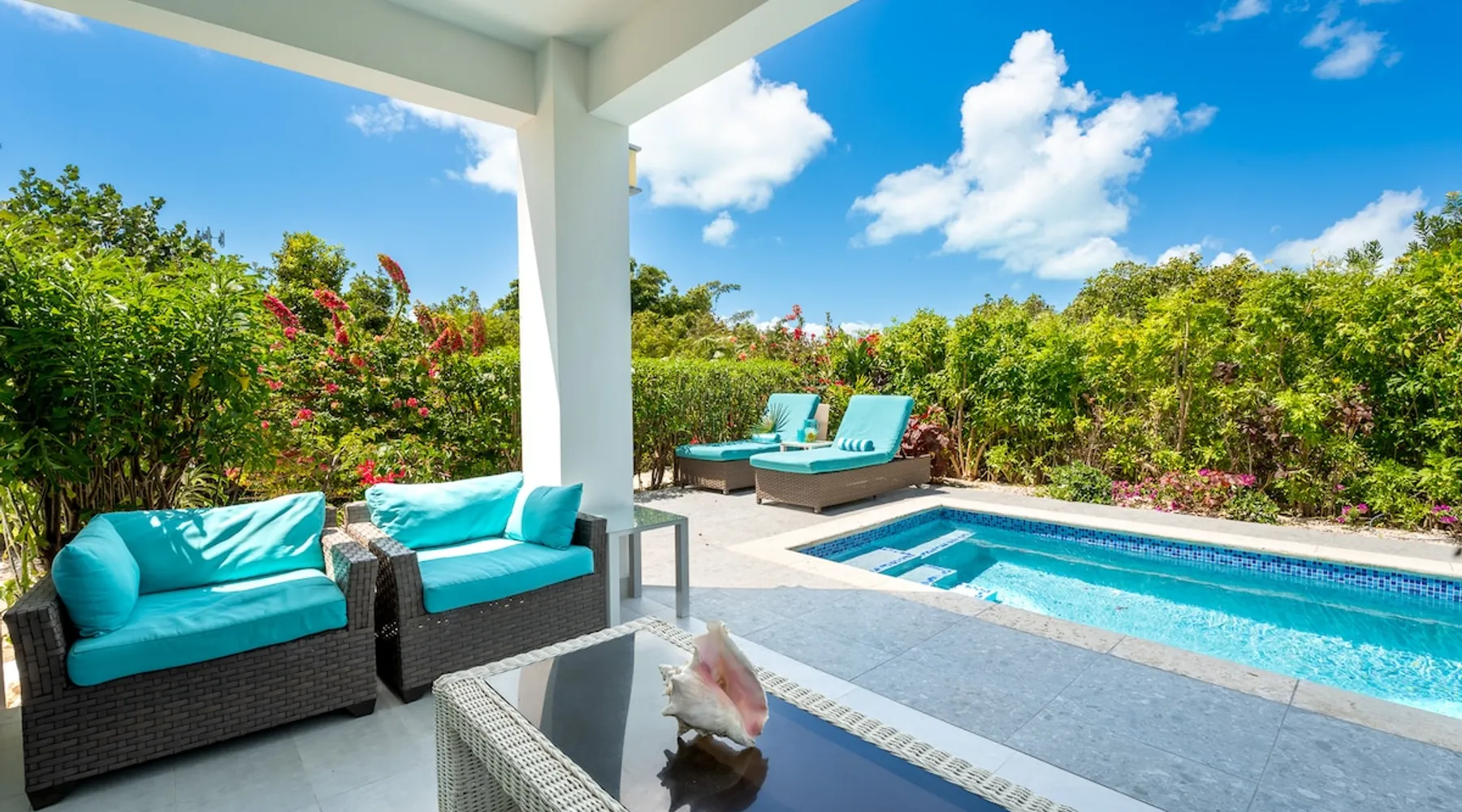 Modern Grace Bay villa with Pool 3 mins walk to Beach & Reef Sleeps 4 ,Gardens