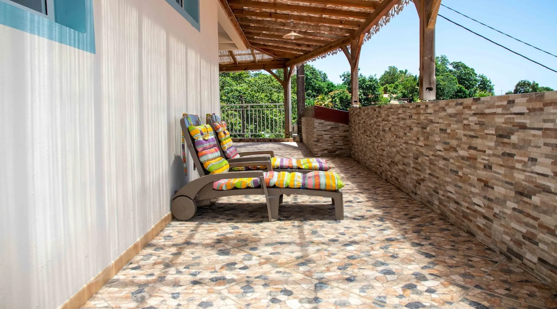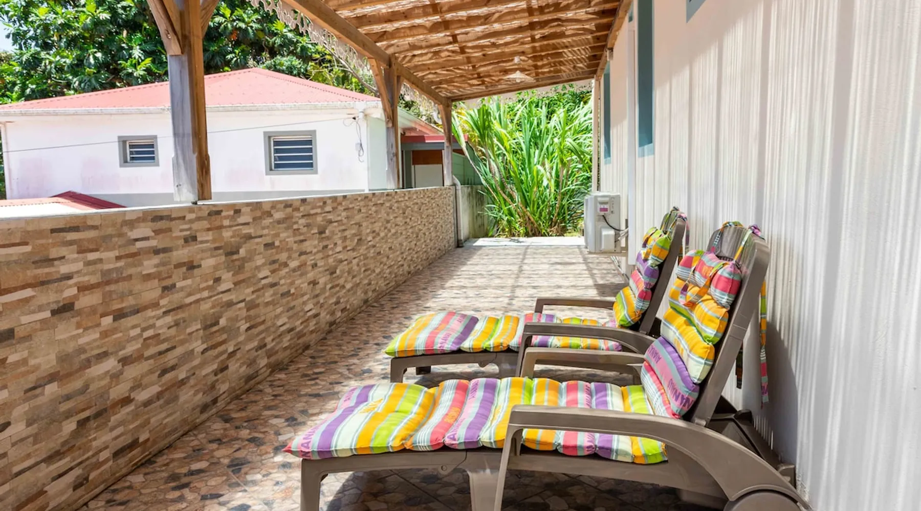 You will be charmed by this beautiful modern and peaceful apartment at the bottom of the villa with panoramic views of the countryside and the bay of Sainte-Marie... The space This bas de villa of 150m2 is composed of a large living room of 21m2 with flat screen TV, an equipped kitchen open to the living room (electric oven, hob, fridge, microwave,...), 2 air-conditioned bedrooms with en-suite bathrooms. The exterior has a large covered terrace with stunning views of the Bay of Sainte-Marie ! MISCELLANEOUS: Private access and parking. High speed internet, free wifi, TNT. Sofa bed 140 in the living room for 2 additional people. Household linen is provided. Cleaning on departure included. Guest access The apartment is easily accessible from the village of Sainte-Marie. You have a private entrance and parking place.