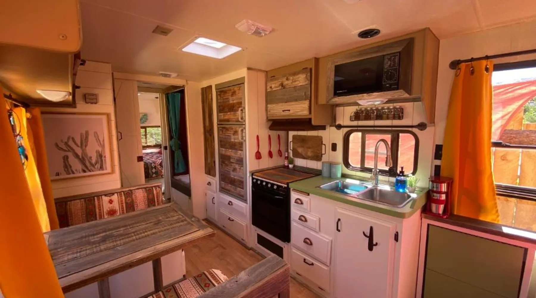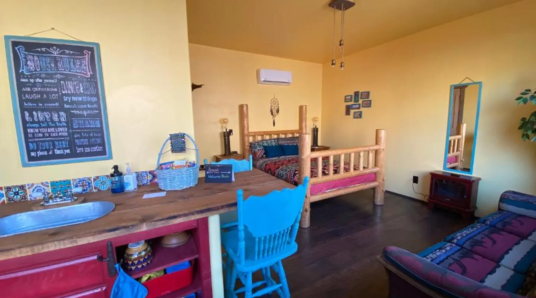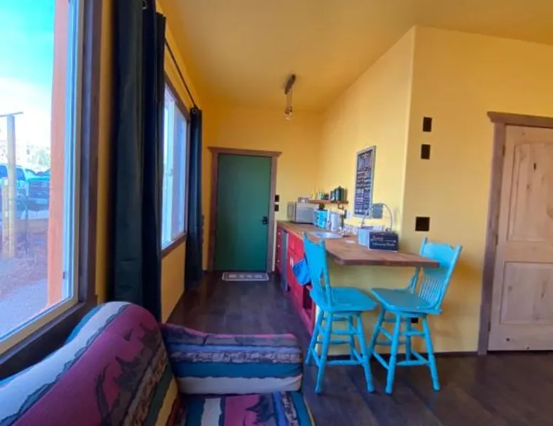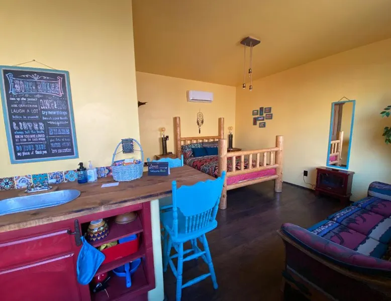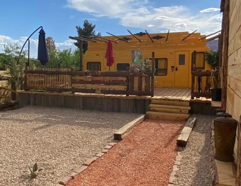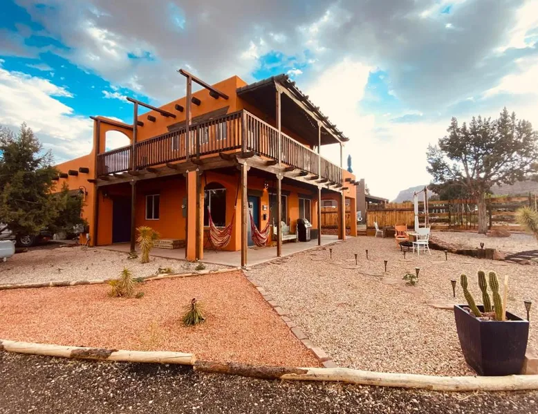 Comfortable Accommodations: Oranch House, Studio & Wilderness in Kanab offers a spacious apartment with a sun terrace, garden, and free WiFi. Guests enjoy air-conditioning, a kitchenette, and a private bathroom with garden and mountain views. Convenient Facilities: The property features a private check-in and check-out service, an outdoor fireplace, and a 24-hour front desk. Additional amenities include free on-site parking, bicycle parking, and barbecue facilities. Local Attractions: Located 76 mi from Page Municipal Airport, the apartment is near attractions such as Zion National Park and Bryce Canyon. Activities available include skiing and cycling. Guest Satisfaction: Highly rated by guests for its friendly host, convenient location, and room cleanliness. Featuring a private entrance, this air-conditioned apartment consists of 1 living room, 1 separate bedroom and 1 bathroom with a shower and a hairdryer. Guests will find a stovetop, a refrigerator, kitchenware and a microwave in the well-fitted kitchenette. The apartment also offers a barbecue. The unit features a tea and coffee maker, garden views, a terrace and chocolate is provided for guests. The unit offers 2 beds.