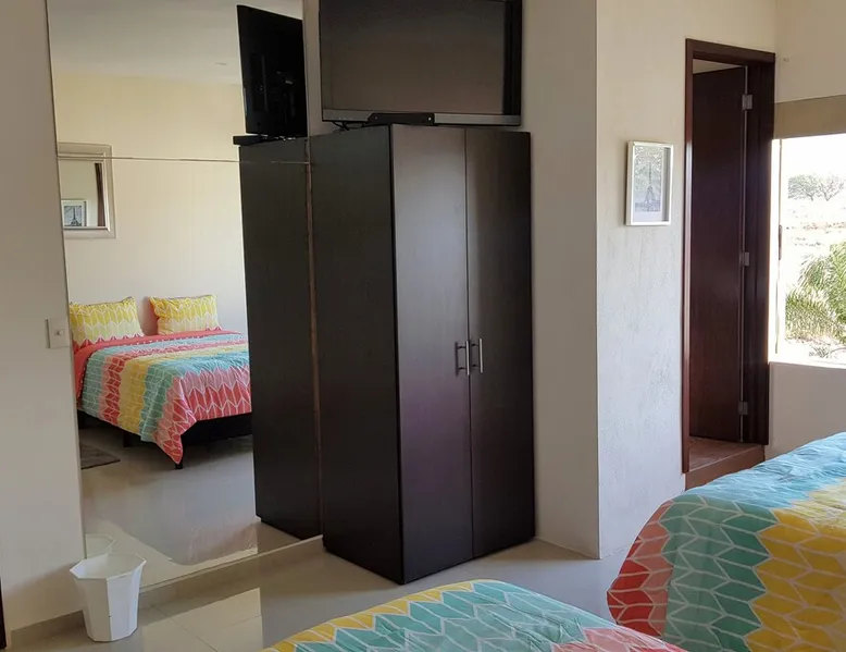 NO FULL HOUSE RENTAL. All the third floor in beautiful boutique hotel with beautiful views of the volcano, 6 luxury rooms,with private bathroom and common areas: living room,dining room, fully equipped kitchen (stove,microwave, 26 "refrigerator,coffee maker,utensils,crockery,etc.), terrace , outdoor bed, canteen bar,etc. You will not find one like it in the area, near Comala, 15 min from the center of Colima(and 4th cooler), 40 min from the beach, 60 min from Manzanillo. The space NO EVENTS ARE ALLOWED. Beautiful Suite on the third floor with more than 60 m², with spectacular private terrace of 100 m2, private grill, spectacular views of the city of Colima, the volcanoes and the Sierra del Manantlan, as well as the pool, with a private room, private dining room, private refrigerator, private coffee machine, 2 screens: TV with Telecable in the living room and bedroom, for up to 4 people, independent of all shared services... the best views of Colima. You wish you could live there forever. Guest access NO GUESTS. Comunal there is a very spacious living room with leather seats, dining room 8 people marble, fully equipped kitchen, terrace ,.. Great Luxury at your fingertips. Other things to note We look forward to hosting you. It is important to remember that no guests are allowed... only the guests registered, so that your stay is one of rest and tranquility. Welcome