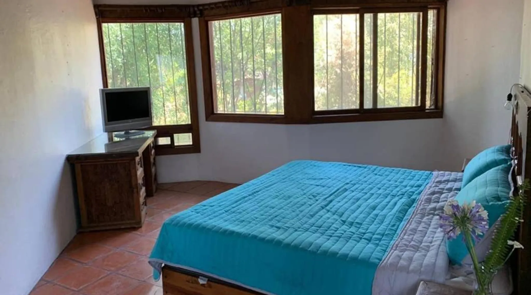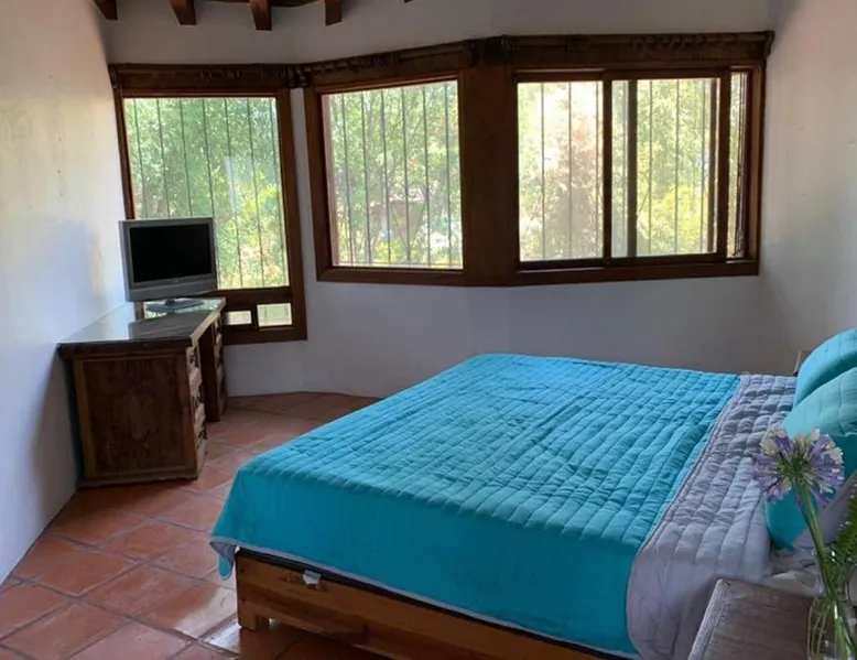 Elegant Holiday Home in Valle de Bravo: Casa BamBú VdB offers a serene retreat in Valle de Bravo, Mexico. Guests enjoy a sun terrace, lush garden, and free WiFi throughout the property. Comfortable Living Spaces: The holiday home features three bedrooms and four bathrooms, including a spacious living room with a fireplace. Family rooms and a fully equipped kitchen provide ample space for relaxation and meals. Outdoor Amenities: An outdoor seating area, picnic spot, and barbecue facilities enhance the guest experience. Free on-site private parking is available, and the property is pet-friendly. Local Attractions: Cascadas Velo de Novia is located 5.6 mi away, offering scenic waterfalls. Lic. Adolfo López Mateos International Airport is 49 mi from the property. Activities such as fishing, skiing, and cycling are nearby. Guests will have a special experience as this holiday home features a fireplace. Featuring a private entrance, this holiday home is consisted of of 1 living room, 3 separate bedrooms and 4 bathrooms with a walk-in shower and a bath. Guests will find a stovetop, a refrigerator, kitchenware and an oven in the kitchen. The holiday home also has a barbecue. Boasting a terrace with lake views, this holiday home also offers a tea and coffee maker and a flat-screen TV with streaming services. The unit offers 5 beds.