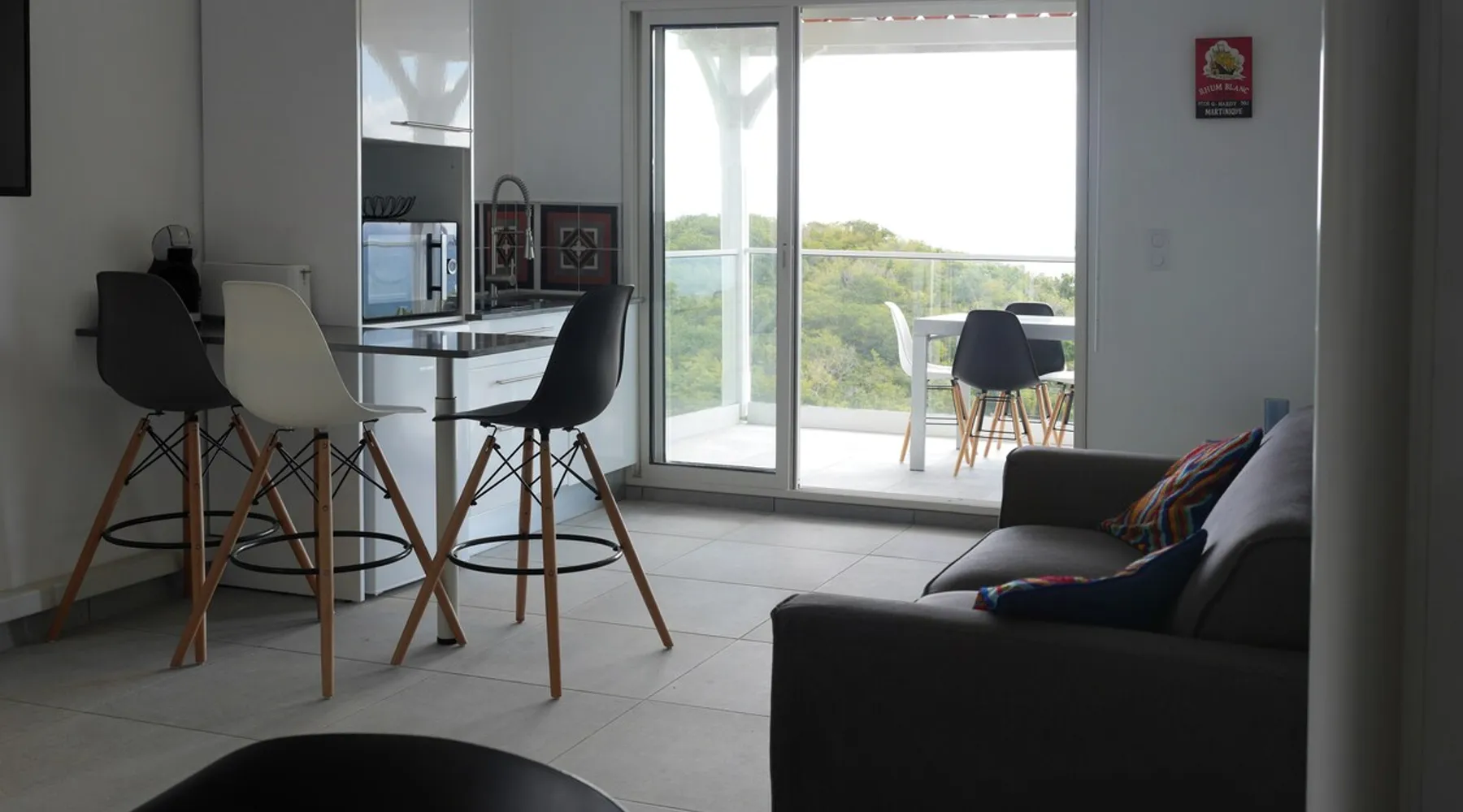Nestled on the heights of Sainte-Luce, the Eden residence offers 6 luxury apartments (about forty steps are to go down to get to the apartments). Curaçao apartment has all the comforts for a memorable stay. 1 bed 140/190, 2 single futons. Total 4 people. Free crib upon request. Welcome kit: A bottle of water, sponge, dish soap, garbage bag, tea pods and coffee, shower gel. The space Unique location in a corner of paradise, about forty stairs are to go down to reach a real dream gazebo, with only the green horizon of the cliffs and hills and especially the shades of blue of the sky and the ocean... Each apartment has a terrace with sea views, air conditioning, a fridge, an induction stove, a microwave/multifunction oven, a toaster, an espresso/tea/chocolate machine (dolce gusto), a small electric grill, bath towels. Guest access To make your stay even more pleasant, we offer different services (additional charge): - wellness, sonotherapy and massage at home - catering delivery - Creole cooking courses at home - home check-in - brunch delivery - advice and connections with different service providers for your outings, activities and excursions.