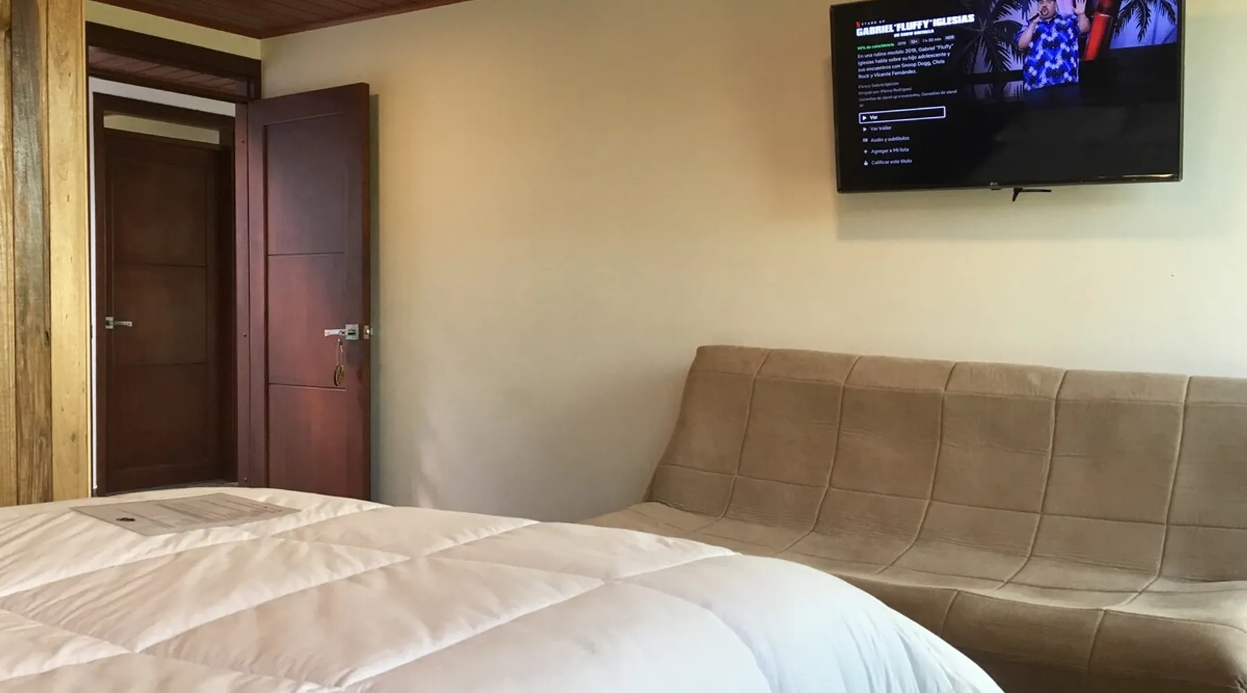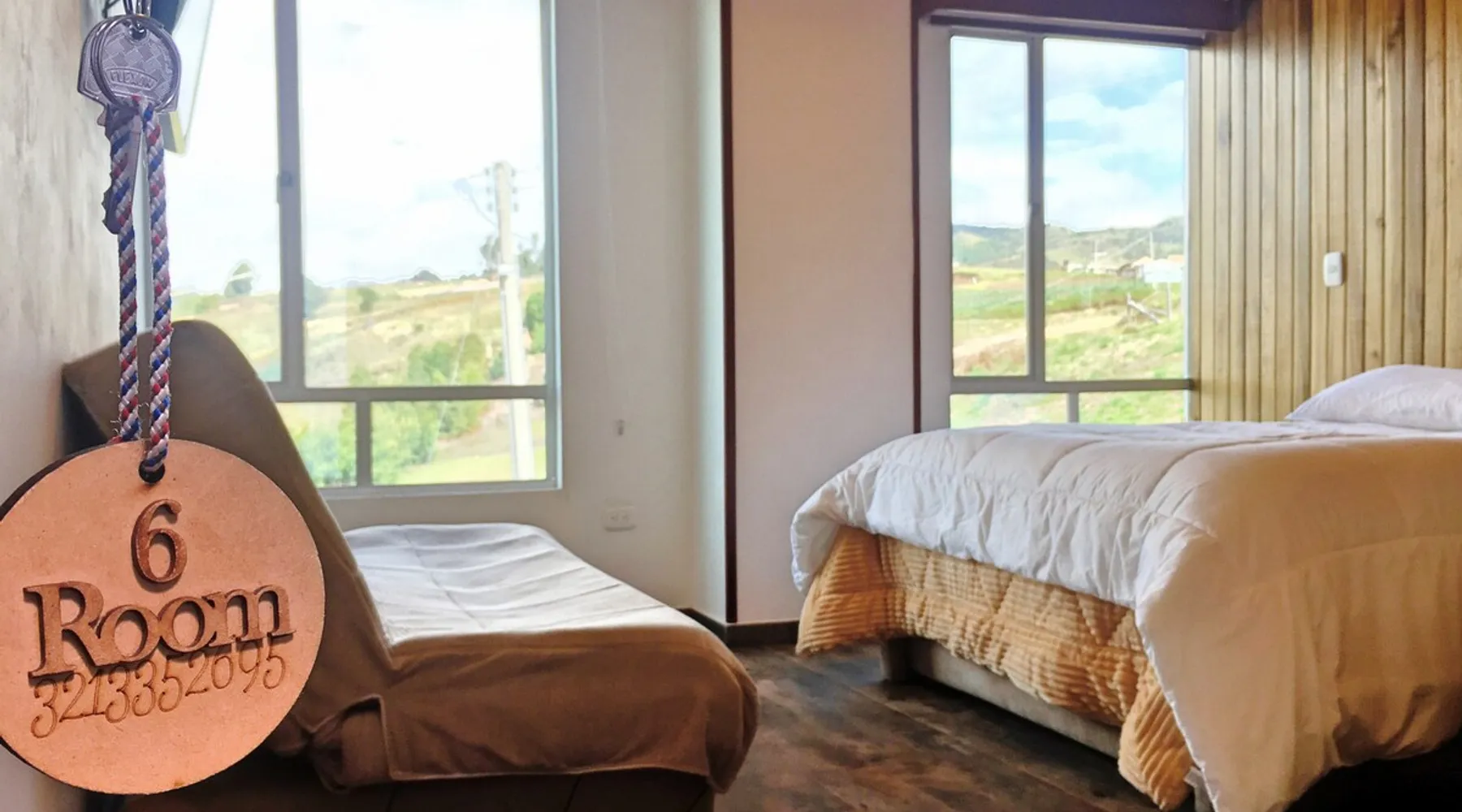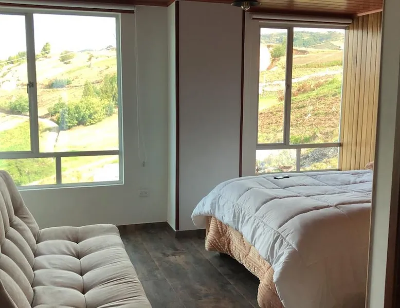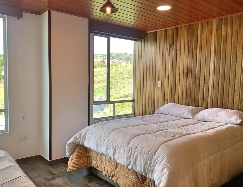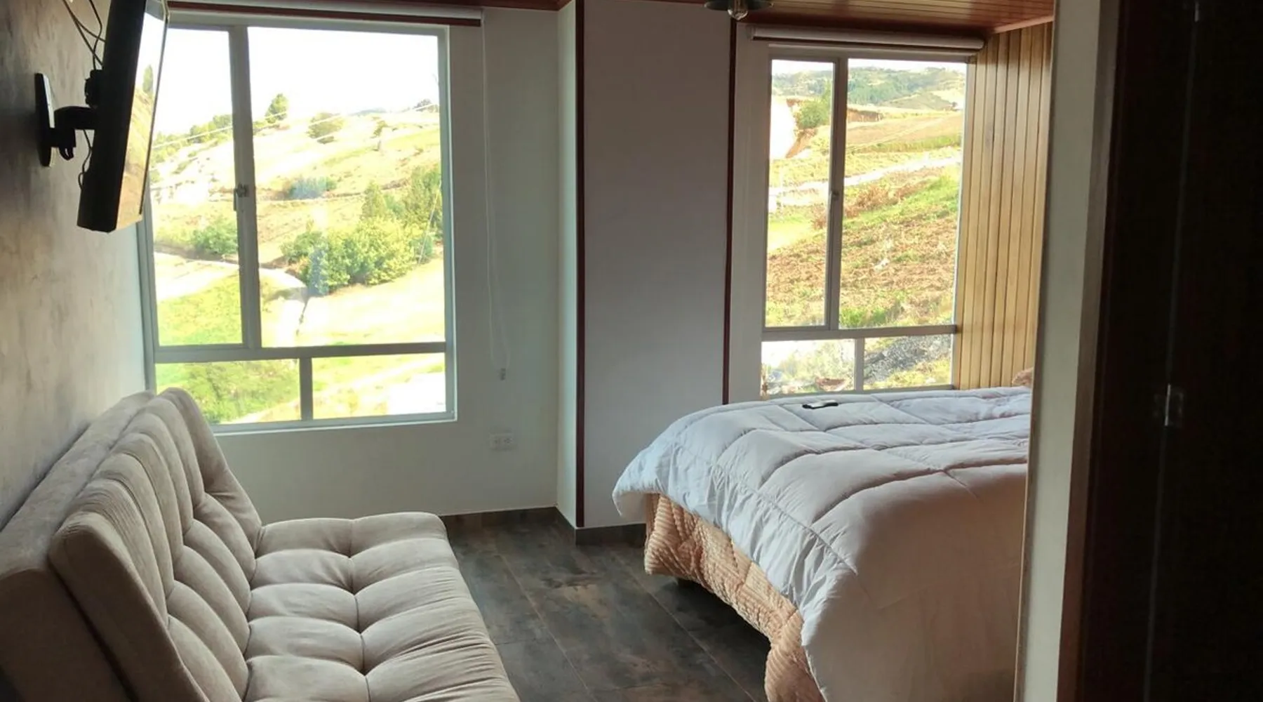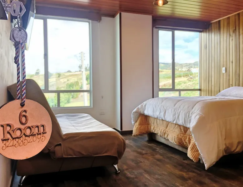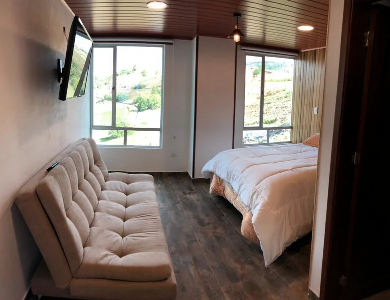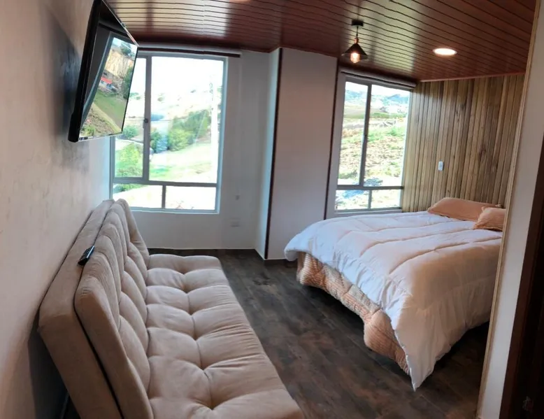 The space Double rooms with sofa bed and shared living room (view of Playa Blanca - Lago de Tota) 15 sqm rooms for a comfortable and cozy accommodation, private bathroom, Wi-Fi and Smart TV (Netflix included). We are Pet friendly, your pet is welcome. Ideal for spending time as a couple, family and friends. Registration Details 122357