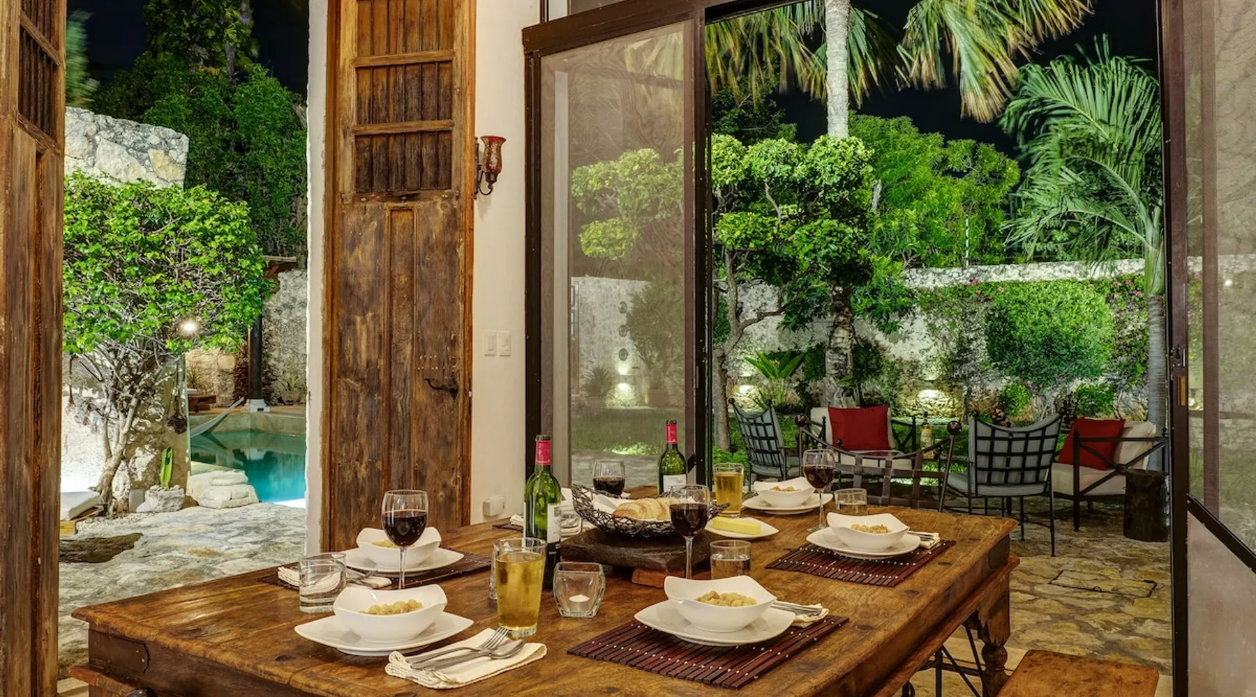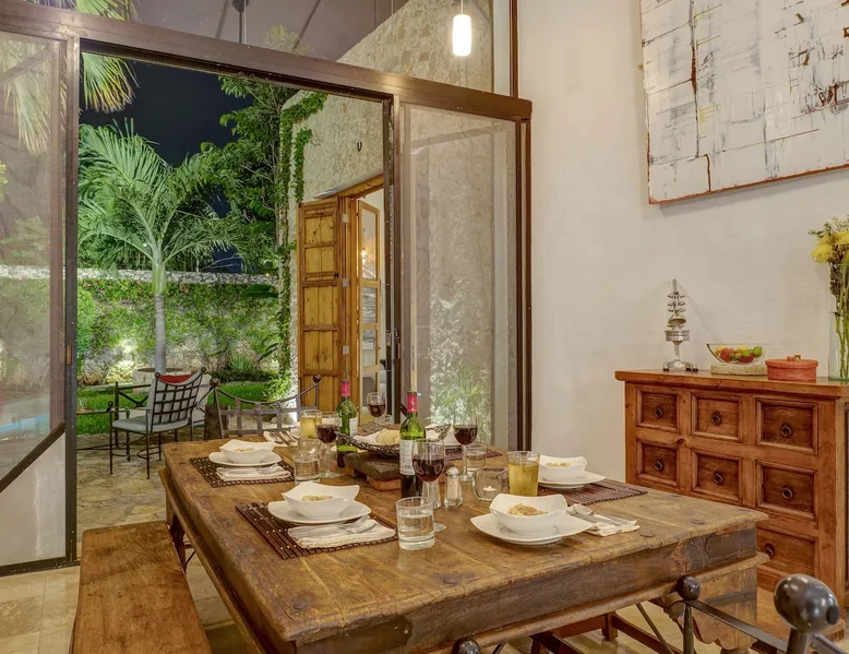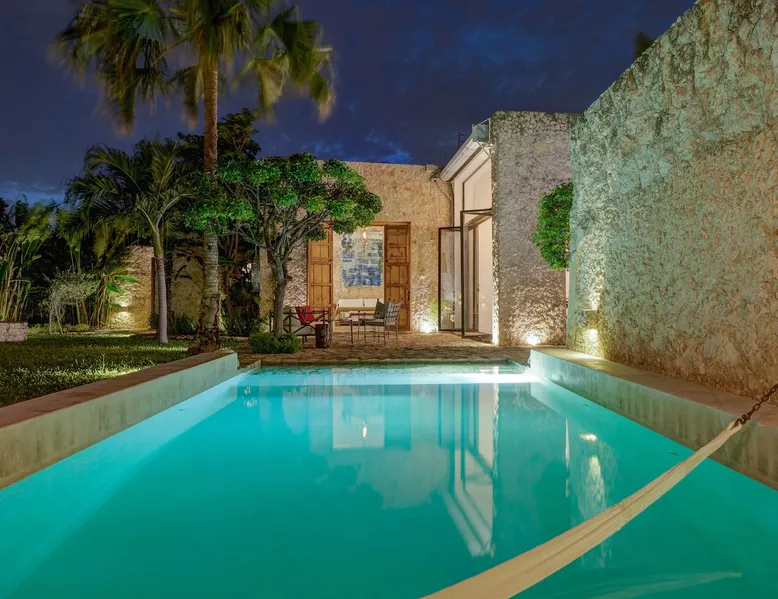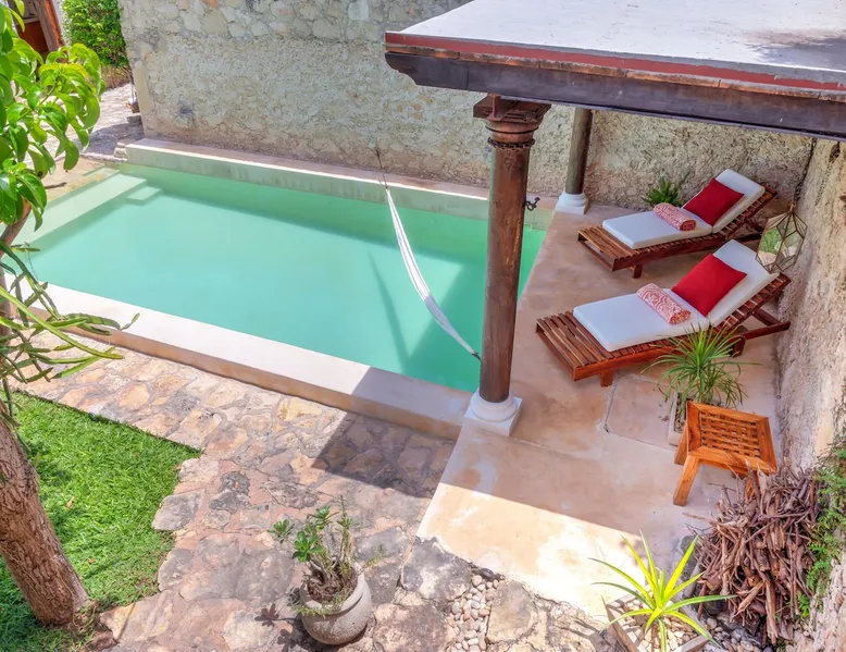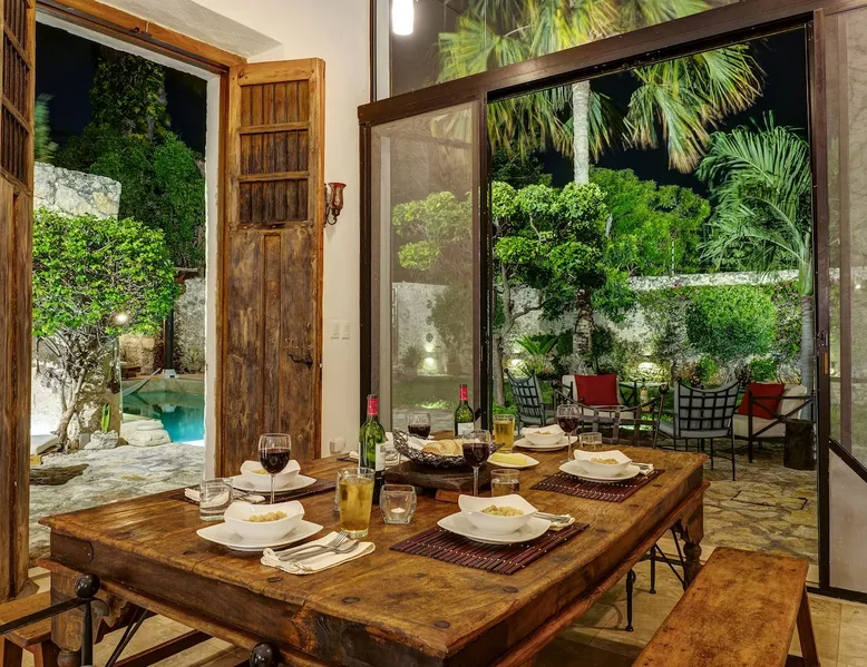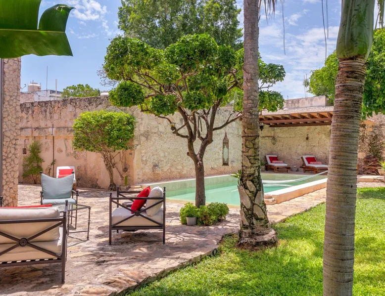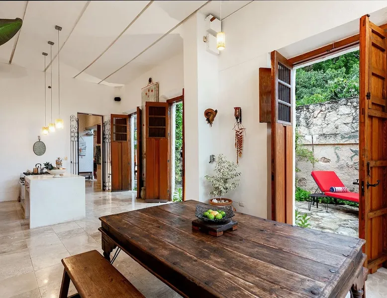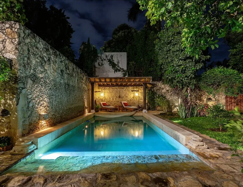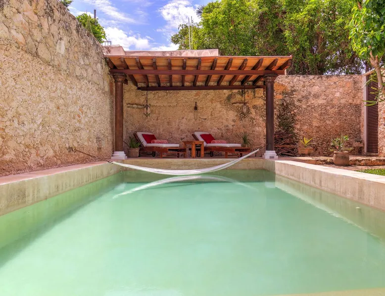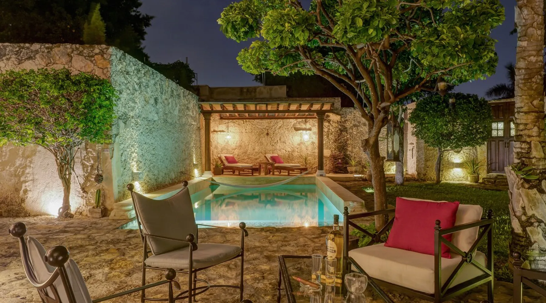 As seen on Airbnb commercial for Central and Latin America, 3 Bed, 3 Bath, Hacienda Style, Private Rental Home With Pool In Centro Historico, Merida, Yucatan, Mexico. It has a Huge Pool, Massive Garden, Fruit Trees, Palms, Cabana, 3 Bedroom, 3 Bathroom, Stainless Kitchen with All Modern Appliances, Private Theater, Luxury Amenities, and just 4 blocks from Santiago Park, Shops, Cafe's, Restaurants and Tourist Destinations. The space Complete Privacy at it's best! Guest access The Entire Property is Yours to Enjoy! Other things to note Casablanca Living is located in the Historic Center of Merida, Yucatan, Mexico. A short 4 block walk will bring you to Santiago Park, where many local restaurants and shops are available and a grocery store. Around the corner from the house is a small convenience store and a bakery and most of the local tourist attractions are a short walk or easy cab ride away.