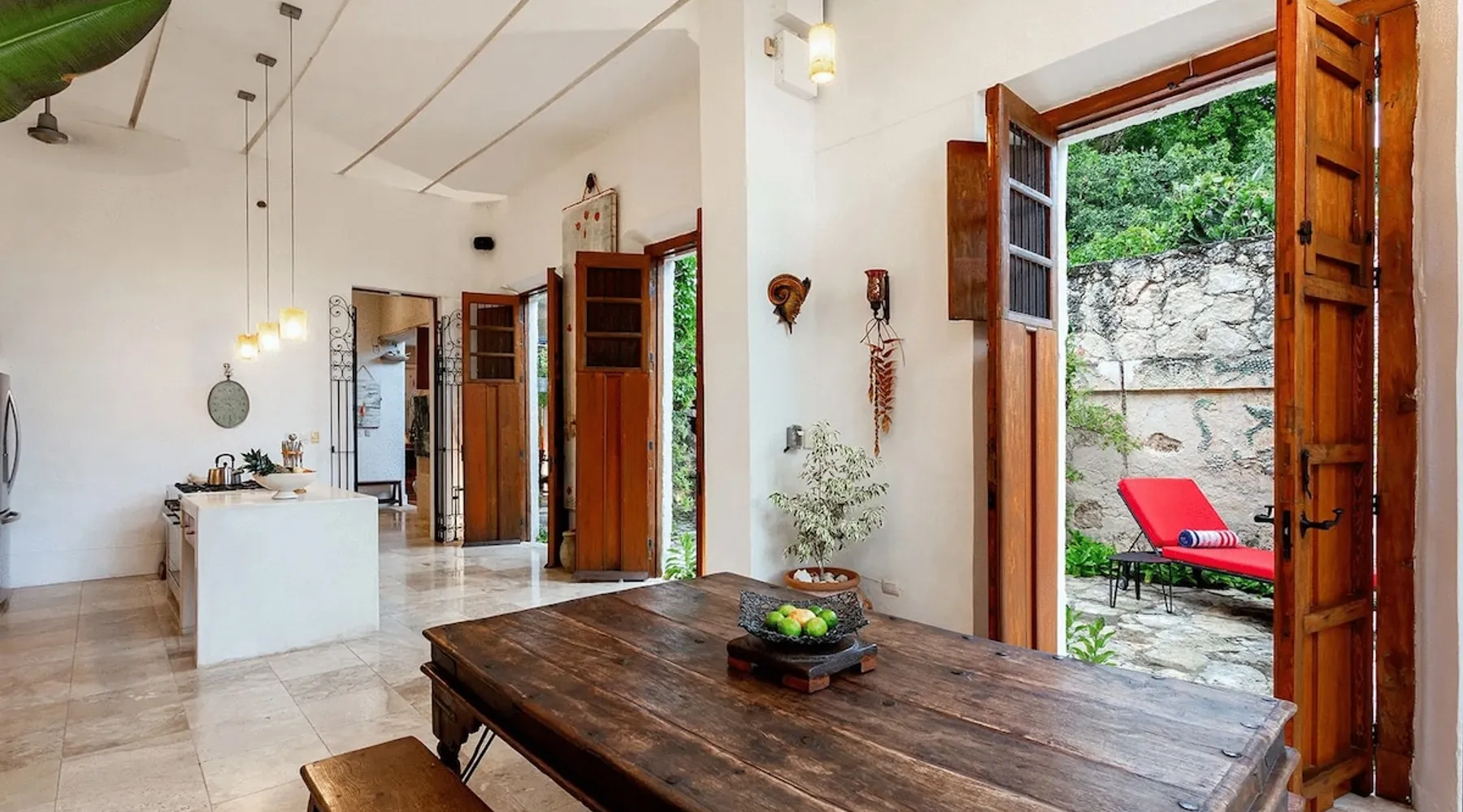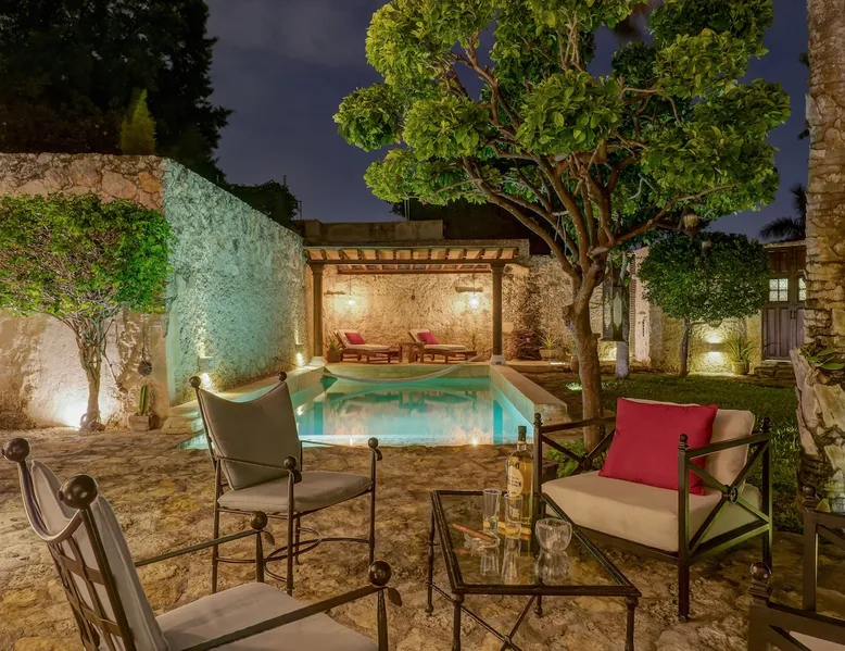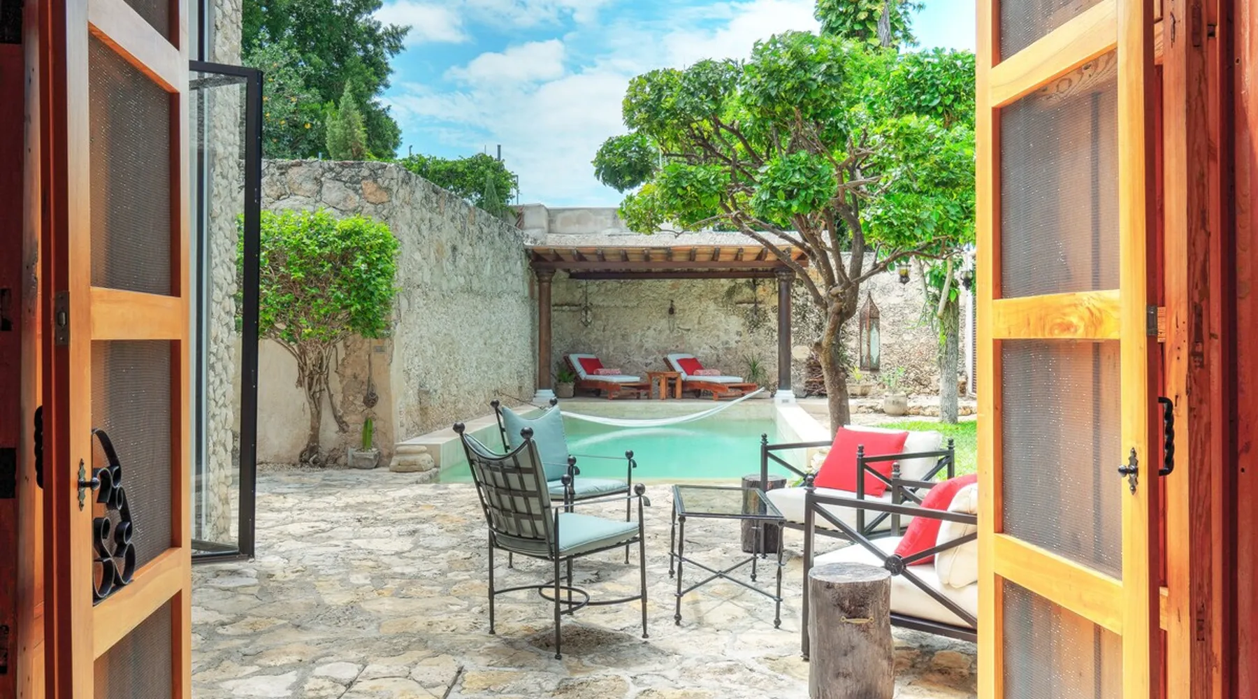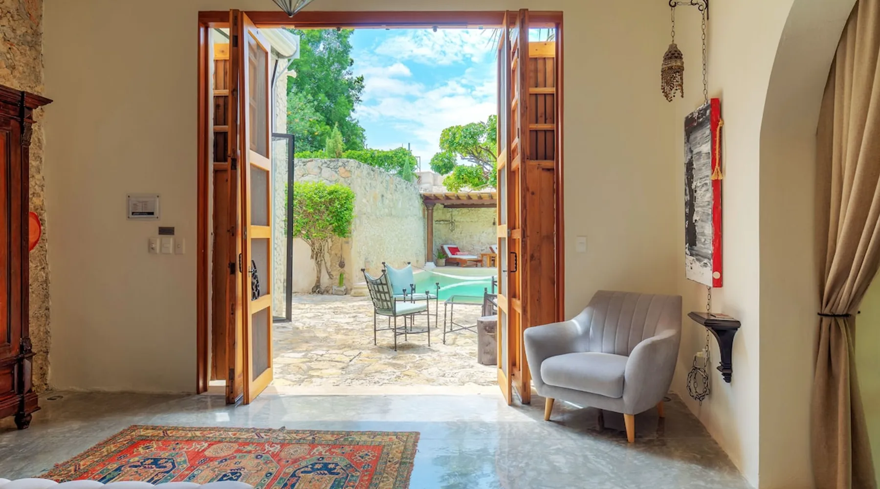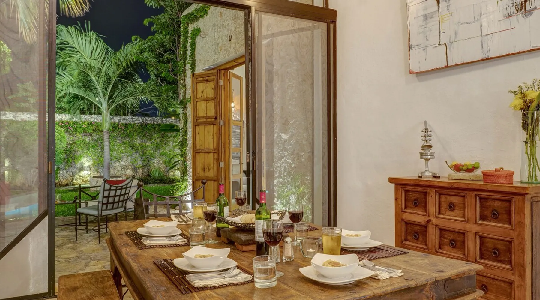 As seen on Airbnb commercial for Central and Latin America, 3 Bed, 3 Bath, Hacienda Style, Private Rental Home With Pool In Centro Historico, Merida, Yucatan, Mexico. It has a Huge Pool, Massive Garden, Fruit Trees, Palms, Cabana, 3 Bedroom, 3 Bathroom, Stainless Kitchen with All Modern Appliances, Private Theater, Luxury Amenities, and just 4 blocks from Santiago Park, Shops, Cafe's, Restaurants and Tourist Destinations. The space Complete Privacy at it's best! Guest access The Entire Property is Yours to Enjoy! Other things to note Casablanca Living is located in the Historic Center of Merida, Yucatan, Mexico. A short 4 block walk will bring you to Santiago Park, where many local restaurants and shops are available and a grocery store. Around the corner from the house is a small convenience store and a bakery and most of the local tourist attractions are a short walk or easy cab ride away.