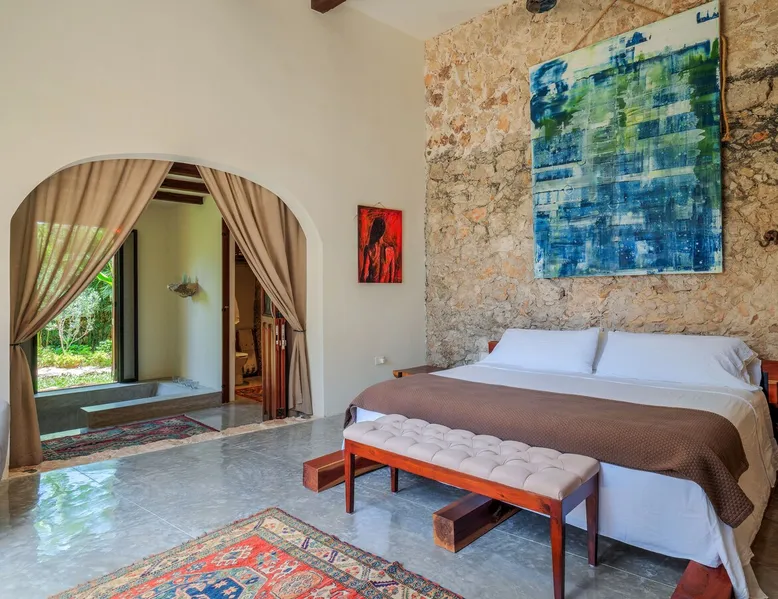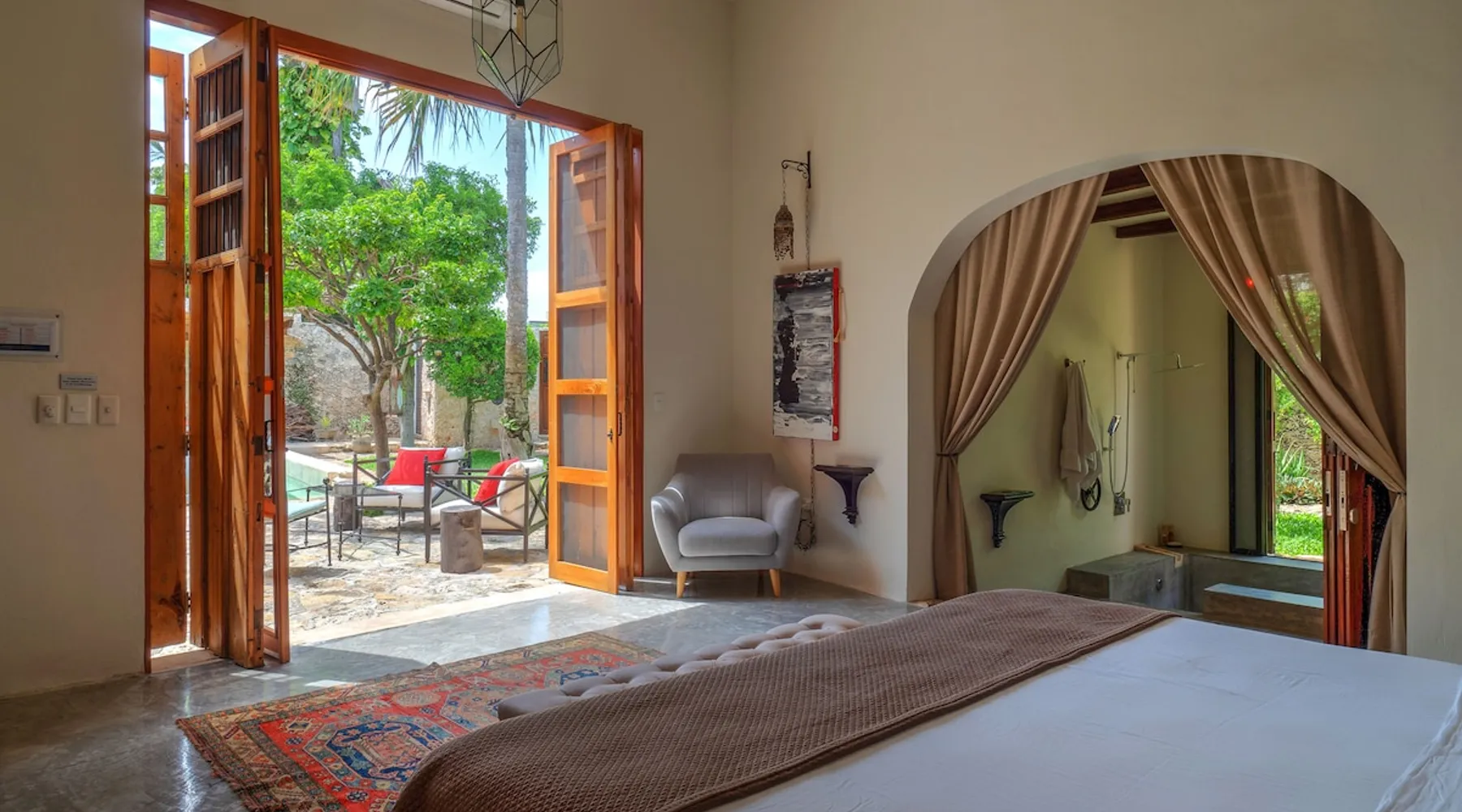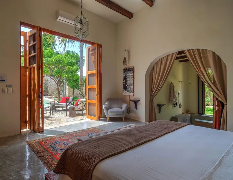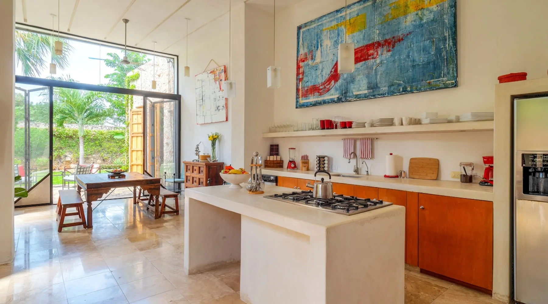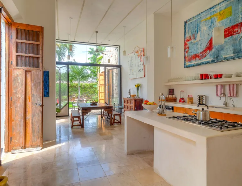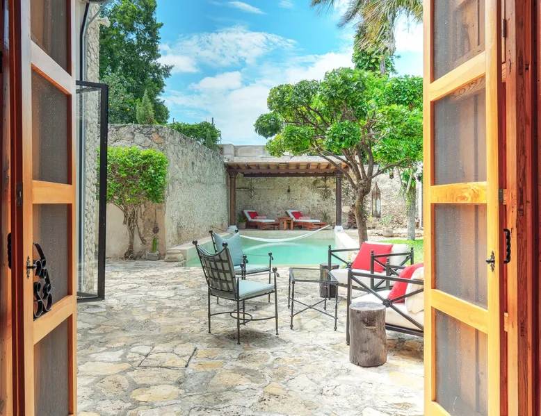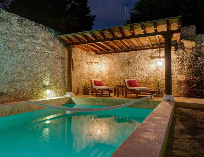 As seen on Airbnb commercial for Central and Latin America, 3 Bed, 3 Bath, Hacienda Style, Private Rental Home With Pool In Centro Historico, Merida, Yucatan, Mexico. It has a Huge Pool, Massive Garden, Fruit Trees, Palms, Cabana, 3 Bedroom, 3 Bathroom, Stainless Kitchen with All Modern Appliances, Private Theater, Luxury Amenities, and just 4 blocks from Santiago Park, Shops, Cafe's, Restaurants and Tourist Destinations. The space Complete Privacy at it's best! Guest access The Entire Property is Yours to Enjoy! Other things to note Casablanca Living is located in the Historic Center of Merida, Yucatan, Mexico. A short 4 block walk will bring you to Santiago Park, where many local restaurants and shops are available and a grocery store. Around the corner from the house is a small convenience store and a bakery and most of the local tourist attractions are a short walk or easy cab ride away.