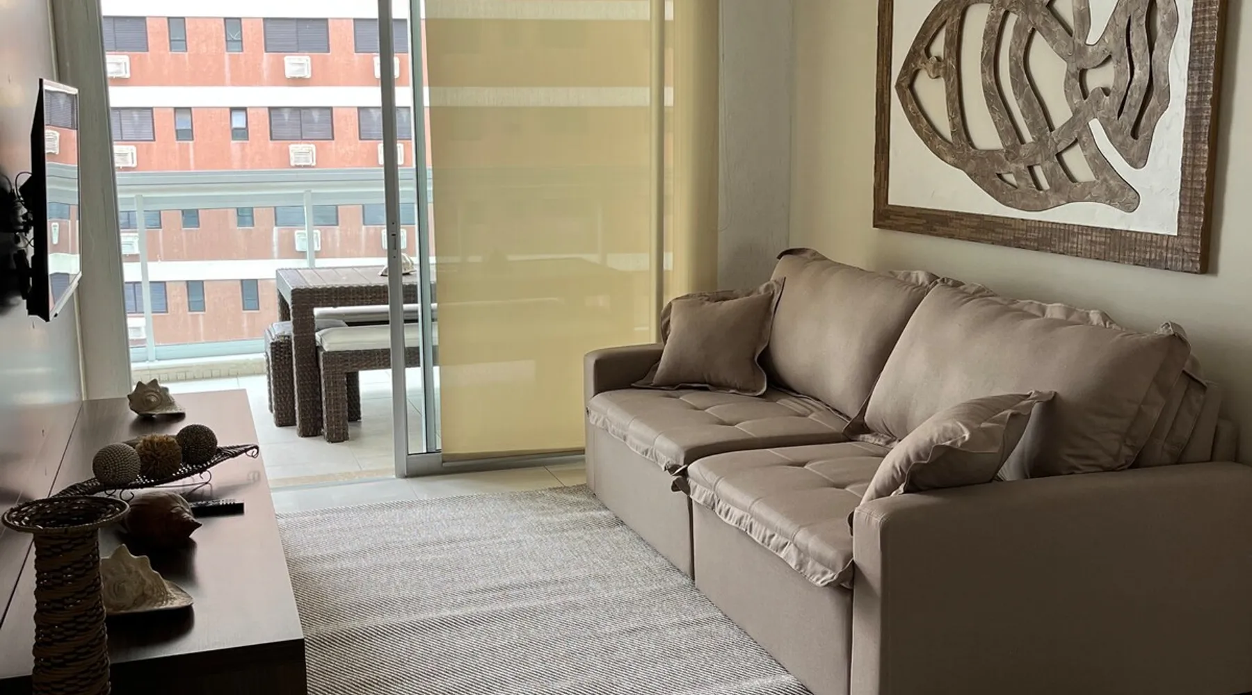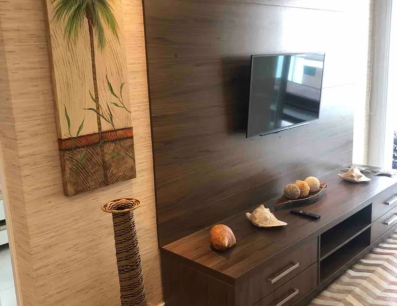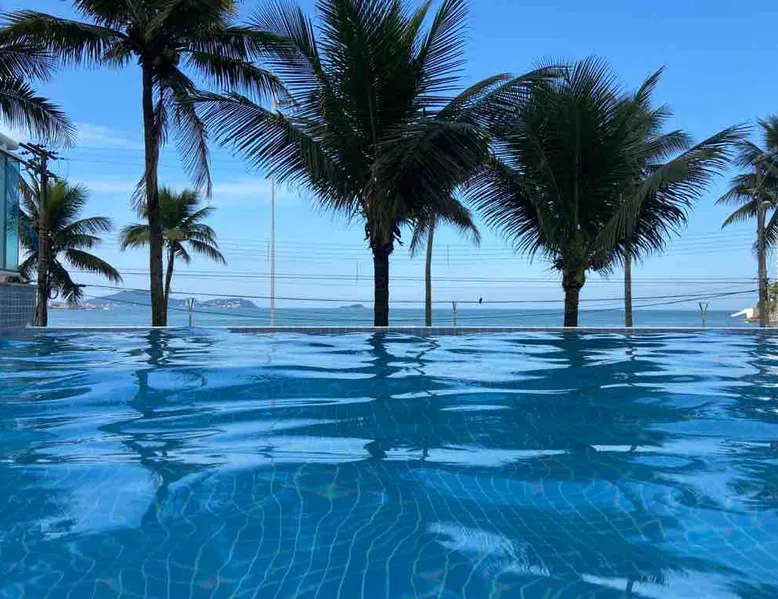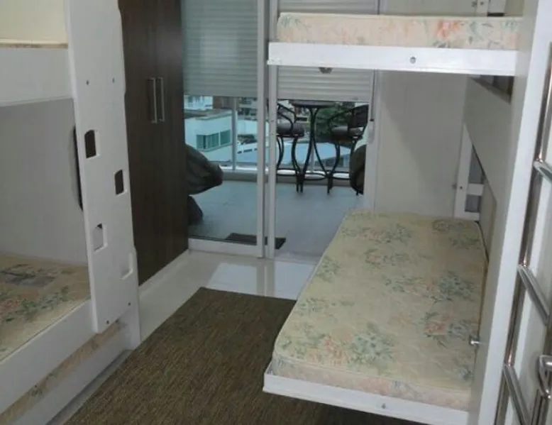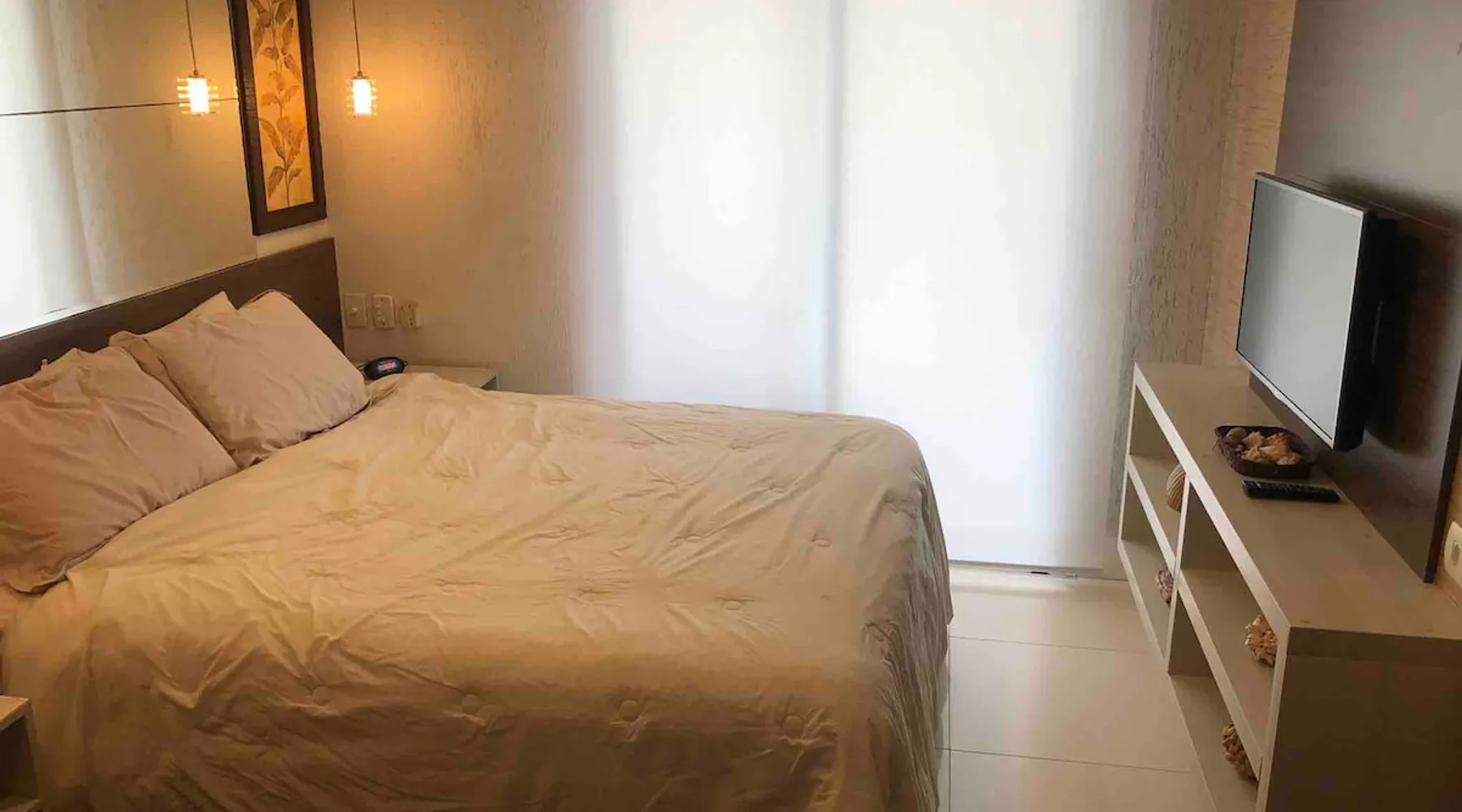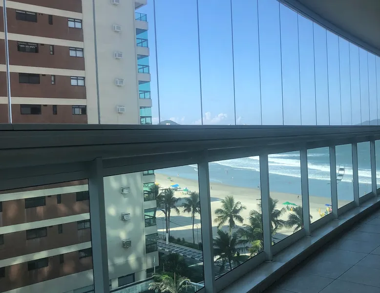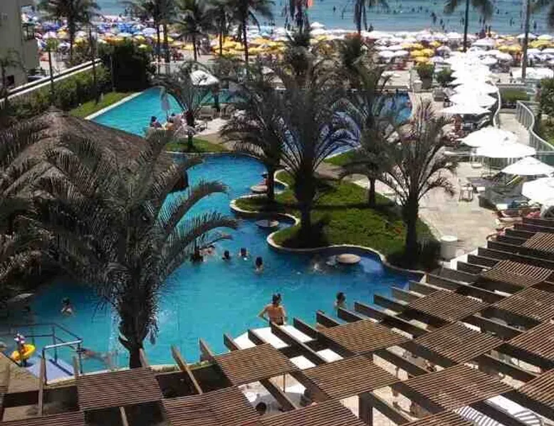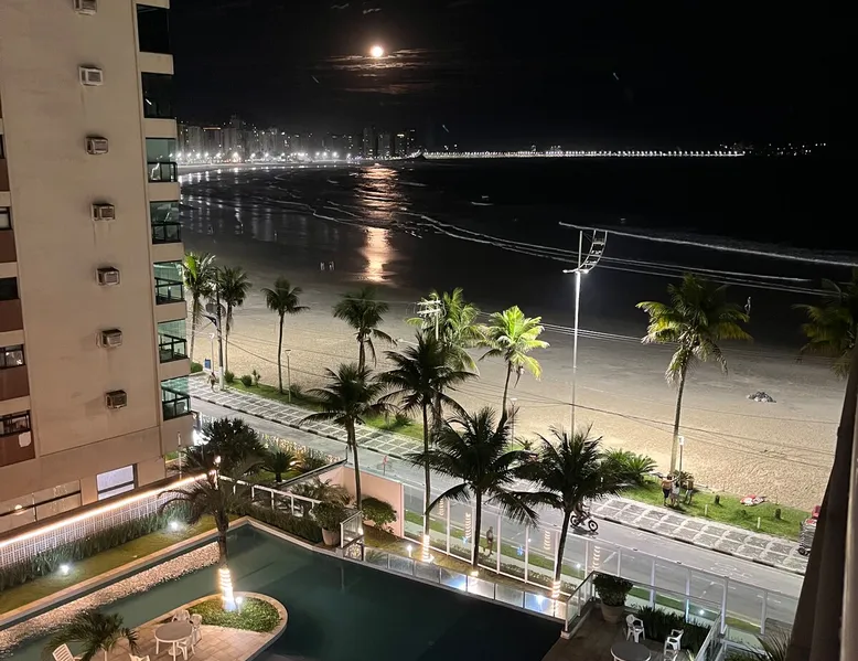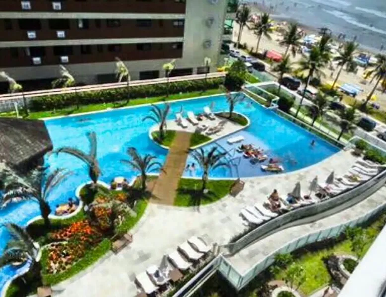 Wonderful view of the sea and pool The space Wonderful view of the sea and swimming pool, fully decorated apartment, kitchen with all the utensils and also for the barbecue, cold water purifier, 2 bathrooms with heated shower, 1 suite with air-conditioning and closets with hangers, 1 room with 5 bunk beds with air-conditioning and closets, large balcony with comfortable armchairs, table for 8 people, barbecue, the Condominium has beach service with the right to sun guard and chairs placed by our employees, building on the sand just across the street, 2 covered parking spaces, game room, adult and children's pool, whirlpool, toy library, lounge room, home tv, super safe condominium with cameras, restaurants, pharmacy, bakery next door, supermarket 1 km away. Guest access Swimming pool, game room, home TV, toy library.