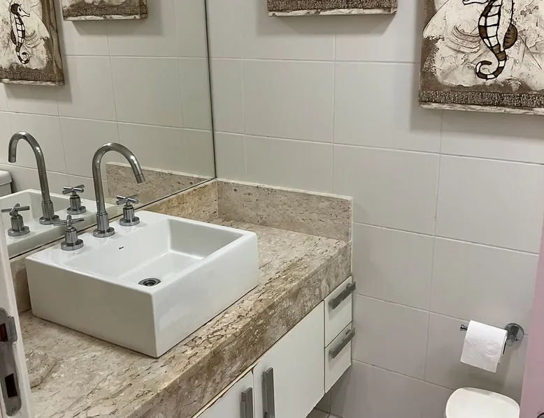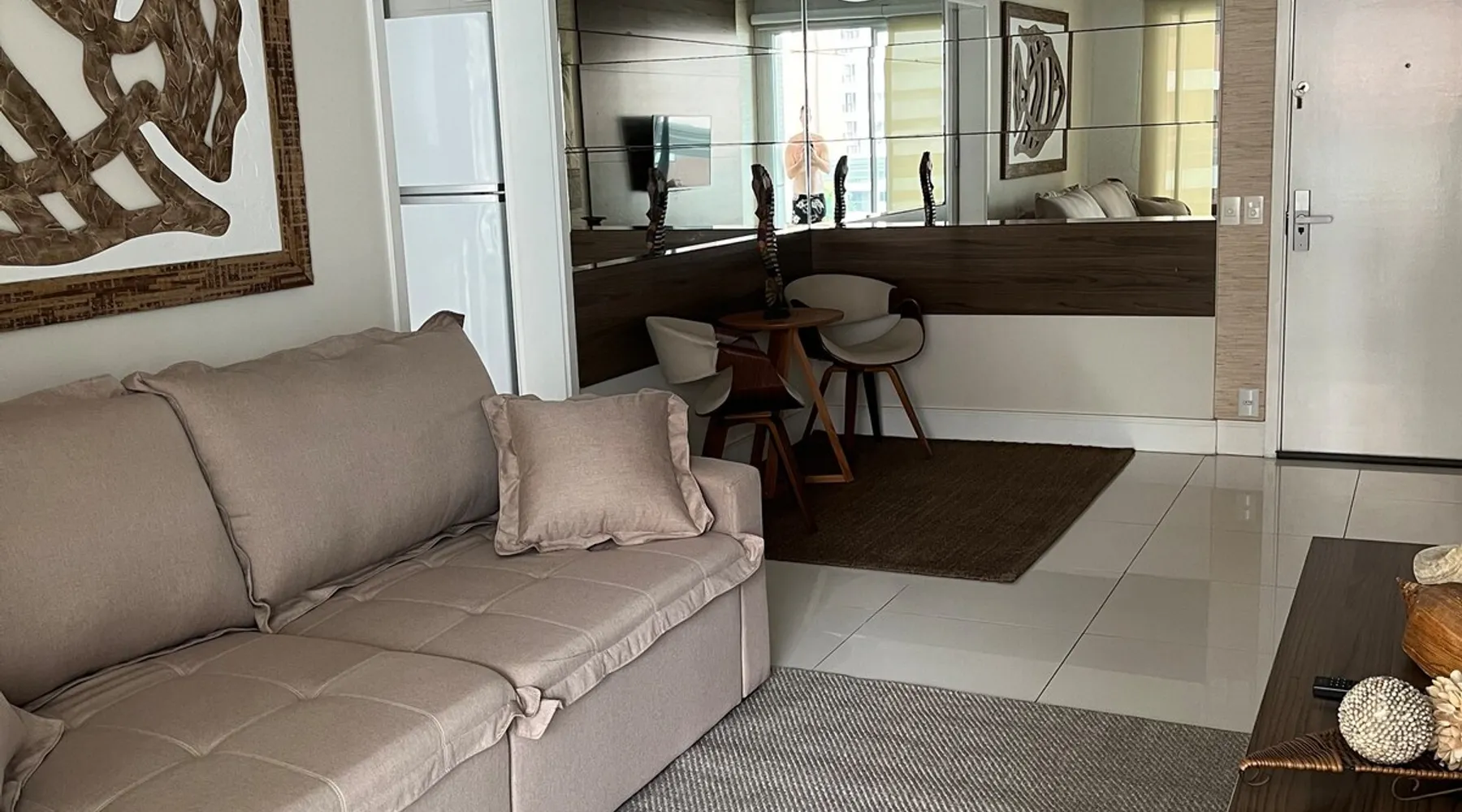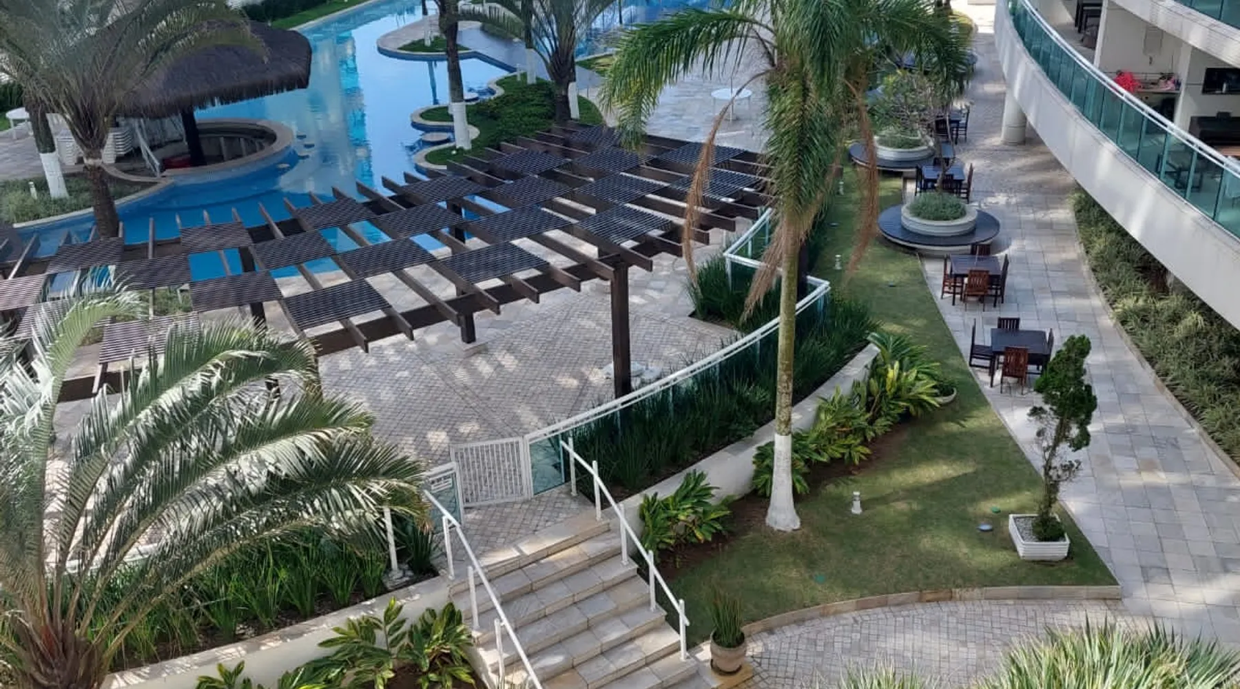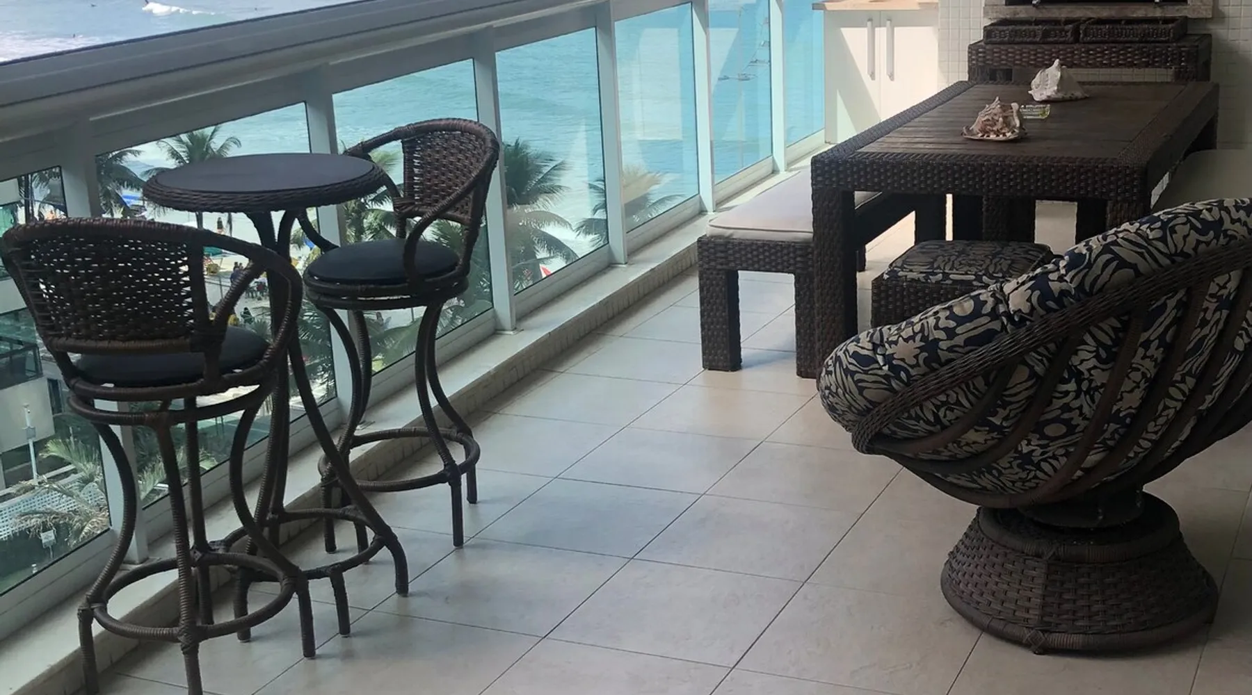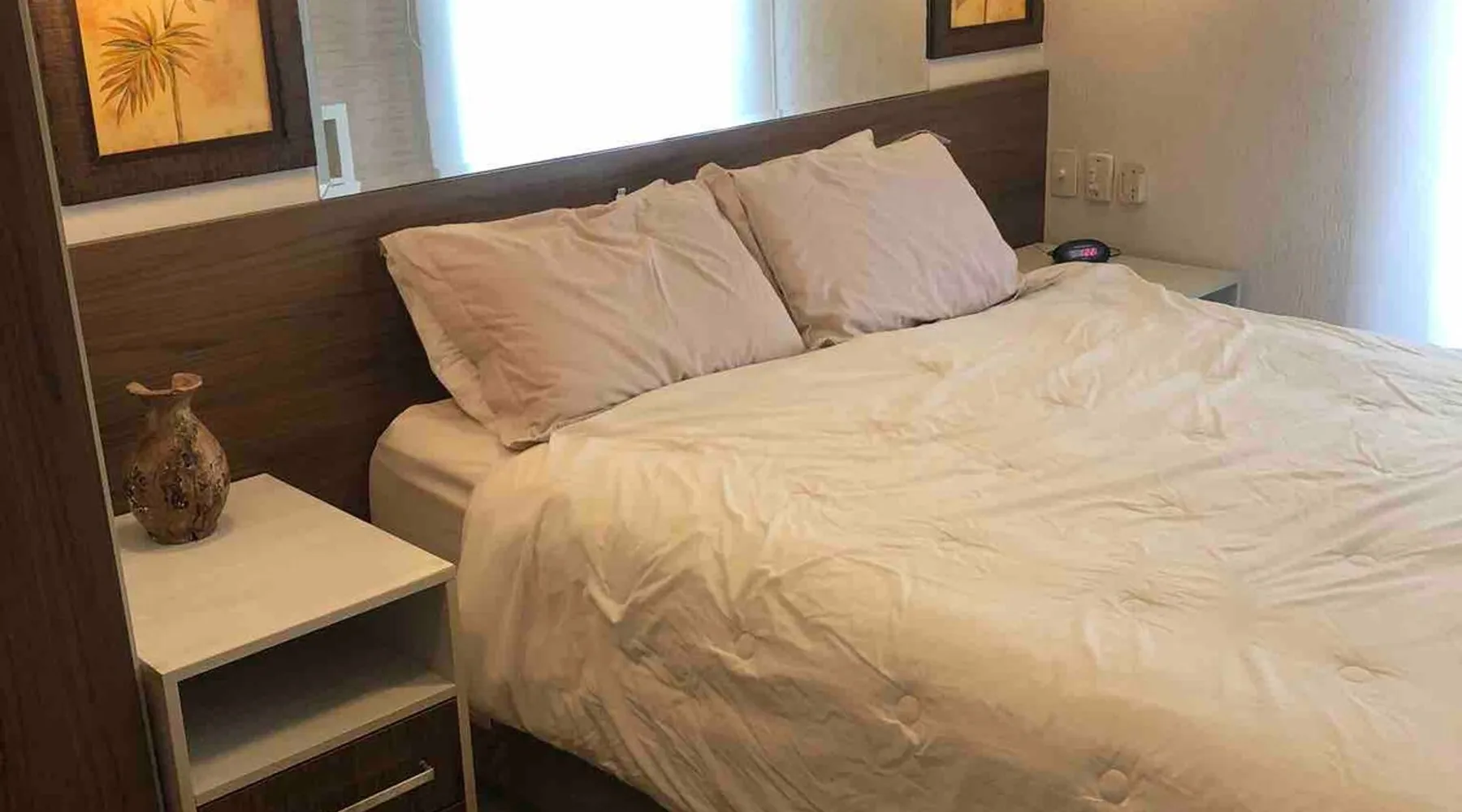 Wonderful view of the sea and pool The space Wonderful view of the sea and swimming pool, fully decorated apartment, kitchen with all the utensils and also for the barbecue, cold water purifier, 2 bathrooms with heated shower, 1 suite with air-conditioning and closets with hangers, 1 room with 5 bunk beds with air-conditioning and closets, large balcony with comfortable armchairs, table for 8 people, barbecue, the Condominium has beach service with the right to sun guard and chairs placed by our employees, building on the sand just across the street, 2 covered parking spaces, game room, adult and children's pool, whirlpool, toy library, lounge room, home tv, super safe condominium with cameras, restaurants, pharmacy, bakery next door, supermarket 1 km away. Guest access Swimming pool, game room, home TV, toy library.