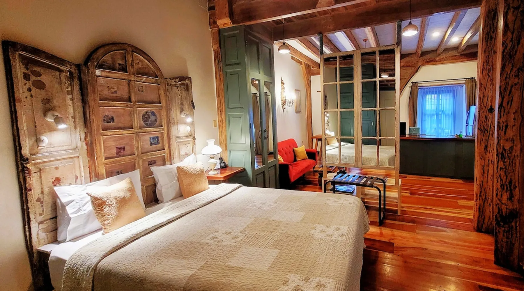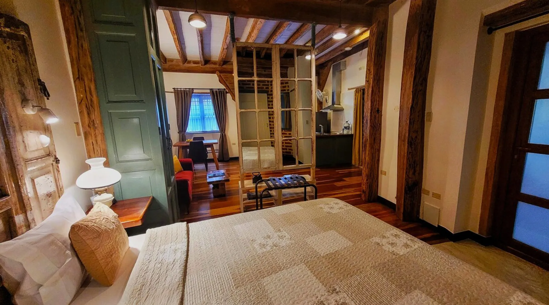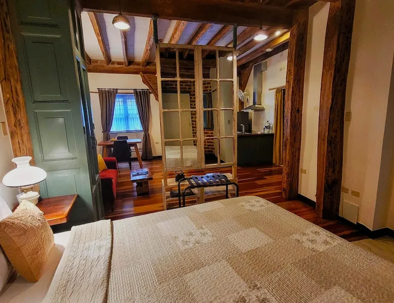 Infusing a historic setting with modern spirit, this apartment blends a relaxed residential ambience with the glamour of a chic boutique hotel. This spacious one-bedroom apartment has a perfect location in Old Town Quito The hardwood floors and massive beams togheter with a vintage kitchen en the artistic elements will make you feel like living in colonial times yet with all modern comfort. You won’t feel at home. You’ll feel much better. The space This apartment exudes Quito’s wide variety of styles. The ideal accommodations for two guests travelling together. This spacious apartment features one bedroom with luxurious linens, a marble bathroom stuffed with luxury amenities, soft towels, slippers, robes, a fully equipped vintage-look kitchen, a comfortable sitting room with a large sofa and chairs, a full size refrigerator, coffee machine and toaster, vintage decorative elements and flat screen TV.. The solid wooden floor and beams will give you a taste of Quito’s splendour. !High Ceilings" features a bathroom stuffed with luxury amenities, soft towels, slippers and robes. Guest access Internal patio and colonial hallways Other things to note You’ll find these in every apartment: Coffee Machine - Electric kettle - Toaster - WIFI optical fibre - Top Bathroom Amenities - Finest Beds & Linens - Adaptor, usb plug-in, 110/220V - Local Tips Advisor - Luggage Storage Indulge Yourself. Make your experience even better with our extra sweet services like: CITY TOUR: A professional guide will take you on an unforgettable tour of the city ROMANTIC SET UP: We’ll create a romantic, memorable scene for you and your sweetheart AIRPORT TRANSFER: Pick up and drop off directly to and from your apartment at a fixed rate LOCAL SMARTPHONE: Save money with a phone pre-set for local calls and web browsing GROCERY BASKET: Fresh and tasty local products, right at your doorstep BREAKFAST DELIVERY: Tasty breakfast delivered straight to your door DAILY CLEANING Ask for our comfort package with the following amenities: Coffee & Tea, juice, wine, local spirit, crisps, fresh local fruit and a breakfast package with eggs, butter, marmalade, local cheese, yogurt and milk. Enjoy on a flat screen movies offered by Netflix and satellite.
