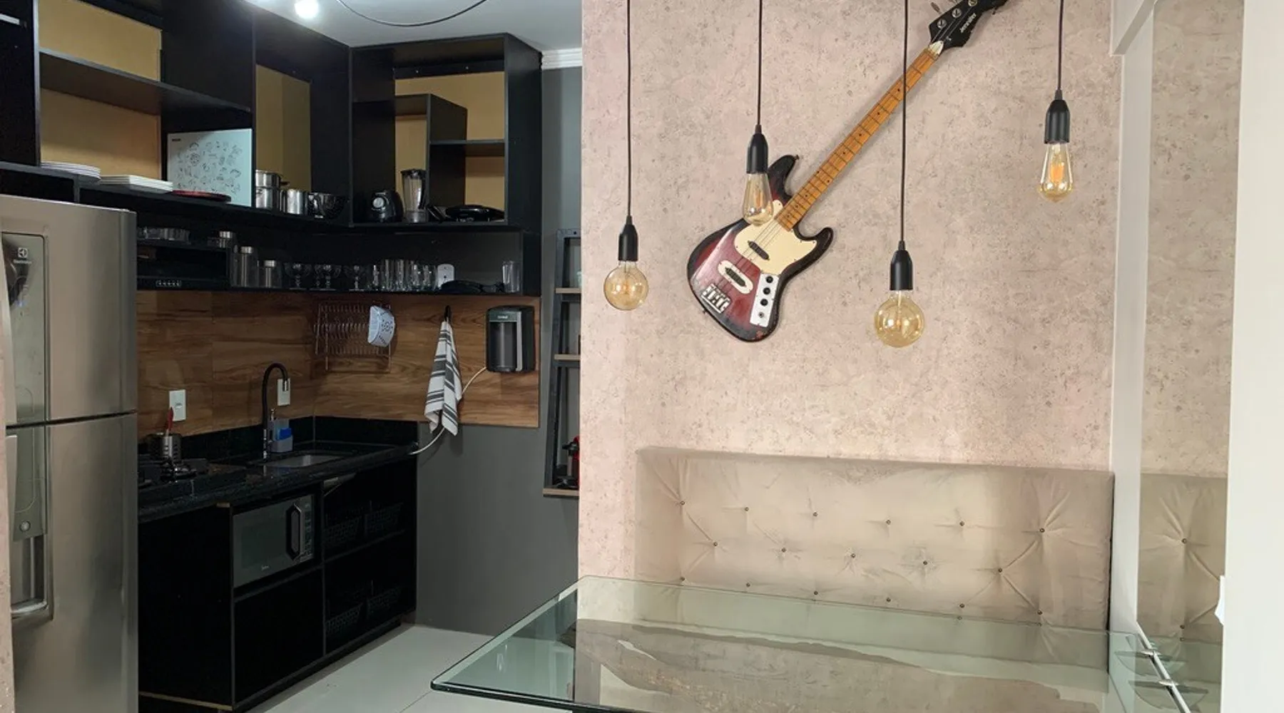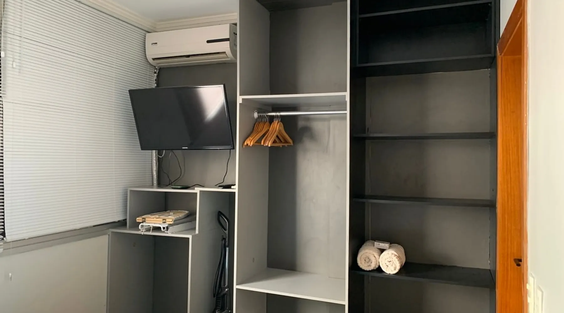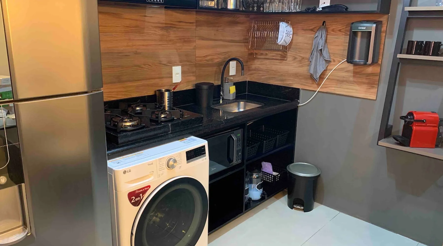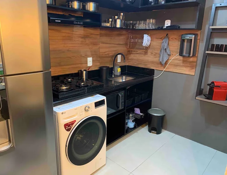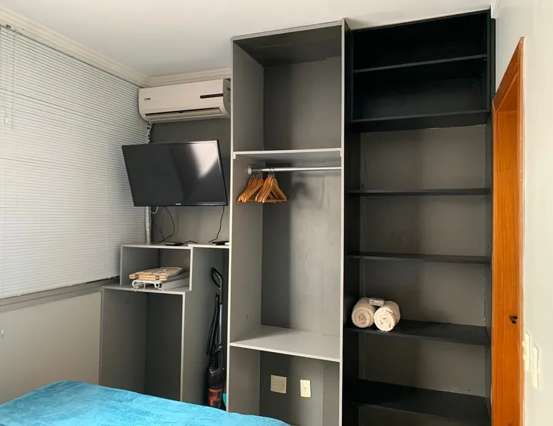 Kitnet, located in Asa Norte, an upscale neighborhood in Brasília, is an apartment on the ground floor of a gated community. The kit has a kitchen equipped with a microwave, gas cooktop, frost free refrigerator, coffee maker, sandwich maker, water purifier, set of pots, plates, cutlery, glasses, wine glasses; office with table and chair, fiber optic Wi-Fi; Bathroom with electric shower, hairdryer, set of towels.