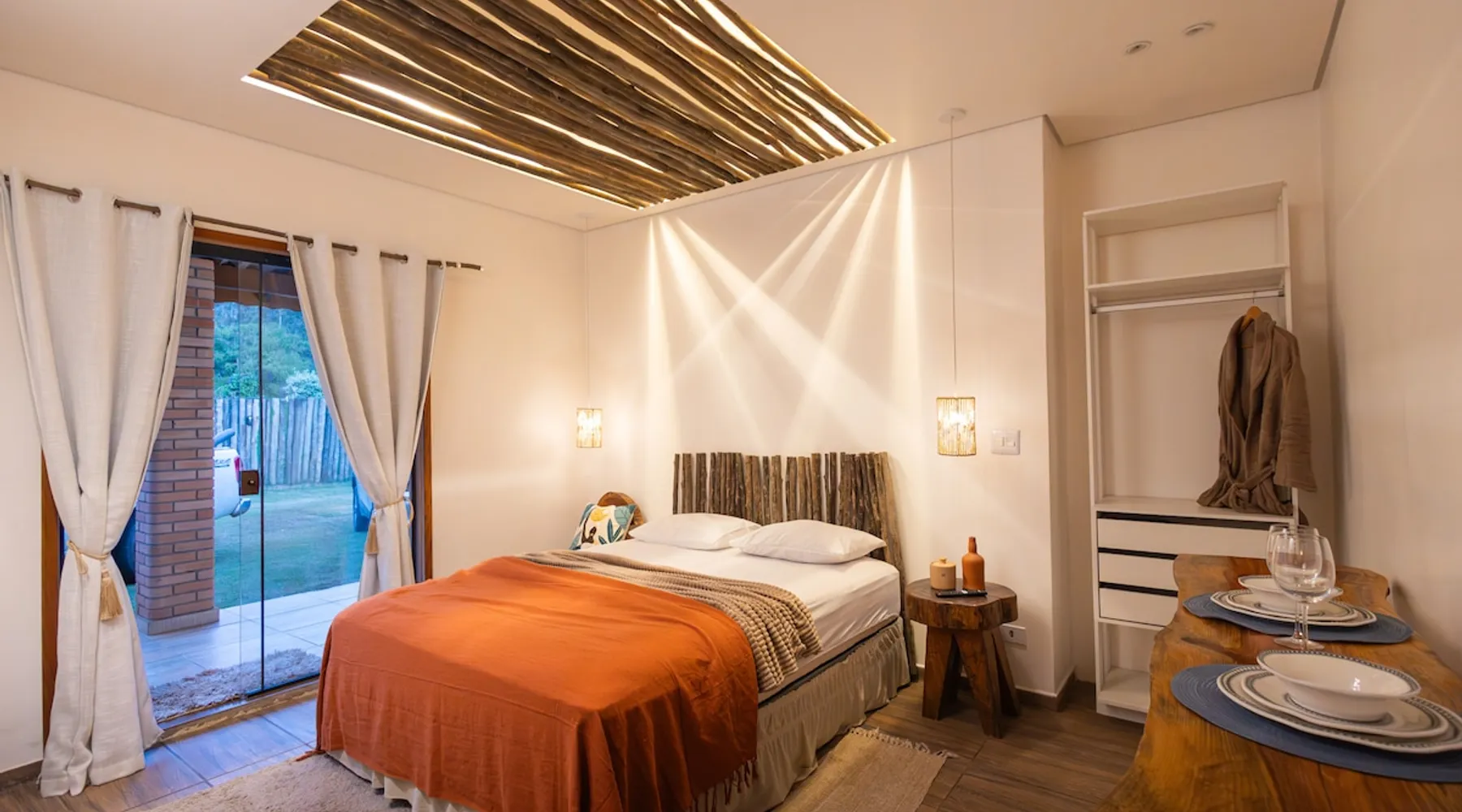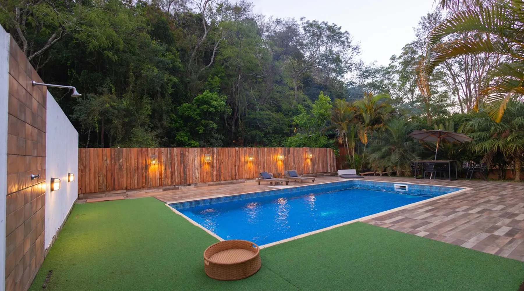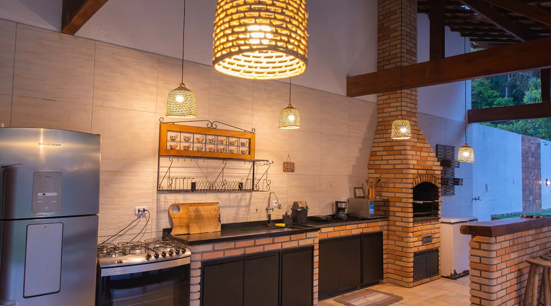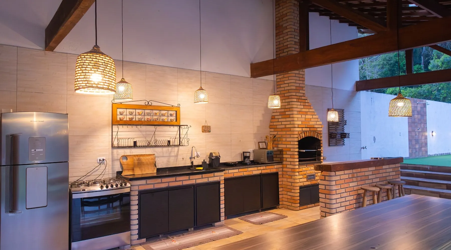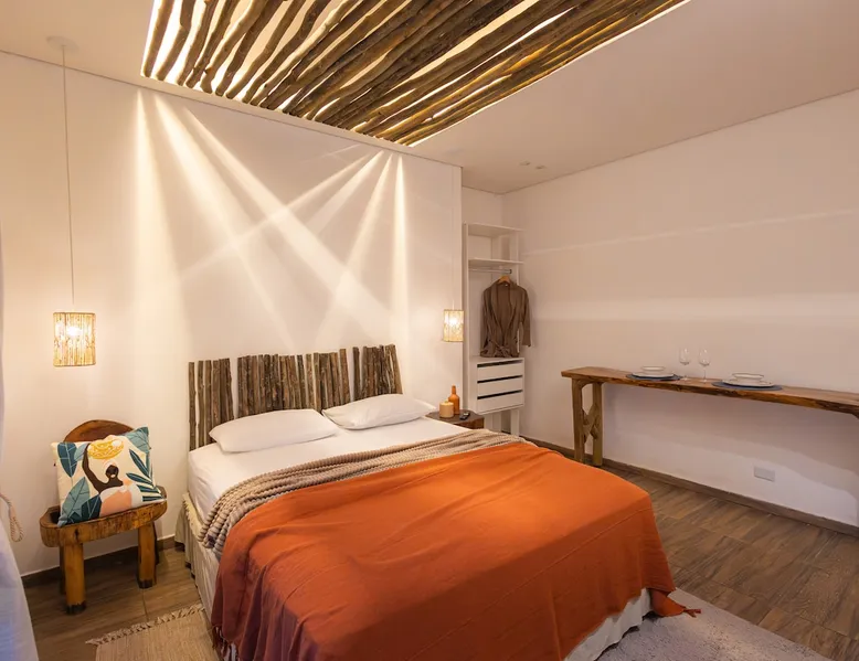 The Village Bungalow is surrounded by a lush nature and has a beautiful native forest at the back. The whole area is surrounded, ensuring privacy and solitude. The space has an exclusive swimming pool, complete gourmet area, a floor campfire and a charming outdoor cinema. Perfect for relaxing, reconnecting and living unique moments in the midst of nature. The space The Villa Bungalow is located in Vila Cabana Glass, a refuge surrounded by the exuberance of the Atlantic Forest. Each cabin and bungalow has a totally private and exclusive area, ensuring tranquility and connection with nature. Other things to note 🛏️ Services: We provide bed and bath linen (pillows, covers, towels and bathrobes) and fireplace and fireplace. ✨ Additional services: In Vila da Cabana Glass we have the Lodge Café, where we offer breakfast and fondue options, as well as a variety of snacks, pizzas, pies, desserts, soft drinks, wines, juices and teas that can be purchased and prepared for the guest on site. We also offer personalized decoration for anniversaries, dating requests, and marriage requests. For more details or special requests, send us a message and we'll share all the options.