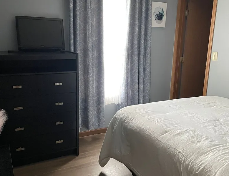 Single room with Queen size bed sleeps two. Dresser with mirror and a second drawer on hard wood floors. Cable Tv with remote, HBO, Showtime, Prime Video, Wi-Fi throughout the house. Bathroom and shower directly across from the room. This bathroom is for AirBNB guests only. Also has a small walk in closet. The house is 1 minute from Interstate I 65. 15 minutes to Purdue University. 15 minutes to the Tippicanoe mall. 10 minute walk to Meijer, Starbucks or Copper Moon coffee shops. The space The room is in a 3 bedroom 1 level ranch style house located in a quiet residential neighborhood. You have your own full bath and an additional bedroom converted into an office that's included in the booking. Guest access Guests have access to the room and bathroom exclusive for AirBNB bookings. Guests are allowed to use fridge, coffee bar, and microwave. The Fridge is stocked full of bottled water. And a coffee bar in the kitchen. That has a Keurig, regular coffee maker, or a pour over for delicious coffee anytime of the day or night. During your stay Guests can contact me through the AirBNB site by texting or calling anytime! Other things to note Guests are basing their reviews of the room and bathroom. The house is kept clean and tidy all the time. But would prefer guests to limit the evaluation on those two only, and not seeing a spider web in the corner of the living room. Or a plate left in the sink!