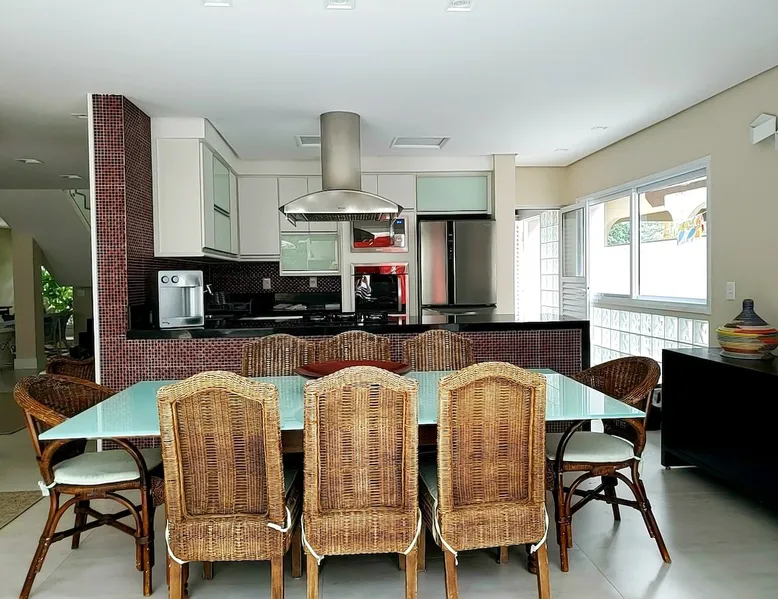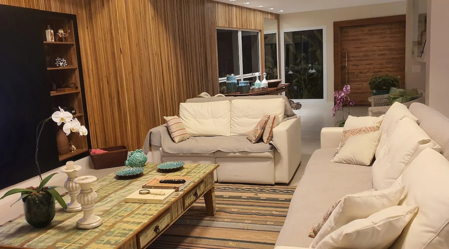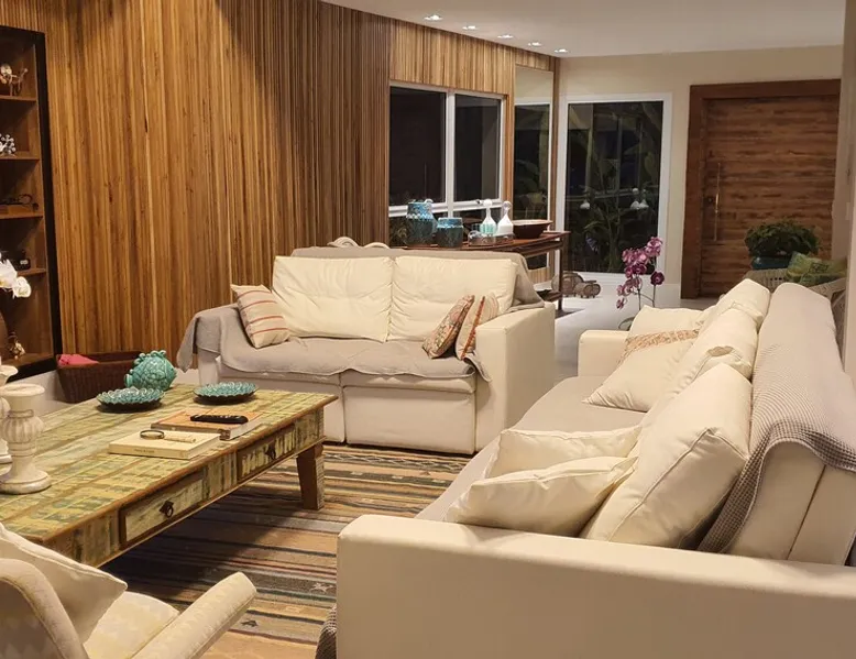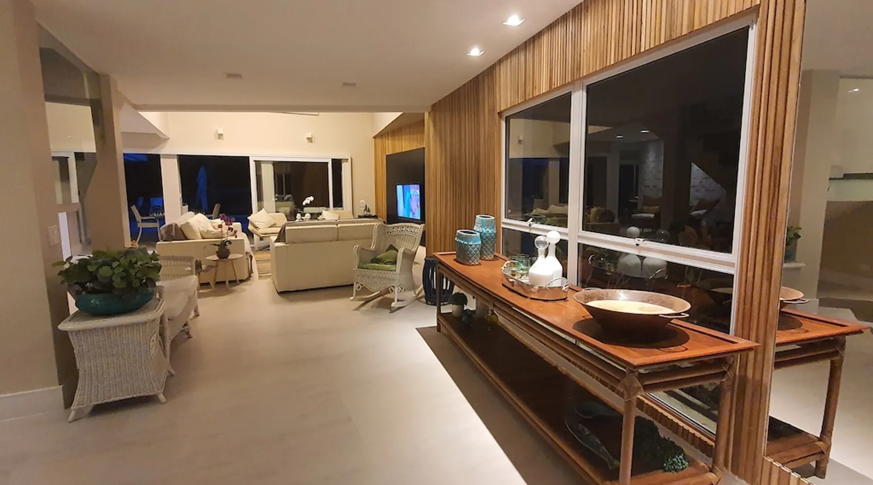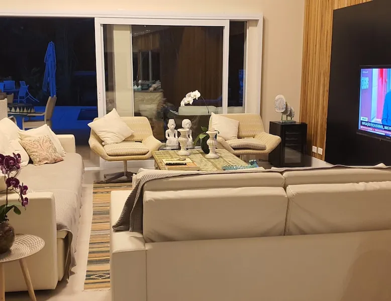 Beautiful house, with 6 suites, air conditioning in all suites, HEATED POOL, balcony, gourmet area and large green area, 450 meters from the beach, including housekeeping services. If the guest is interested in hiring domestic services, including kitchen services, they can do so directly by making the payment directly to the housekeeper.