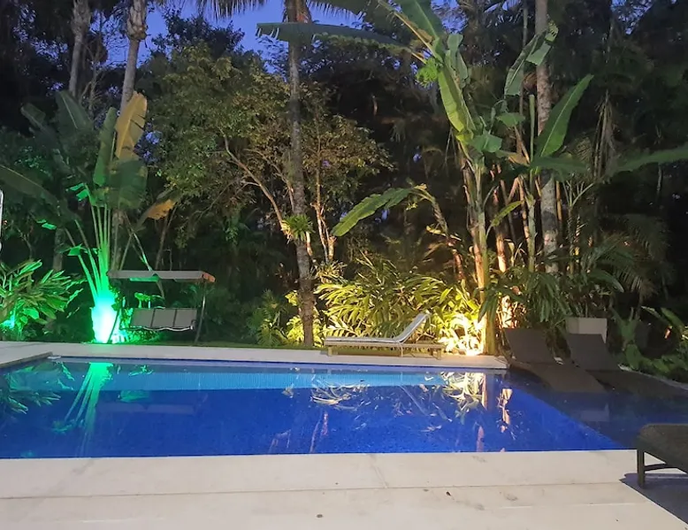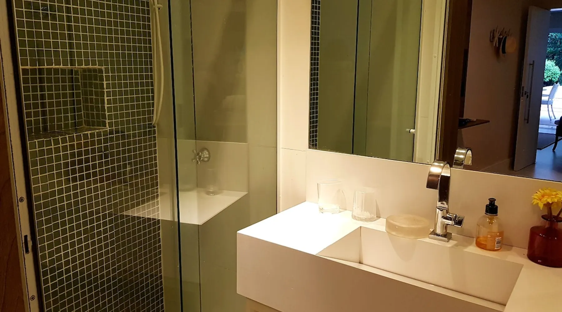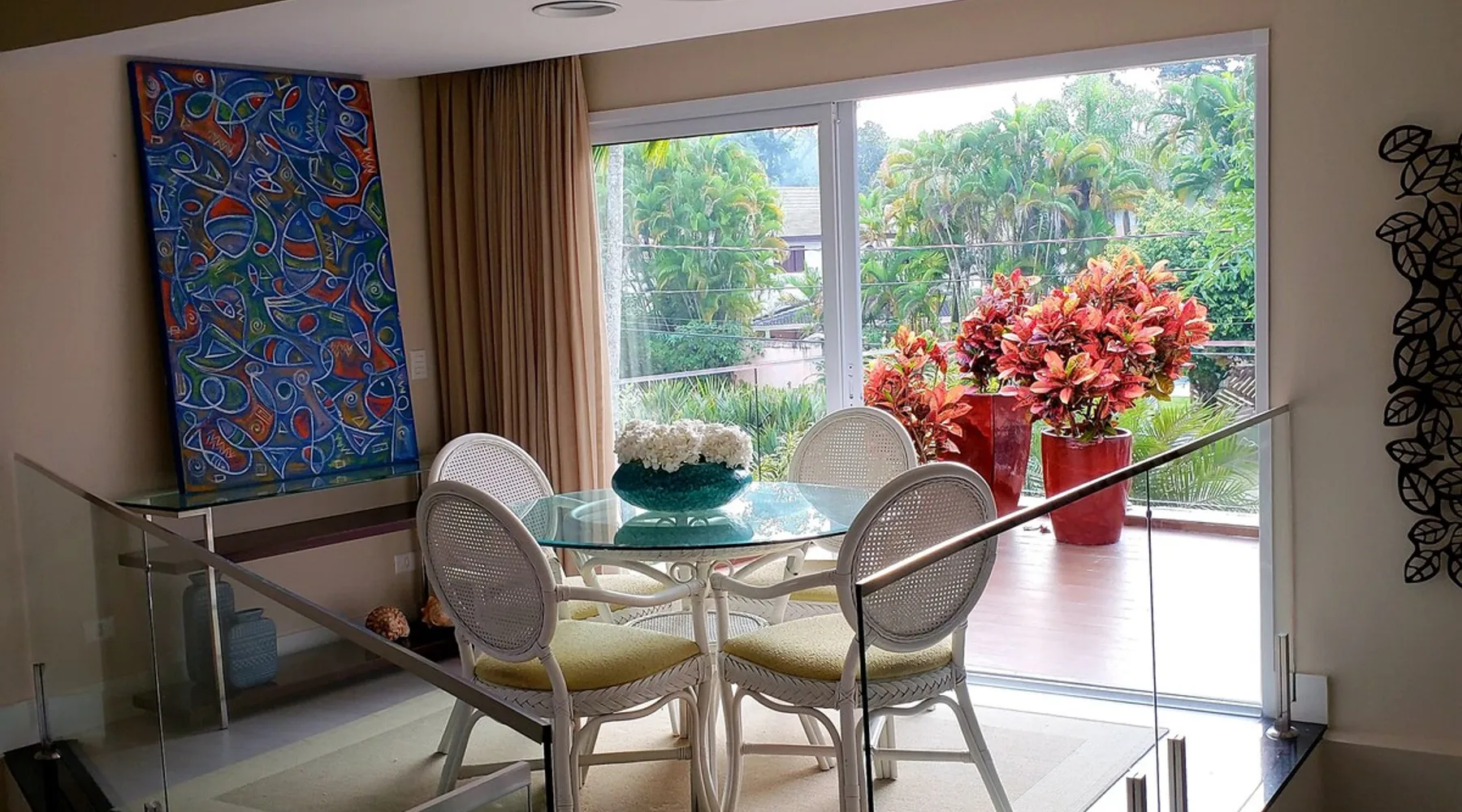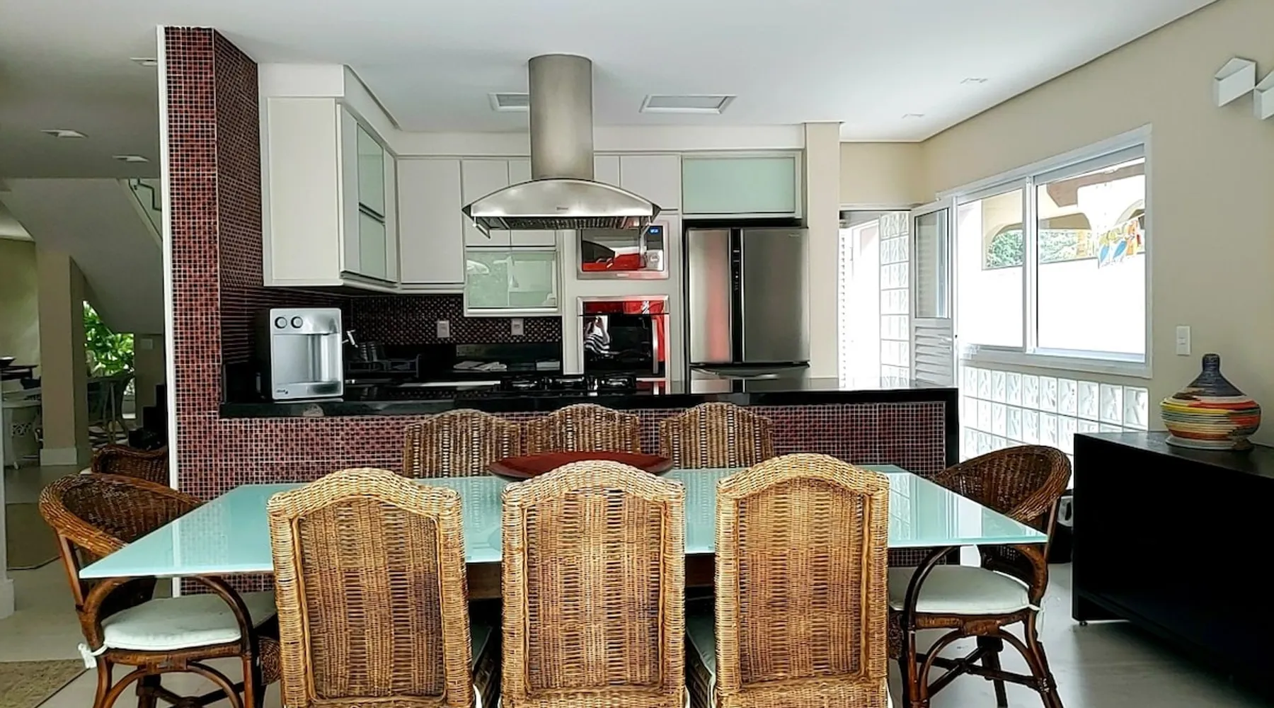 Beautiful house, with 6 suites, air conditioning in all suites, HEATED POOL, balcony, gourmet area and large green area, 450 meters from the beach, including housekeeping services. If the guest is interested in hiring domestic services, including kitchen services, they can do so directly by making the payment directly to the housekeeper.