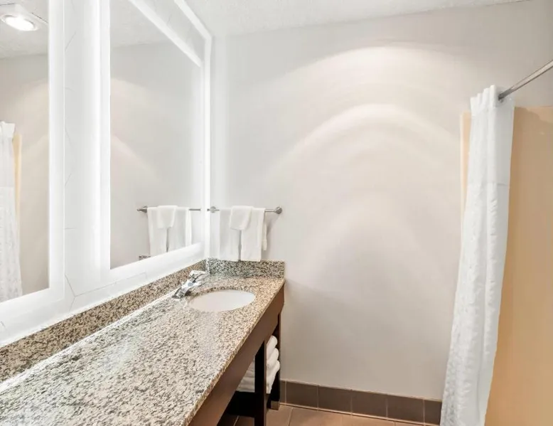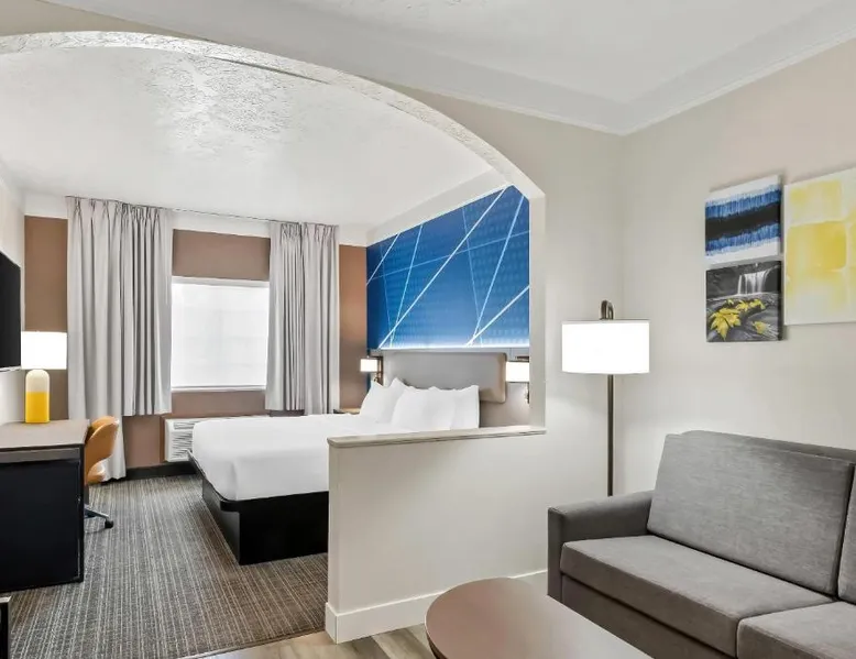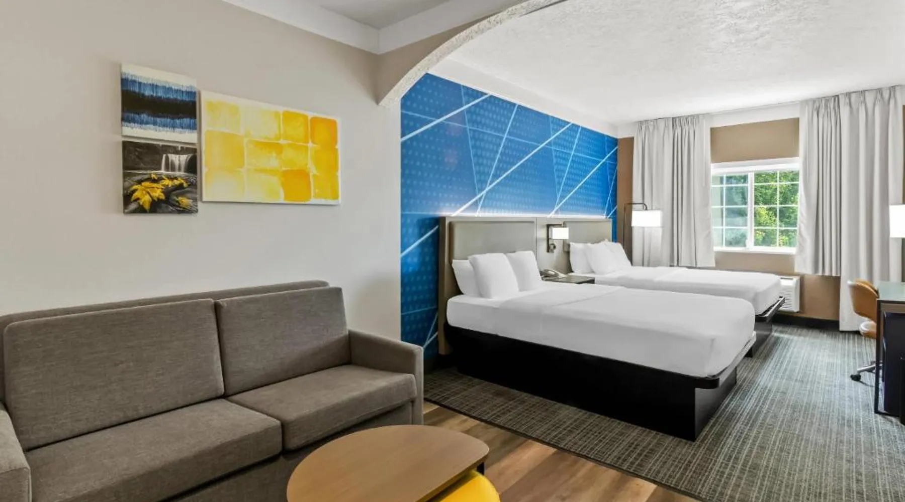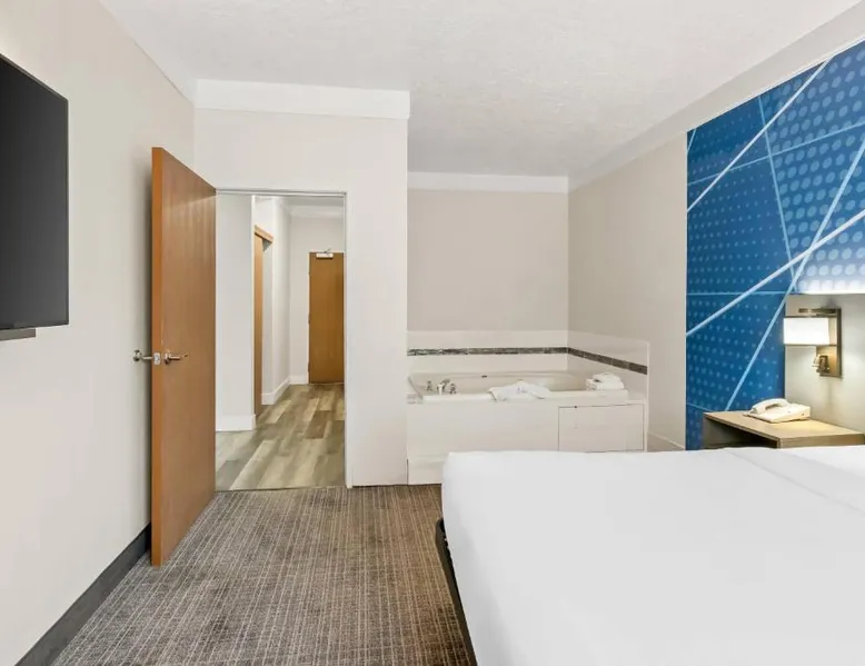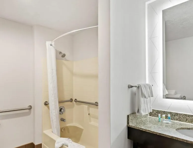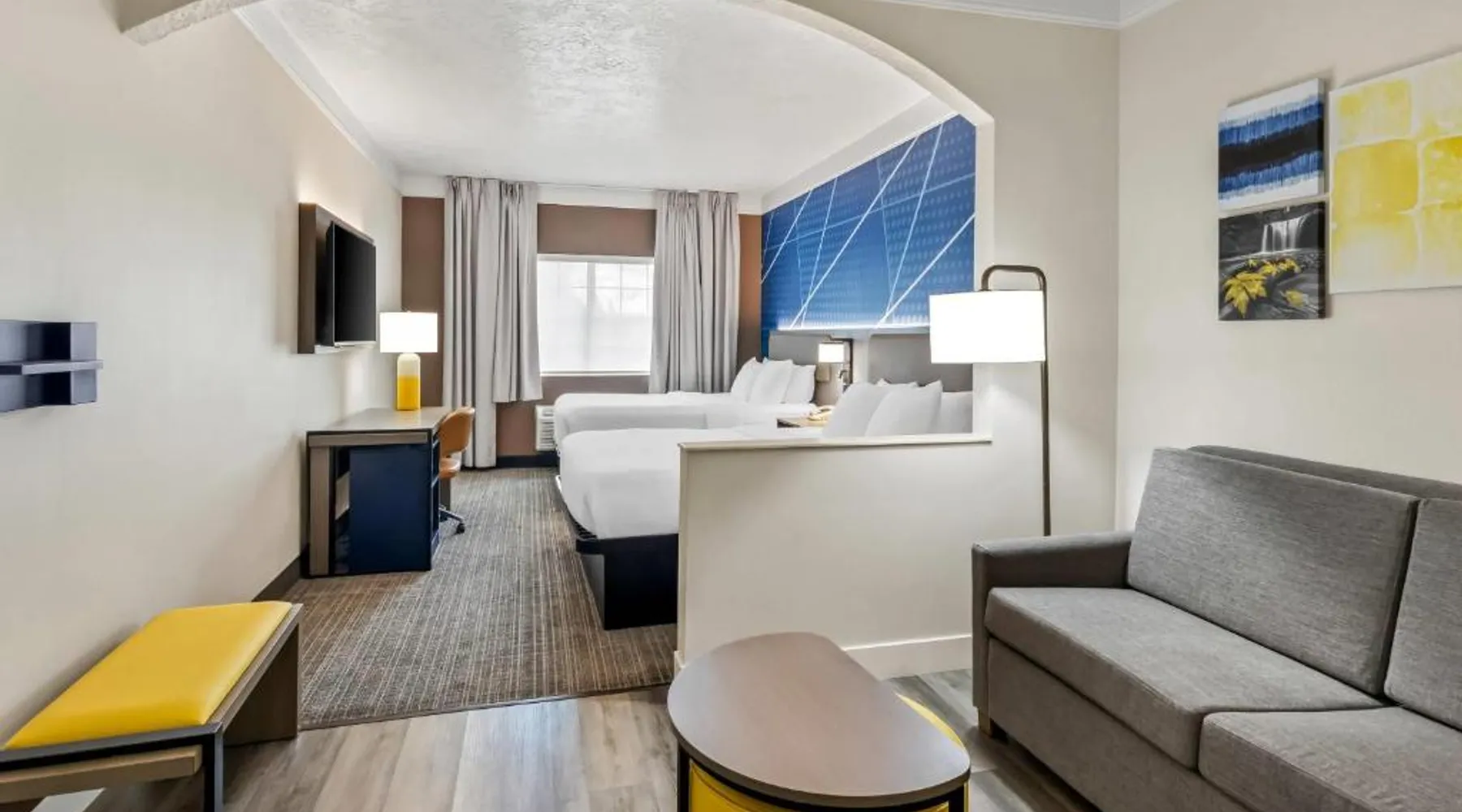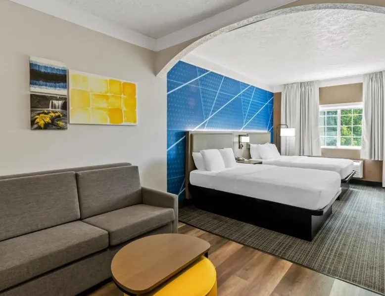 The Comfort Suites Clackamas hotel in Clackamas is located near Interstate 205, just 15 minutes from downtown Portland. This hotel is located one mile from the Clackamas Town Center mall, the North Clackamas Aquatic Parkand the Oregon Military Museum. The Portland International Airport is 13 miles from the hotel. Additional area attractions include: Willamette Falls Locks, Barton Park, Electric Castles Wunderland, End of the Oregon Trail Interpretive Center, McLoughlin House. Your Morning Breakfast is full of hot options, making breakfast at the Comfort Suites Clackamas the perfect way to start your day. Enjoy our free hot breakfast featuring eggs, meat, yogurt, fresh fruit, cereal and more, including your choice of hot waffle flavors. If you're leaving early, a Your Suite Success Grab & Go bag is available for the two hours prior to breakfast. Hotel features many amenities, including free local calls, a free weekday newspaper, free coffee and a free snack reception with fresh-baked cookies in the evening. Guests will also enjoy the exercise room, indoor heated pool, hot tuband sauna. Business travelers will appreciate conveniences like wireless Internet access in all rooms, voice mail and access to copy and fax services. The hotel has two meeting rooms. The Pacific Room can be set up for 90 people theater-style and 50 people classroom-style. The boardroom offers a traditional oversize table with 12 ergonomic leather chairs. All guest rooms include refrigerators, microwaves, VCRs, irons, ironing boards, hair dryers and coffee makers. Some rooms have whirlpool bathtubs. The spacious twin/double room features air conditioning, a tea and coffee maker, as well as a private bathroom boasting a bath and a shower. The unit has 2 beds.
