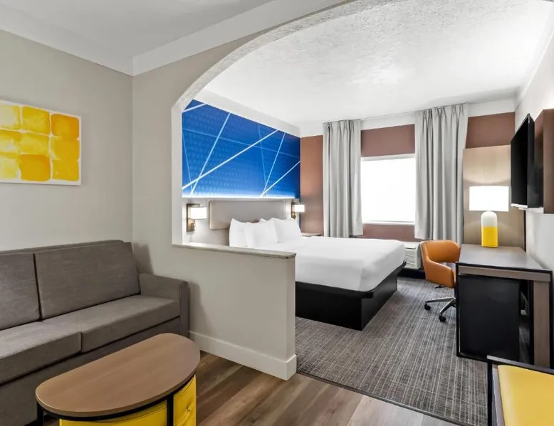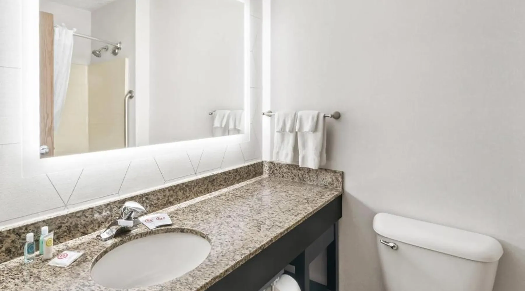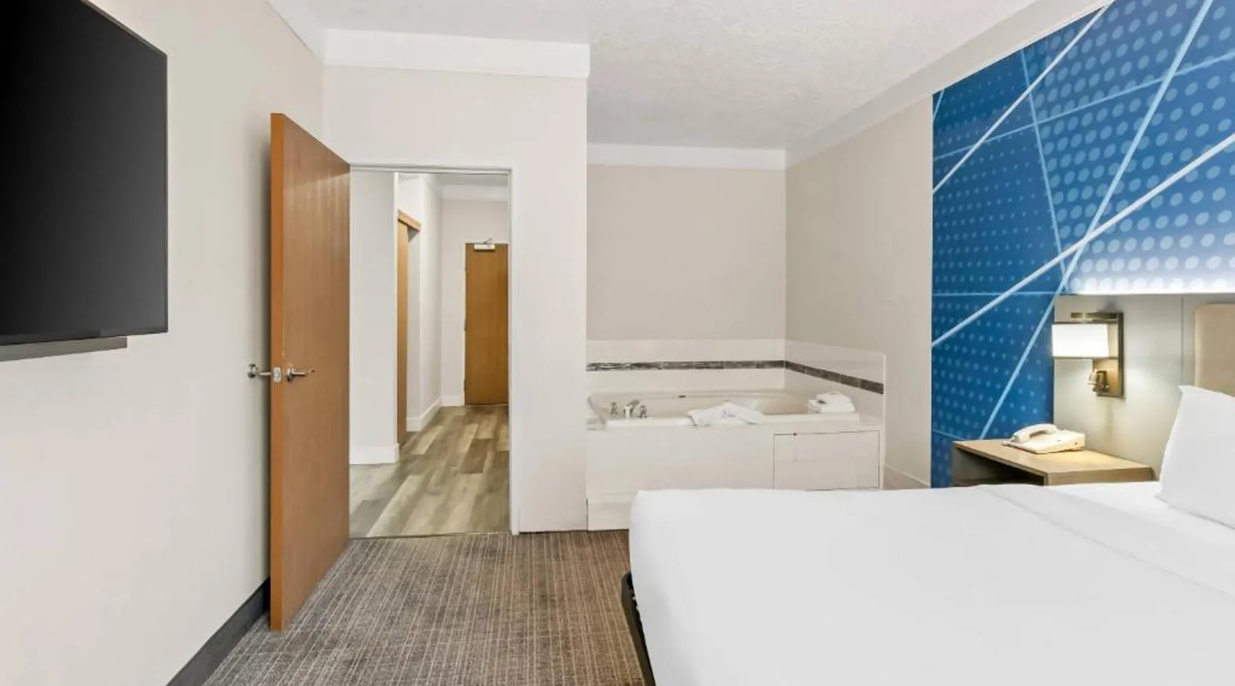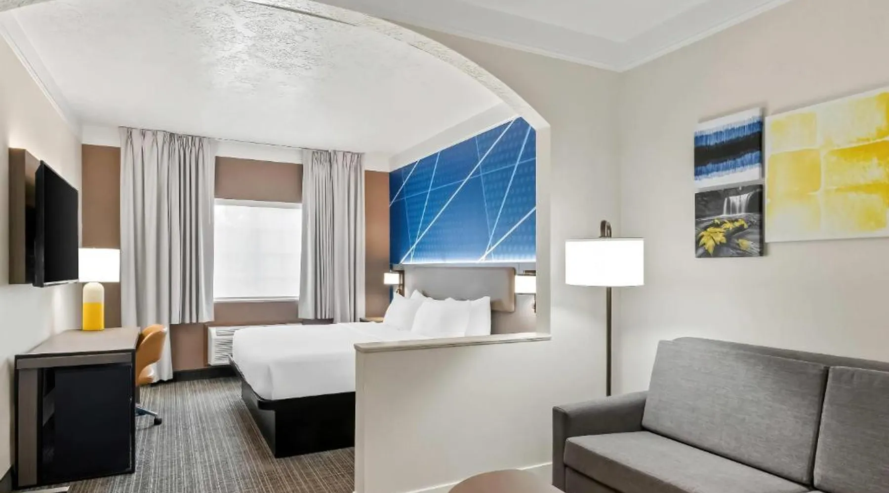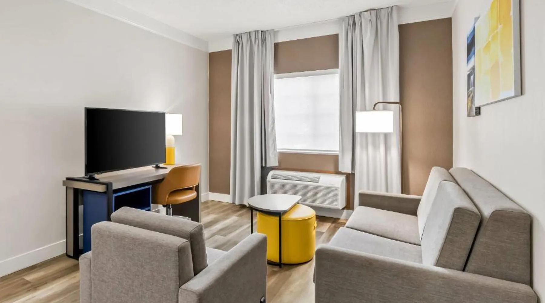 The Comfort Suites Clackamas hotel in Clackamas is located near Interstate 205, just 15 minutes from downtown Portland. This hotel is located one mile from the Clackamas Town Center mall, the North Clackamas Aquatic Parkand the Oregon Military Museum. The Portland International Airport is 13 miles from the hotel. Additional area attractions include: Willamette Falls Locks, Barton Park, Electric Castles Wunderland, End of the Oregon Trail Interpretive Center, McLoughlin House. Your Morning Breakfast is full of hot options, making breakfast at the Comfort Suites Clackamas the perfect way to start your day. Enjoy our free hot breakfast featuring eggs, meat, yogurt, fresh fruit, cereal and more, including your choice of hot waffle flavors. If you're leaving early, a Your Suite Success Grab & Go bag is available for the two hours prior to breakfast. Hotel features many amenities, including free local calls, a free weekday newspaper, free coffee and a free snack reception with fresh-baked cookies in the evening. Guests will also enjoy the exercise room, indoor heated pool, hot tuband sauna. Business travelers will appreciate conveniences like wireless Internet access in all rooms, voice mail and access to copy and fax services. The hotel has two meeting rooms. The Pacific Room can be set up for 90 people theater-style and 50 people classroom-style. The boardroom offers a traditional oversize table with 12 ergonomic leather chairs. All guest rooms include refrigerators, microwaves, VCRs, irons, ironing boards, hair dryers and coffee makers. Some rooms have whirlpool bathtubs. The spacious twin/double room features air conditioning, a tea and coffee maker, as well as a private bathroom boasting a bath and a shower. The unit has 2 beds.