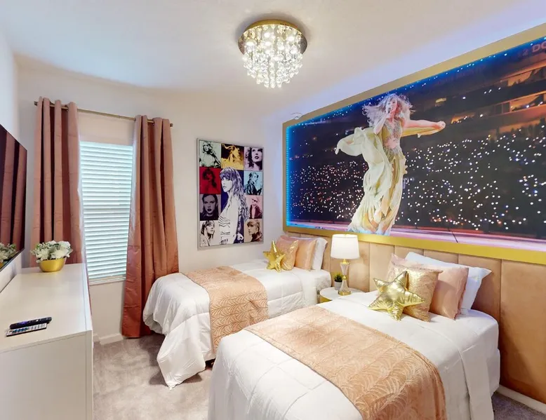 Spacious and Luxury 8 Bedrooms - Near Sea World The space Welcome to our amazing exclusive and very luxurious 8 bedrooms home with private bathroom located in Orlando! Community: Paradiso Grande • 8 Bedrooms/ 8 Bathrooms/ Sleeps 18 • Disney (10 miles) • SeaWorld (1.5 miles) • ICON PARK (4 miles) • Convention Center (3 miles) • Universal (7 miles) • Location: High Seas Dr, Orlando FL 32821 The space • Central AC • Washer & Dryer • Gated Community • Exercise Equipment • TV In Every Bedroom • Free Cable TV & WIFI • Fully Equipped Kitchen • Towels & Linens Provided • Arcade With Games • Washcloths Are Not Provided • Hair Dryers, Iron & Ironing Board • Pool Heat $40 per day - Optional - minimum 4 days • BBQ Rental $70 All Stay - Optional • Family Room With Huge Flat Screen TV • Outdoor Patio Furniture With Sun Loungers • Pack 'n play/ High Chair ($49 Upon Request) • Private Screened-in Pool + Child Safety Pool Fence LAYOUT FIRST FLOOR Entrance Hall, Game Room, Kitchen, Living Room and External Area will grill and pool Bedroom 1 ( Mickey Room ): 1 KING BED (BATHROOM LOCATED IN FRONT OF THE ROOM). Bedroom 2 ( Tiffany & Co. ): 1 KING BED + PRIVATE BATHROOM LAYOUT SECOND FLOOR TV Lounge Bedroom 3 ( Taylor Swift ): 2 SINGLE BEDS + PRIVATE BATHROOM Bedroom 4 ( Minions ): 2 SINGLE BEDS + PRIVASTE BATHROOM Bedroom 5 ( Frozen ): 2 SINGLE BEDS + PRIVATE BATHROOM Bedroom 6 ( Harry Styles ): 2 DOUBLE BEDS + PRIVATE BATHROOM Bedroom 7 ( Paris, France ): 1 KING BED + PRIVATE BATHROOM Bedroom 8 ( London, UK ): 1 KING BED + PRIVATE BATHROOM AMAZING AVATAR GAME ROOM with games and TV PARADISO GRANDE AMENITIES (UNDER CONSTRUCTION) • Pool • Lazy River • Game Room • Fitness Center • Kids Splash Playground PARKING: Parking is free. Commercial Vehicles, RVS, Trailers, Buses, Golf Carts or Boats are not allowed at Paradiso Grande. THIS HOME IS SELF-CATERING We do provide a small welcome kit to get you started. Please stop by the nearest supermarket to gather any additional items you may need for the duration of your stay. • TRASH DISPOSAL Please place trash in the bench or bin daily to keep a clean home. • HOUSEKEEPING There is no daily housekeeping service provided in the rental rate. Before check-in, the unit will be thoroughly cleaned and inspected by a professional cleaning company. Clean sheets and towels will be available in the unit. Mid-stay cleaning services during your stay can be requested for an additional fee. • ONLINE PURCHASE If the online seller uses USPS, it will not get delivered as the Post Office does not recognize vacation homes as regular addresses and the package will be returned back to the sender. Only UPS, DHL and FEDEX delivers them. In some resorts the packages are delivered to the clubhouse. Fees may apply. Some resorts may not accept them. Keep in mind we are not responsible for unexpected issues with your online purchases. If you have any questions, please contact us. • POOL HEATER 1-Cost: $40 per day. 2-Minimum: 4 consecutive days. 3-Temperature will not exceed 95F. 4-Must be requested 48h in advance. 5-Heater works through HEAT EXCHANGE and WILL NOT WORK PROPERLY in cold weather. If you still would like to heat the pool during cold conditions and it does not reach the desired temperature, we will not be able to offer a refund. Our pool heater pumps have a safety system that prevents overheating of the element when the pump is working overtime in cold weather conditions. This way causes a temporary shut off of services automatically until the pump can regain its functionality efficiently. (This is optional and may not be available at times.) ADDITIONAL CHARGES APPLY IF NOT COMPLIED when the owner has to fix something or pay for an extra cleaning. Other things to note None