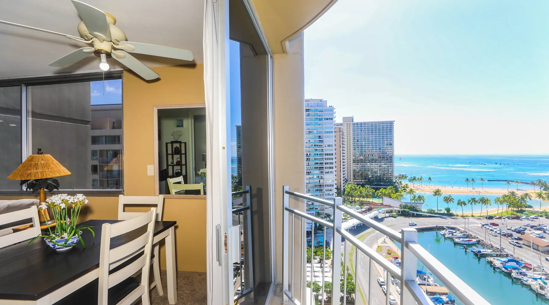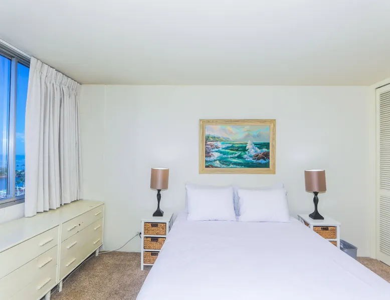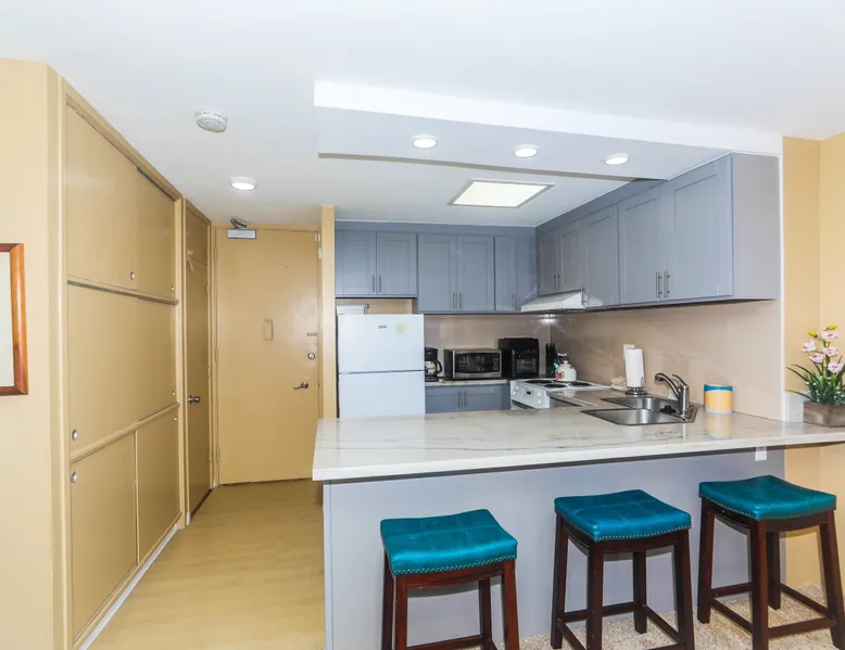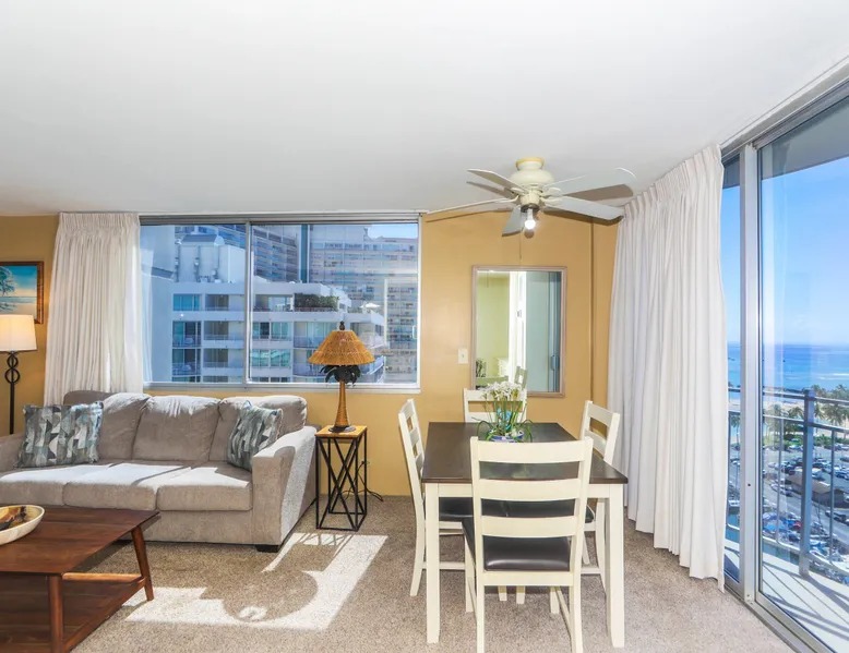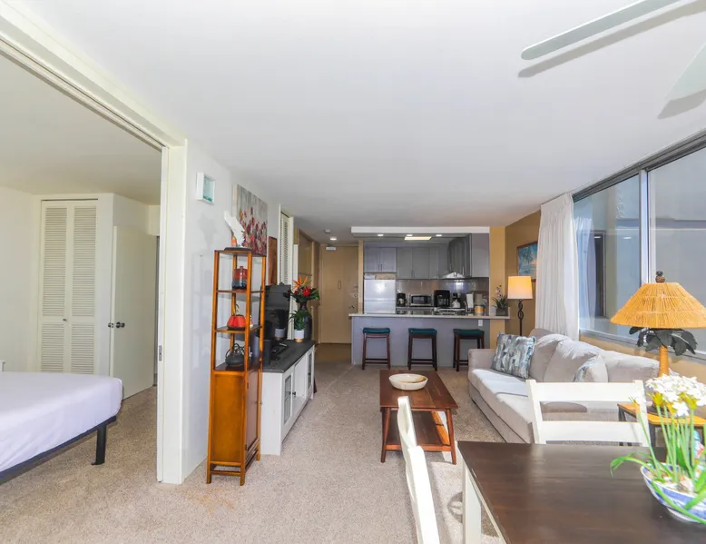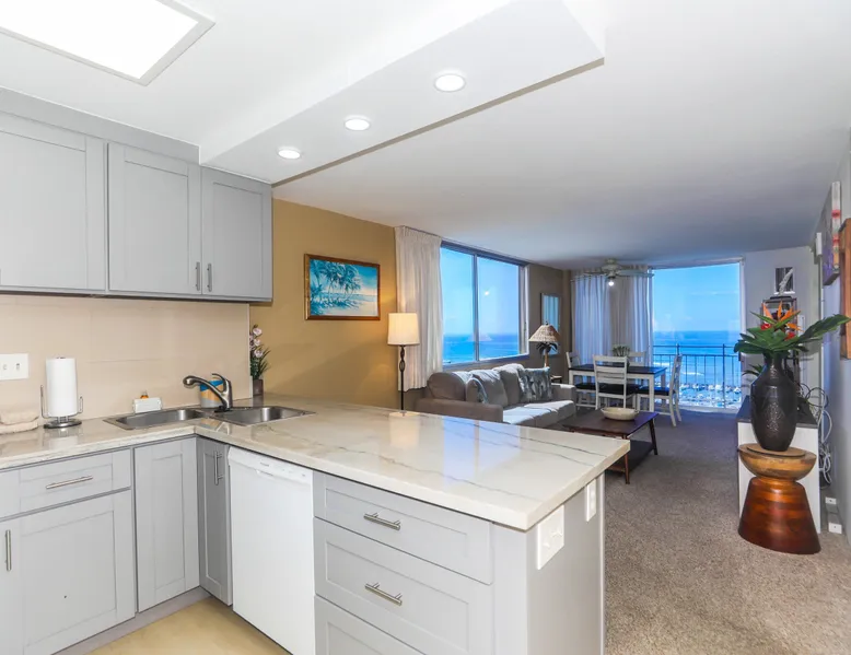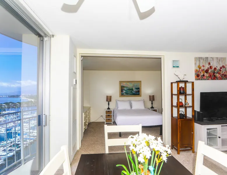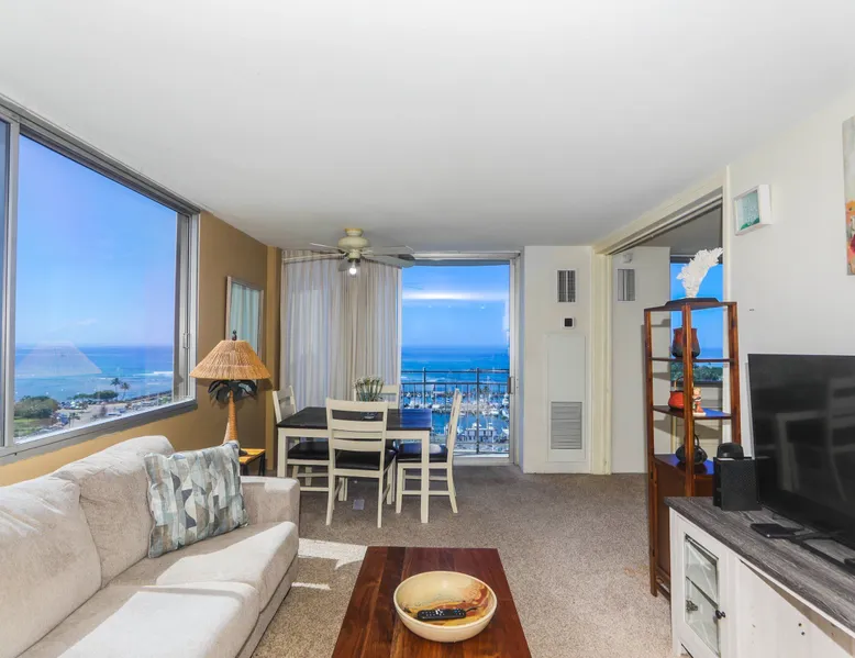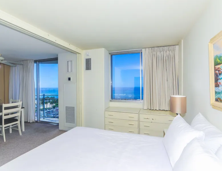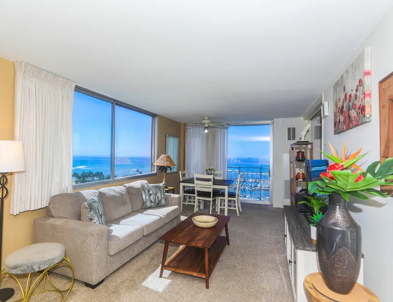 Construction Notice 10/20/25: Exterior painting work is currently scheduled from 9/25/25 - 10/29/25. During this time, the lanai will be locked and not accessible to guests. For your safety, please do not attempt to use the lanai at any time. You may also hear construction noise during work hours of 8am - 4pm, Monday through Friday. Please note that these dates may change & we recommend you reach out to us for any updates on the schedule. Located within the Ilikai Marina, this condo is located on the 17th floor. You'll love the convenient location in Waikiki, close to the beach, Ala Moana Shopping Center & the Waikiki strip! As you stand on the lanai of this condo, you look straight out to see the Ala Wai Yacht Harbor below and turquoise ocean waters beyond. If you love to surf, this is the perfect unit to check out the waves before picking your surf spot. You can relax in the living room and watch the boats, yacht races and the sail boats in the distance. This condo has a 30-night minimum requirement. KITCHEN - Refrigerator - Cooktop/Oven - Microwave - Dishwasher - Dinnerware, Glassware, Silverware, Cookware, Coffee Maker, Rice Cooker, Blender, Kettle Provided LIVING AREA - Flat screen TV - Sofa Sleeper - Central AC - Dining Table for 4 - Bar Seating for 3 BEDROOM - Queen Bed - Closet BATHROOM - Shower -Toilet - Hair Dryer AMENITIES Your stay includes cable TV, high-speed internet with password-protected WiFi. We provide a starter kit of essentials, which includes liquid dish soap, a dishwashing packet, a kitchen sponge, trash liners, a roll of paper towels, coffee, condiment packets, travel-size shampoo, conditioner, body lotion, soap, facial tissue, and an extra roll of toilet paper. Please note we do not replenish these items once the starter set is depleted. Each bathroom is equipped with 4 sets of towels, and blankets can be found in each bedroom closet. We are delighted to provide beach towels for your stay. Please ensure they are returned to the room at check-out. If they are not, a $10 fee per towel may be applied to your account. Housekeeping services available for an additional fee. BUILDING AMENITIES Shared laundry facilities are located on the 8th floor, with payment available via an app or credit card. A trash chute is conveniently situated at the end of the hallway. The property provides 24/7 security for your peace of mind. Please note, this building does not have a pool, nor is there access to one at another location. Parking is available in the building for $33 per day (*rates subject to change), and metered street parking is available along the harbor for $1 per hour. Routine pest control and maintenance are occasionally scheduled by building management. Smoking and vaping are strictly prohibited in the unit and on the lanai. Marina Hawaii Vacations has been providing fully furnished condo rentals to travelers since 1965. Book with confidence, as we offer only legal vacation rentals in Waikiki and the surrounding areas. Plus, you'll save when you book directly with us! Please note that the condos are privately owned, and construction or building maintenance may occur during your stay. While owners have no control over external work or noise, construction is typically limited to Monday–Friday from 8:00 AM to 4:30 PM, with no work on weekends or holidays. Most guests experience little to no disruption, as they are often out exploring the island, enjoying the beaches, shopping, or participating in activities. If you have any concerns, please contact a vacation rental specialist with Marina Hawaii Vacations.