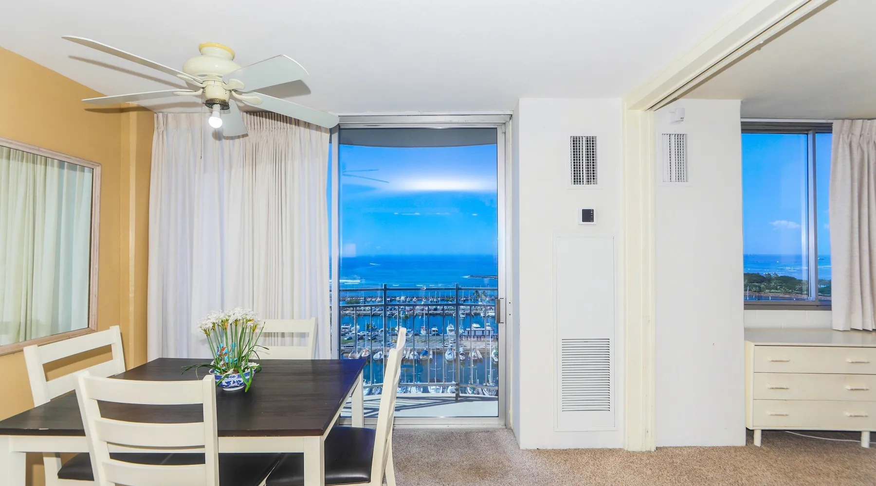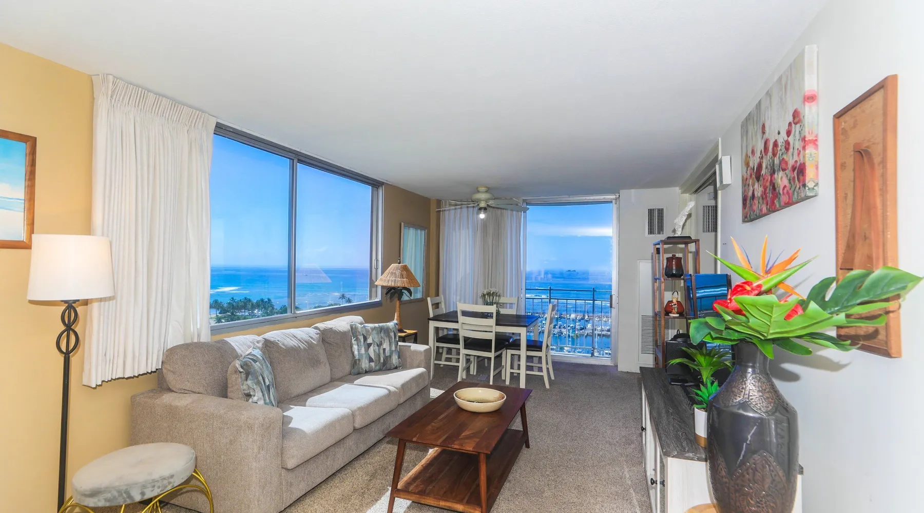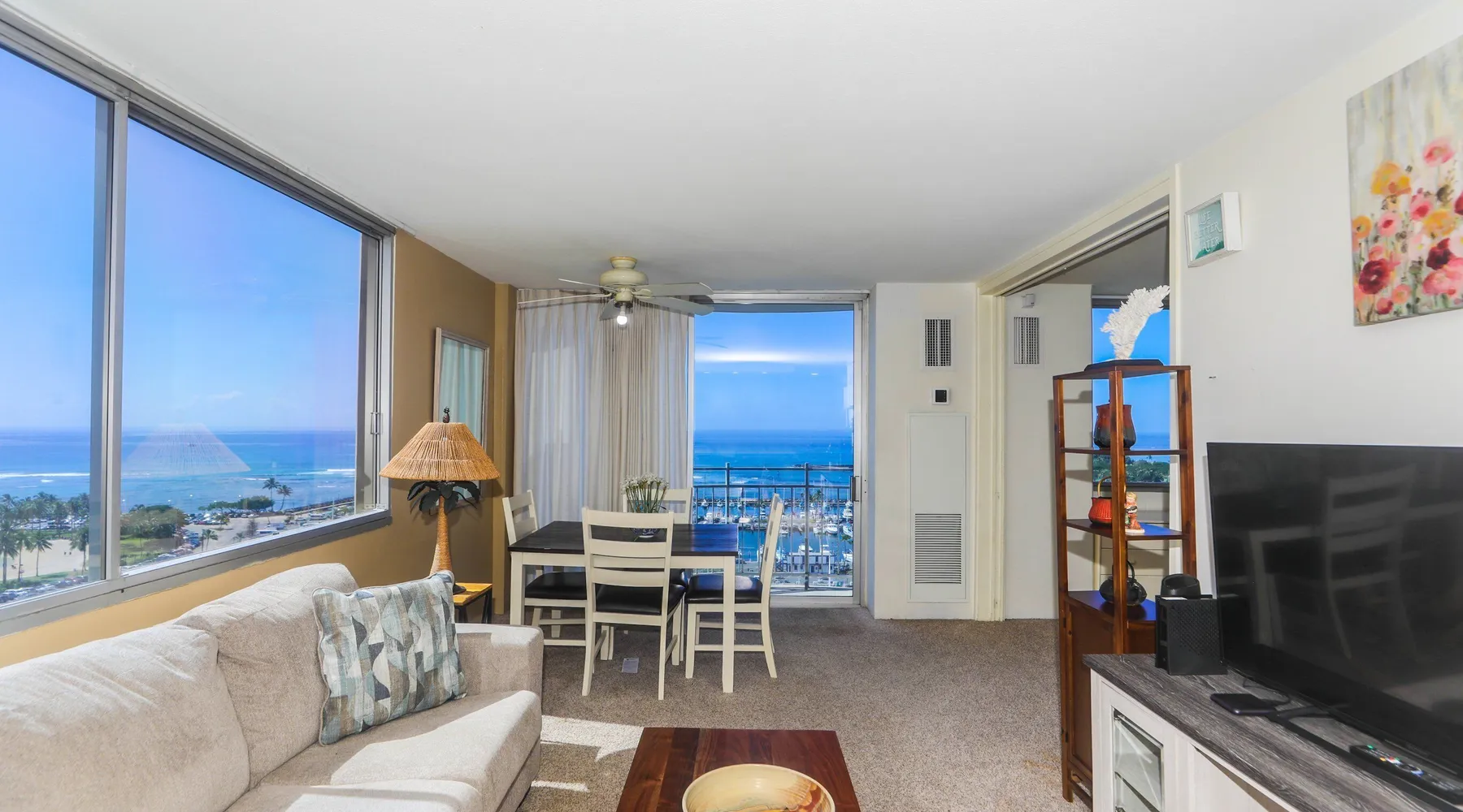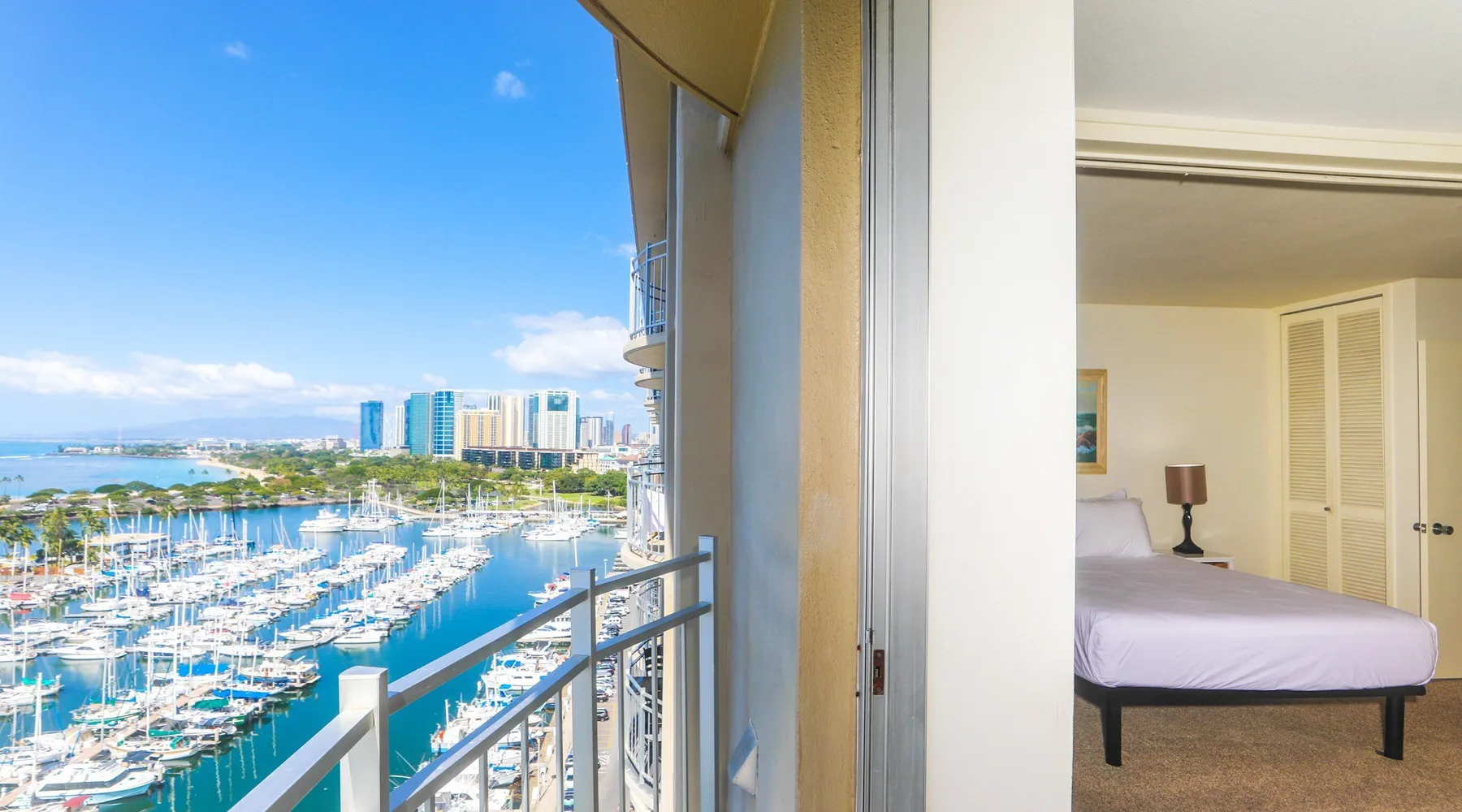 Construction Notice 10/20/25: Exterior painting work is currently scheduled from 9/25/25 - 10/29/25. During this time, the lanai will be locked and not accessible to guests. For your safety, please do not attempt to use the lanai at any time. You may also hear construction noise during work hours of 8am - 4pm, Monday through Friday. Please note that these dates may change & we recommend you reach out to us for any updates on the schedule. Located within the Ilikai Marina, this condo is located on the 17th floor. You'll love the convenient location in Waikiki, close to the beach, Ala Moana Shopping Center & the Waikiki strip! As you stand on the lanai of this condo, you look straight out to see the Ala Wai Yacht Harbor below and turquoise ocean waters beyond. If you love to surf, this is the perfect unit to check out the waves before picking your surf spot. You can relax in the living room and watch the boats, yacht races and the sail boats in the distance. This condo has a 30-night minimum requirement. KITCHEN - Refrigerator - Cooktop/Oven - Microwave - Dishwasher - Dinnerware, Glassware, Silverware, Cookware, Coffee Maker, Rice Cooker, Blender, Kettle Provided LIVING AREA - Flat screen TV - Sofa Sleeper - Central AC - Dining Table for 4 - Bar Seating for 3 BEDROOM - Queen Bed - Closet BATHROOM - Shower -Toilet - Hair Dryer AMENITIES Your stay includes cable TV, high-speed internet with password-protected WiFi. We provide a starter kit of essentials, which includes liquid dish soap, a dishwashing packet, a kitchen sponge, trash liners, a roll of paper towels, coffee, condiment packets, travel-size shampoo, conditioner, body lotion, soap, facial tissue, and an extra roll of toilet paper. Please note we do not replenish these items once the starter set is depleted. Each bathroom is equipped with 4 sets of towels, and blankets can be found in each bedroom closet. We are delighted to provide beach towels for your stay. Please ensure they are returned to the room at check-out. If they are not, a $10 fee per towel may be applied to your account. Housekeeping services available for an additional fee. BUILDING AMENITIES Shared laundry facilities are located on the 8th floor, with payment available via an app or credit card. A trash chute is conveniently situated at the end of the hallway. The property provides 24/7 security for your peace of mind. Please note, this building does not have a pool, nor is there access to one at another location. Parking is available in the building for $33 per day (*rates subject to change), and metered street parking is available along the harbor for $1 per hour. Routine pest control and maintenance are occasionally scheduled by building management. Smoking and vaping are strictly prohibited in the unit and on the lanai. Marina Hawaii Vacations has been providing fully furnished condo rentals to travelers since 1965. Book with confidence, as we offer only legal vacation rentals in Waikiki and the surrounding areas. Plus, you'll save when you book directly with us! Please note that the condos are privately owned, and construction or building maintenance may occur during your stay. While owners have no control over external work or noise, construction is typically limited to Monday–Friday from 8:00 AM to 4:30 PM, with no work on weekends or holidays. Most guests experience little to no disruption, as they are often out exploring the island, enjoying the beaches, shopping, or participating in activities. If you have any concerns, please contact a vacation rental specialist with Marina Hawaii Vacations.