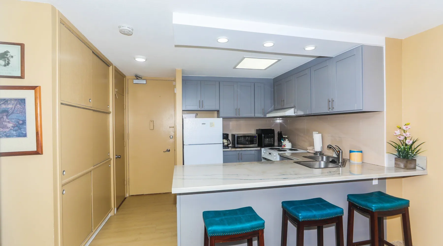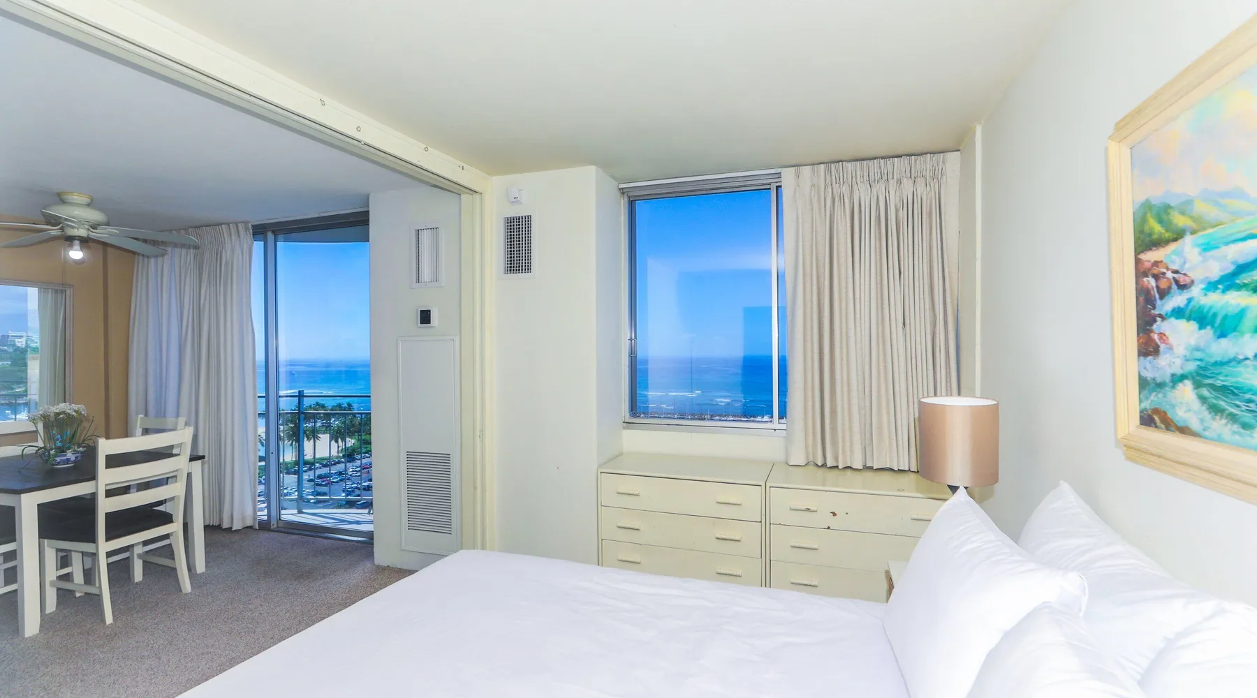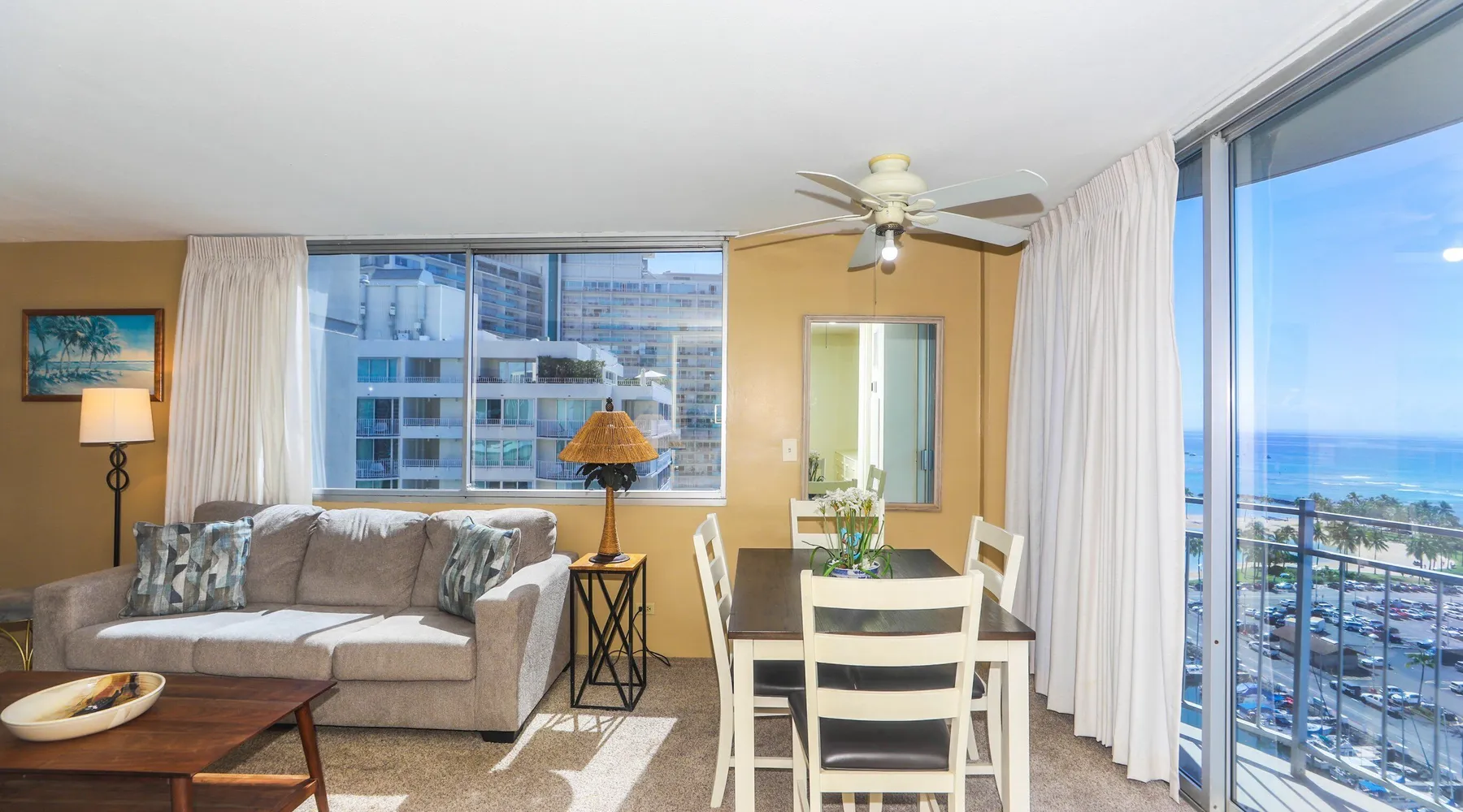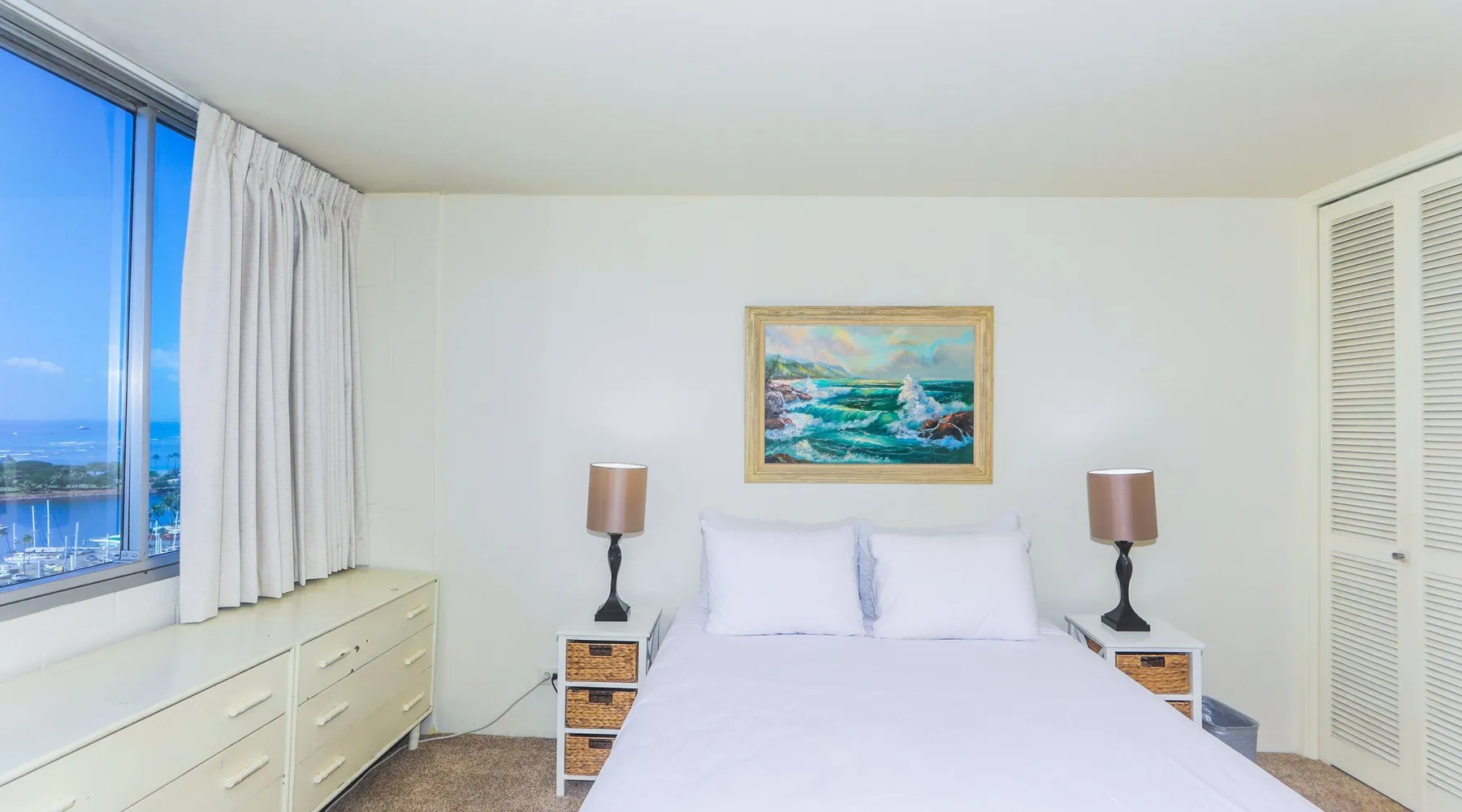 Construction Notice 10/20/25: Exterior painting work is currently scheduled from 9/25/25 - 10/29/25. During this time, the lanai will be locked and not accessible to guests. For your safety, please do not attempt to use the lanai at any time. You may also hear construction noise during work hours of 8am - 4pm, Monday through Friday. Please note that these dates may change & we recommend you reach out to us for any updates on the schedule. Located within the Ilikai Marina, this condo is located on the 17th floor. You'll love the convenient location in Waikiki, close to the beach, Ala Moana Shopping Center & the Waikiki strip! As you stand on the lanai of this condo, you look straight out to see the Ala Wai Yacht Harbor below and turquoise ocean waters beyond. If you love to surf, this is the perfect unit to check out the waves before picking your surf spot. You can relax in the living room and watch the boats, yacht races and the sail boats in the distance. This condo has a 30-night minimum requirement. KITCHEN - Refrigerator - Cooktop/Oven - Microwave - Dishwasher - Dinnerware, Glassware, Silverware, Cookware, Coffee Maker, Rice Cooker, Blender, Kettle Provided LIVING AREA - Flat screen TV - Sofa Sleeper - Central AC - Dining Table for 4 - Bar Seating for 3 BEDROOM - Queen Bed - Closet BATHROOM - Shower -Toilet - Hair Dryer AMENITIES Your stay includes cable TV, high-speed internet with password-protected WiFi. We provide a starter kit of essentials, which includes liquid dish soap, a dishwashing packet, a kitchen sponge, trash liners, a roll of paper towels, coffee, condiment packets, travel-size shampoo, conditioner, body lotion, soap, facial tissue, and an extra roll of toilet paper. Please note we do not replenish these items once the starter set is depleted. Each bathroom is equipped with 4 sets of towels, and blankets can be found in each bedroom closet. We are delighted to provide beach towels for your stay. Please ensure they are returned to the room at check-out. If they are not, a $10 fee per towel may be applied to your account. Housekeeping services available for an additional fee. BUILDING AMENITIES Shared laundry facilities are located on the 8th floor, with payment available via an app or credit card. A trash chute is conveniently situated at the end of the hallway. The property provides 24/7 security for your peace of mind. Please note, this building does not have a pool, nor is there access to one at another location. Parking is available in the building for $33 per day (*rates subject to change), and metered street parking is available along the harbor for $1 per hour. Routine pest control and maintenance are occasionally scheduled by building management. Smoking and vaping are strictly prohibited in the unit and on the lanai. Marina Hawaii Vacations has been providing fully furnished condo rentals to travelers since 1965. Book with confidence, as we offer only legal vacation rentals in Waikiki and the surrounding areas. Plus, you'll save when you book directly with us! Please note that the condos are privately owned, and construction or building maintenance may occur during your stay. While owners have no control over external work or noise, construction is typically limited to Monday–Friday from 8:00 AM to 4:30 PM, with no work on weekends or holidays. Most guests experience little to no disruption, as they are often out exploring the island, enjoying the beaches, shopping, or participating in activities. If you have any concerns, please contact a vacation rental specialist with Marina Hawaii Vacations.