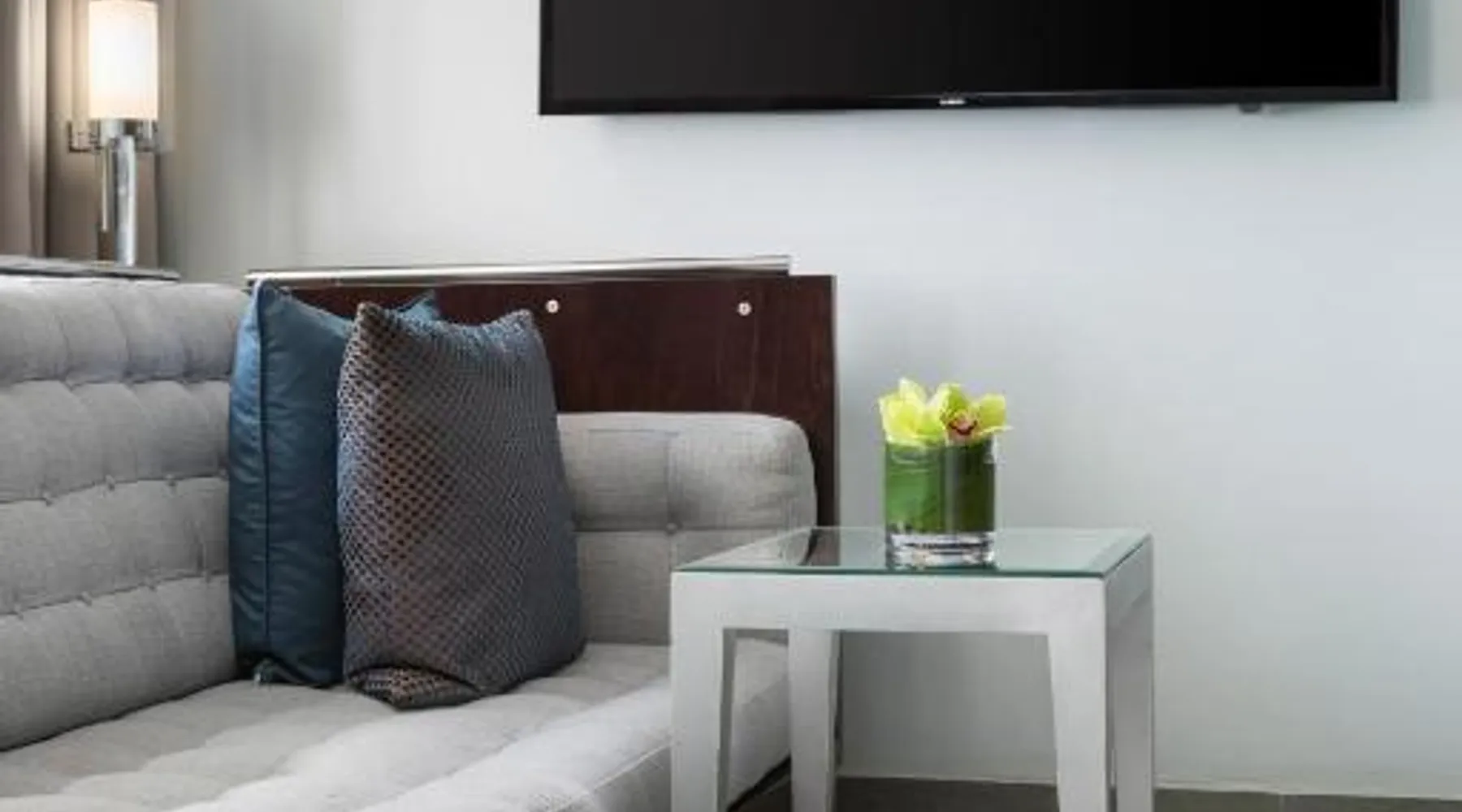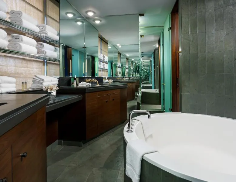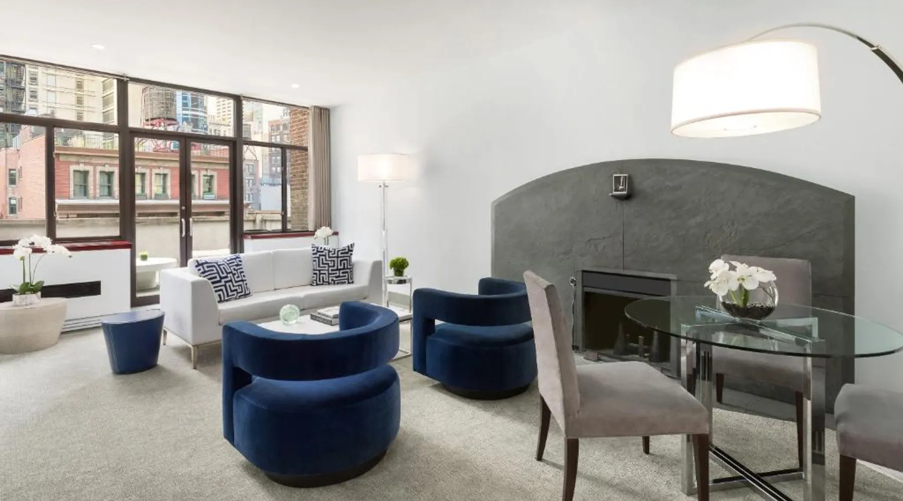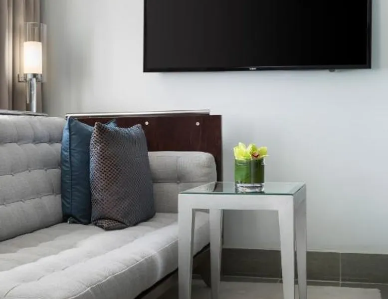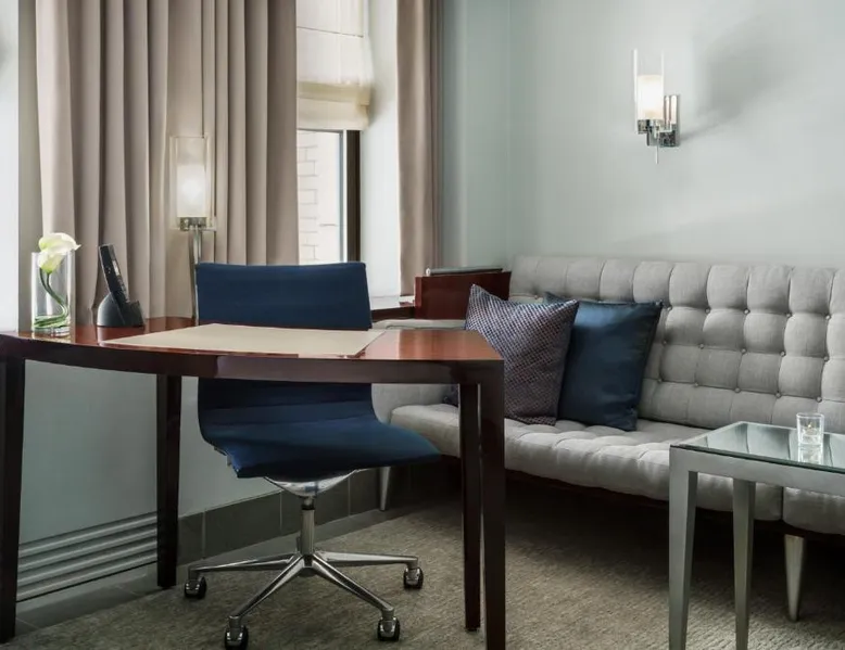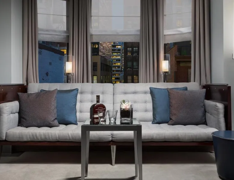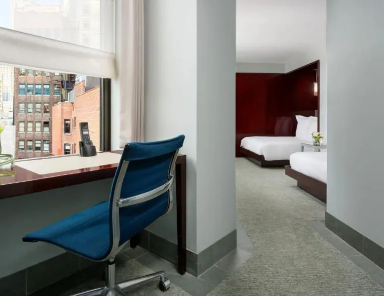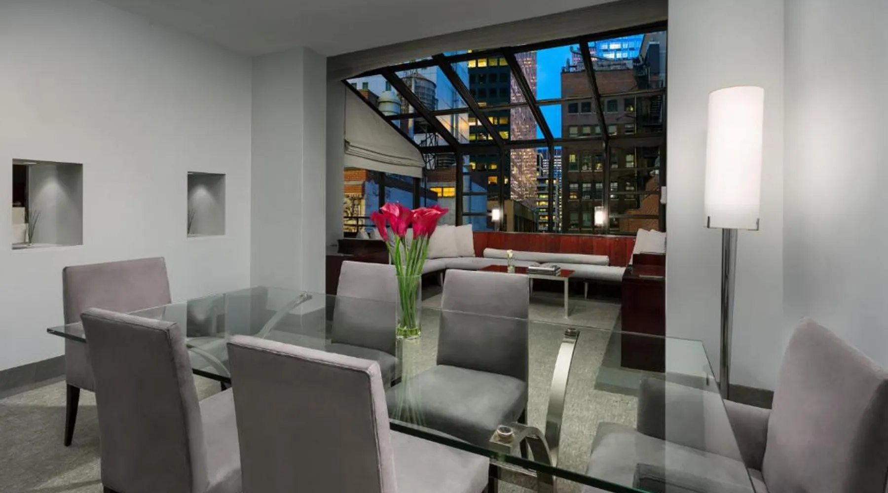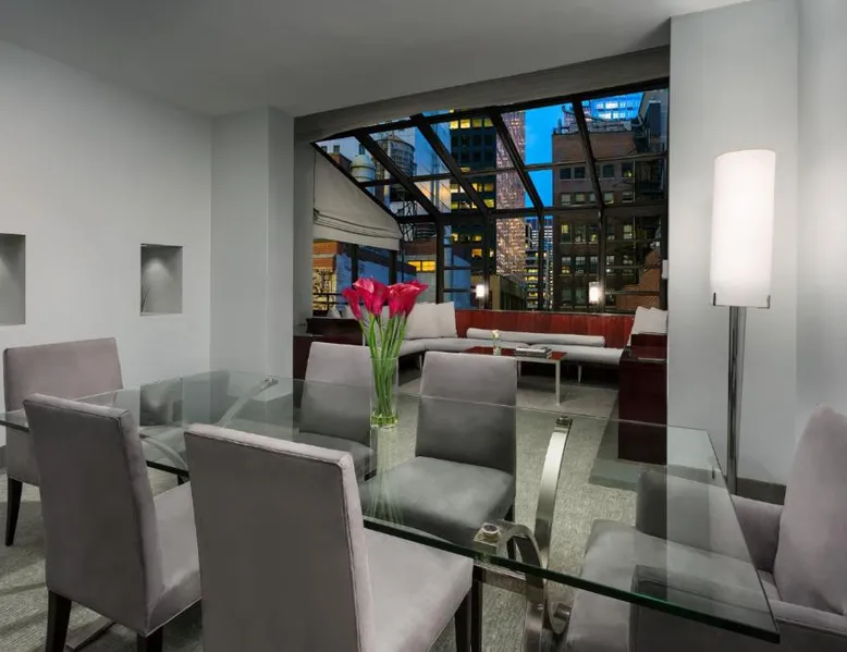 This New York City hotel is located on 44th Street and is 1056 feet from Times Square. It features guest rooms with flat-screen TVs. Each stylish and modern room at Royalton New York features a bathroom with a slate and glass shower. WiFi is available. Royalton New York is a design hotel with a large brass fireplace in the lobby. A business center is available . Radio City Music Hall and Bryant Park are 2113 feet from the property. Guests can also find 2 subway stations within 2297 feet of the property. This suite features a private bathroom, and air conditioning. This suite provides a TV. The unit has 1 bed.